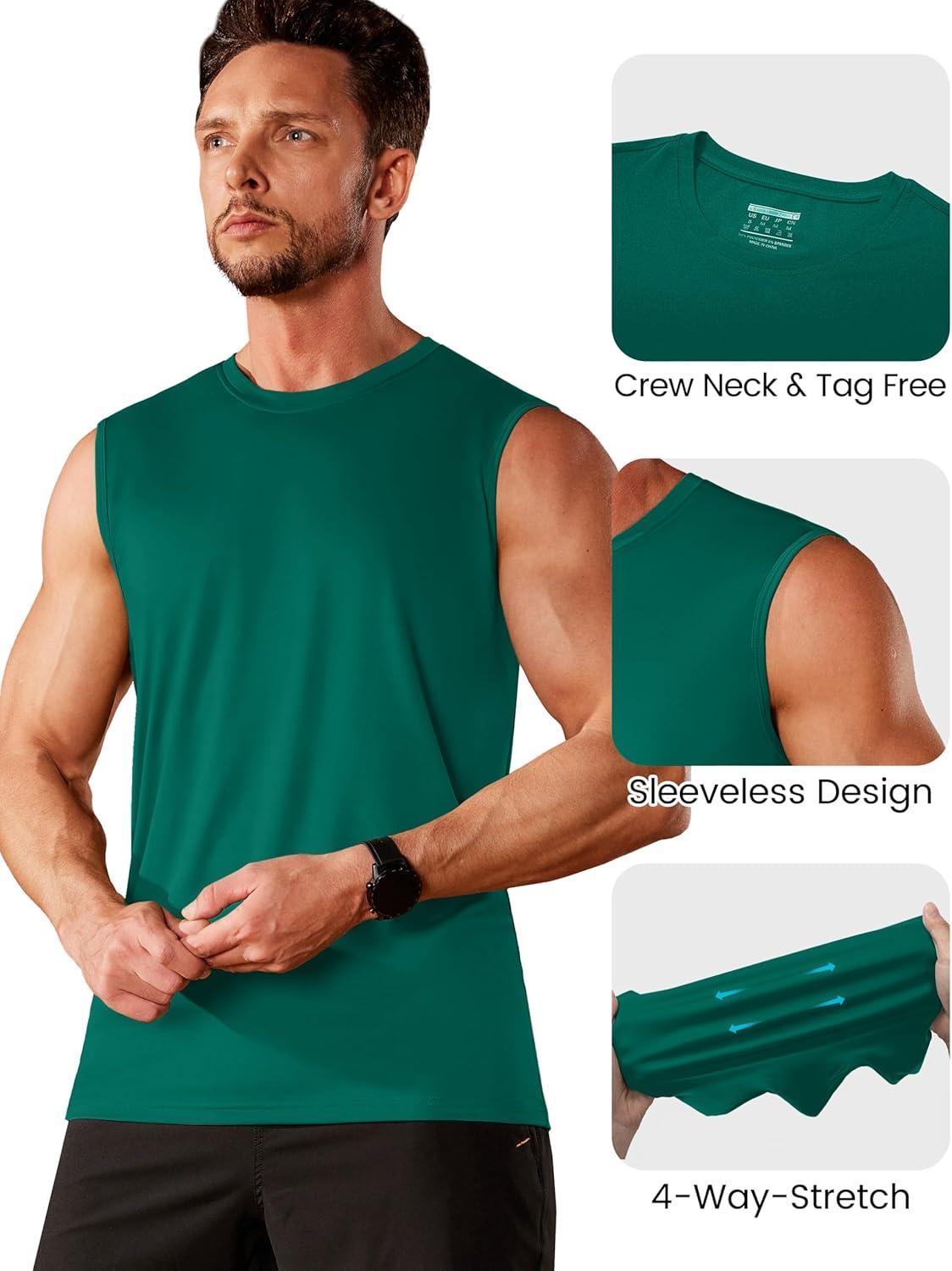 MAGCOMSEN Men’s Tank Tops Workout Gym Sleeveless Shirts Moisture Wicking Breathable Muscle Shirt Casual Summer Tanks(Emerald Green)