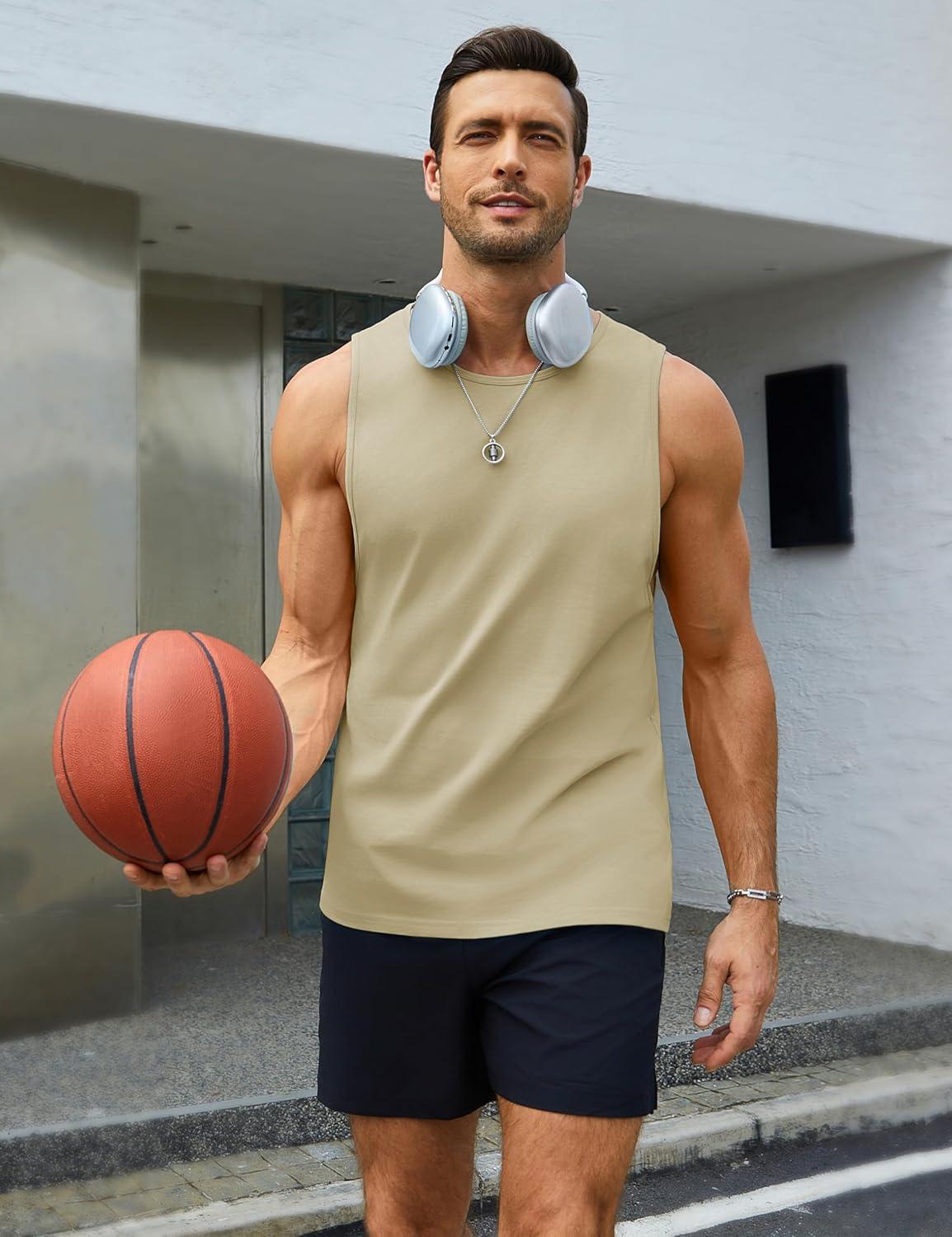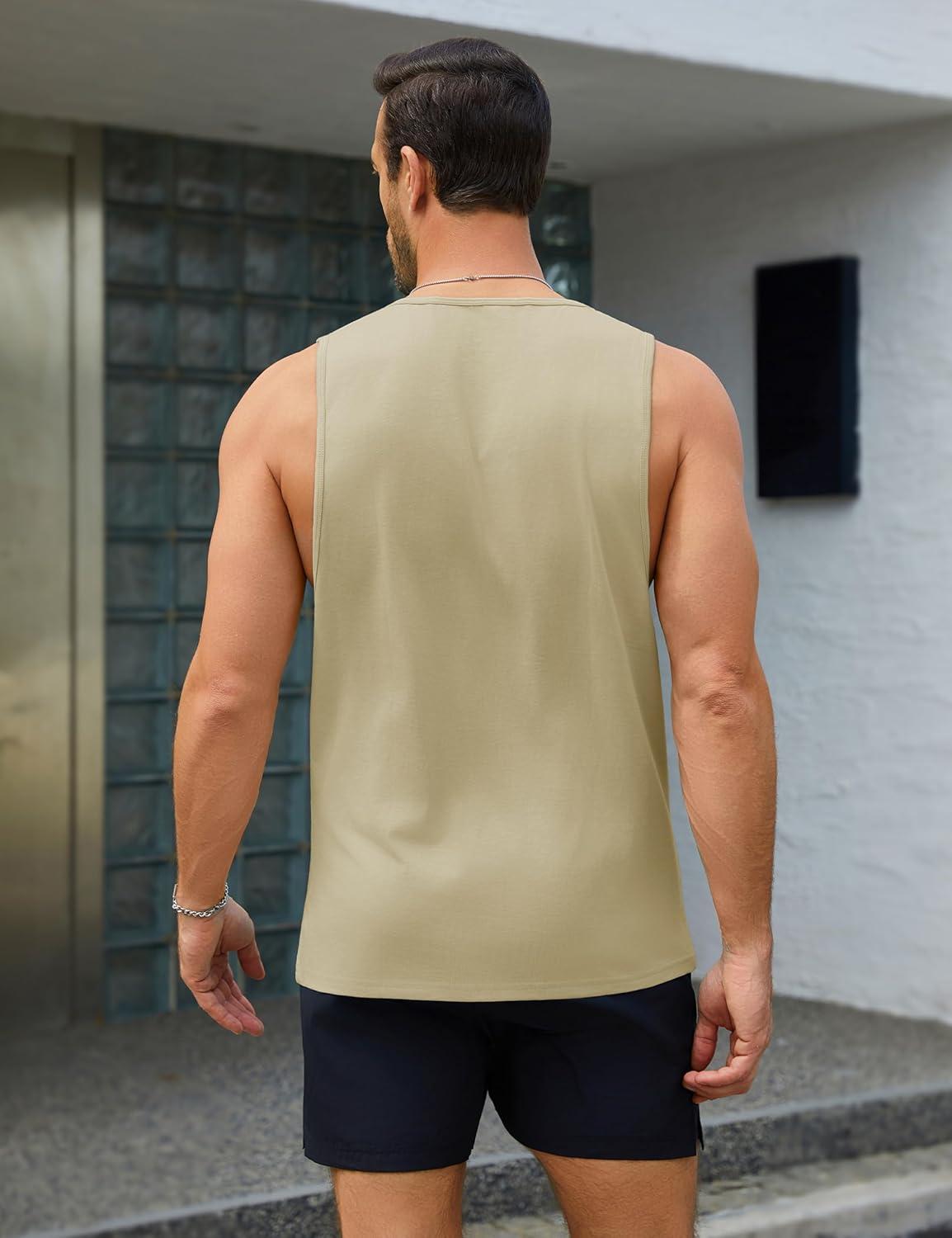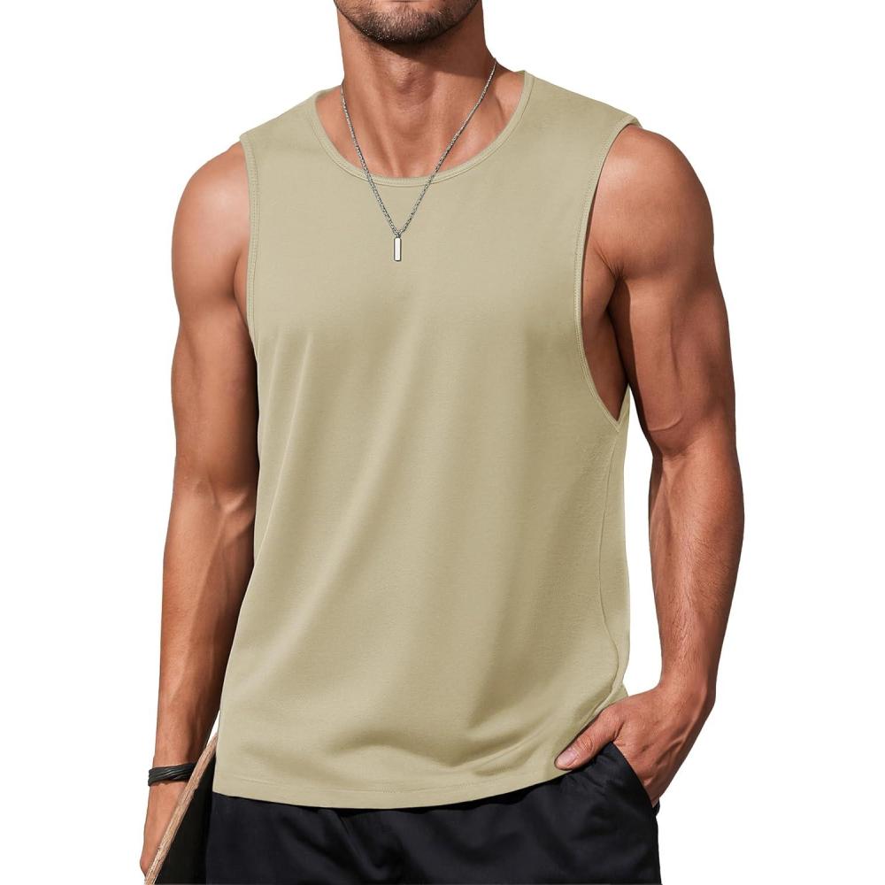 MAGCOMSEN Men’s Tank Tops Workout Gym Sleeveless Shirts Moisture Wicking Breathable Muscle Shirt Casual Summer Tanks(Khaki)