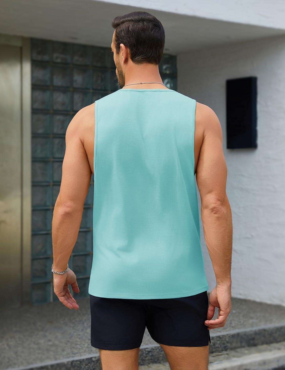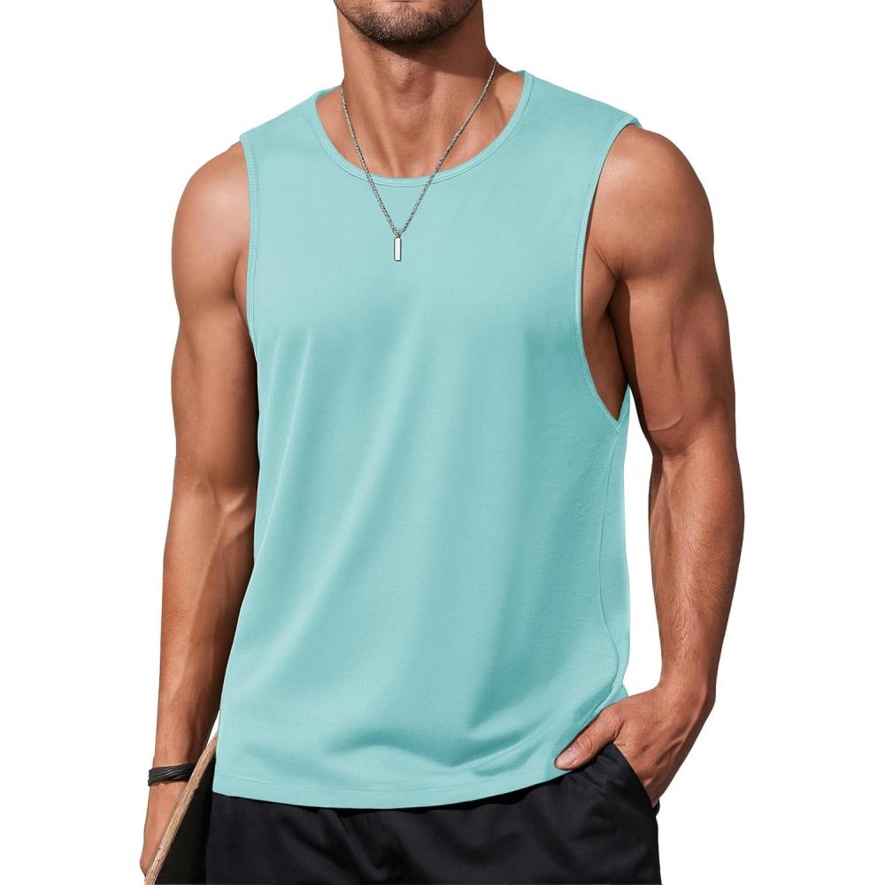 MAGCOMSEN Men’s Tank Tops Workout Gym Sleeveless Shirts Moisture Wicking Breathable Muscle Shirt Casual Summer Tanks(Lake Blue)