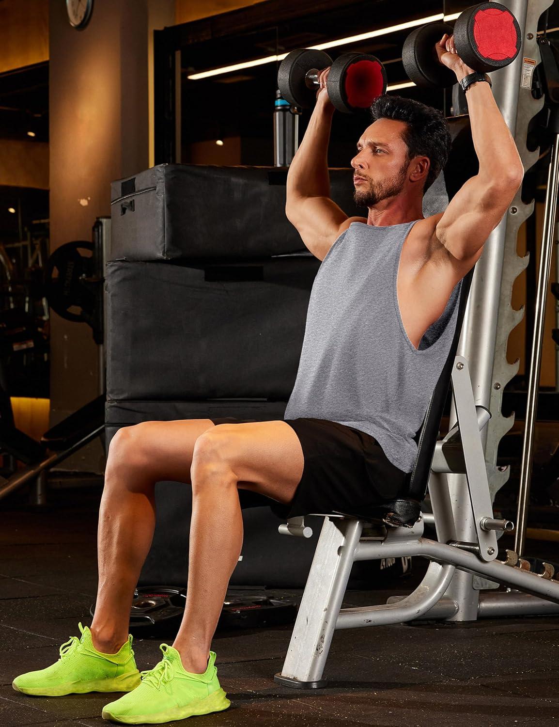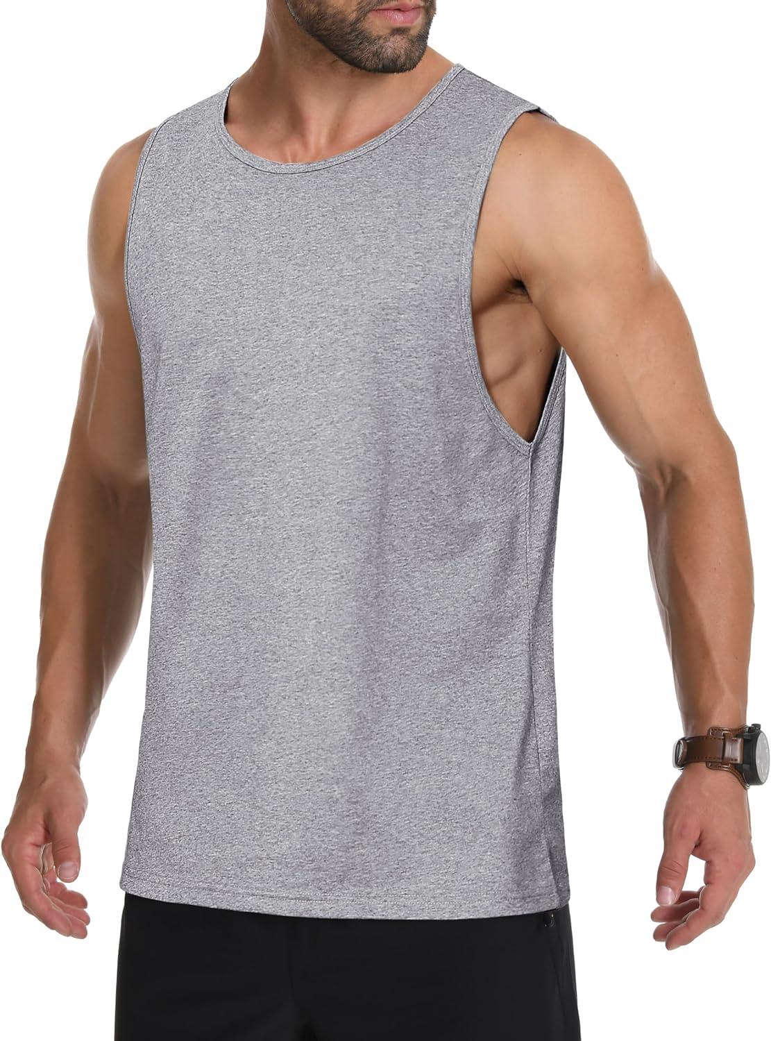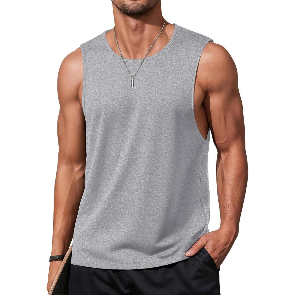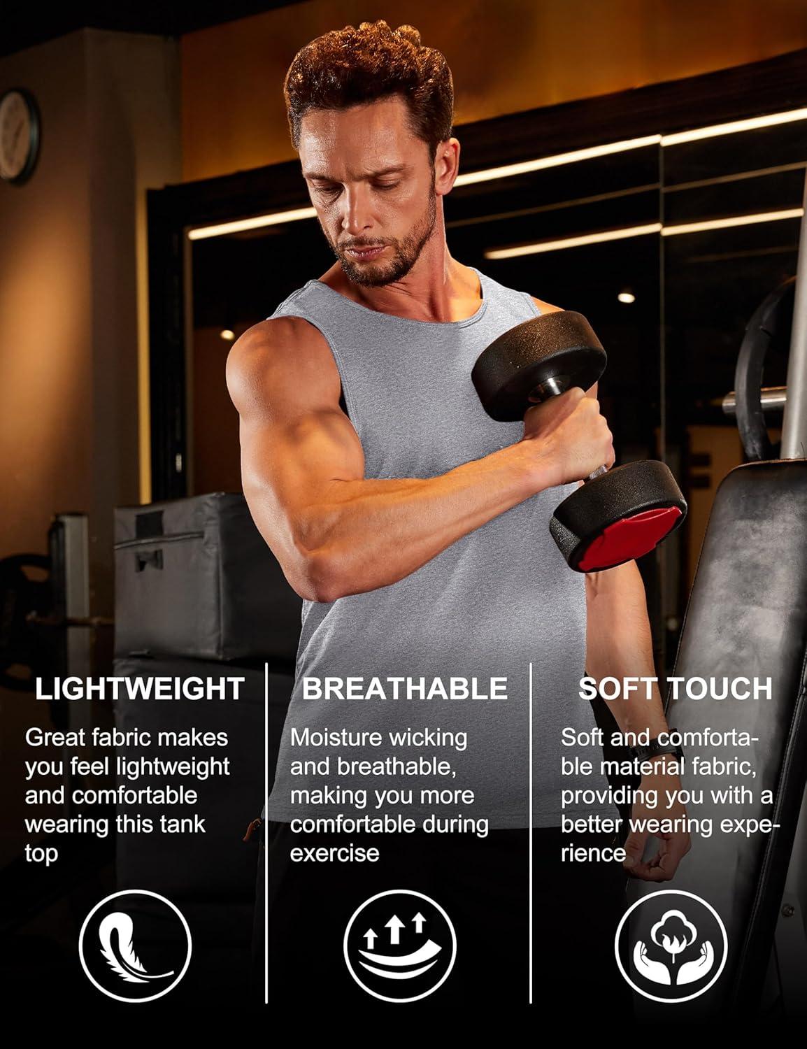 MAGCOMSEN Men’s Tank Tops Workout Gym Sleeveless Shirts Moisture Wicking Breathable Muscle Shirt Casual Summer Tanks(Light Heather)