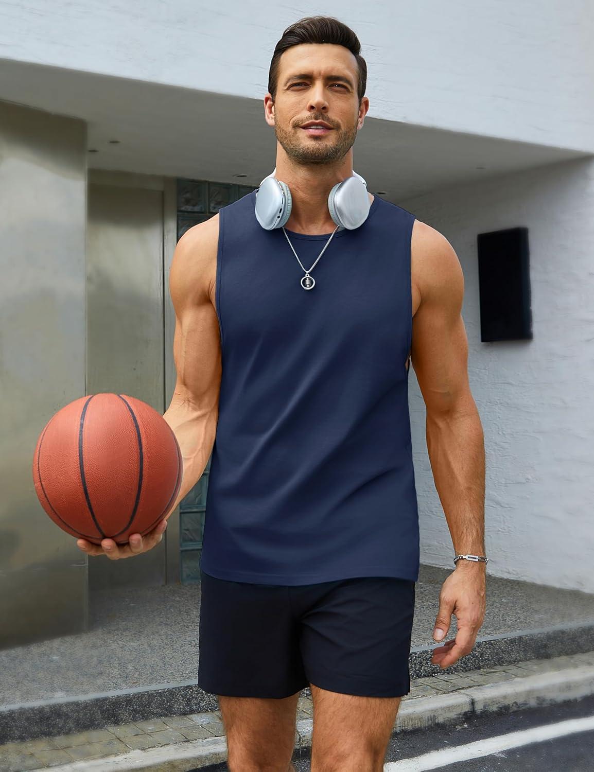 MAGCOMSEN Men’s Tank Tops Workout Gym Sleeveless Shirts Moisture Wicking Breathable Muscle Shirt Casual Summer Tanks(Navy Blue)
