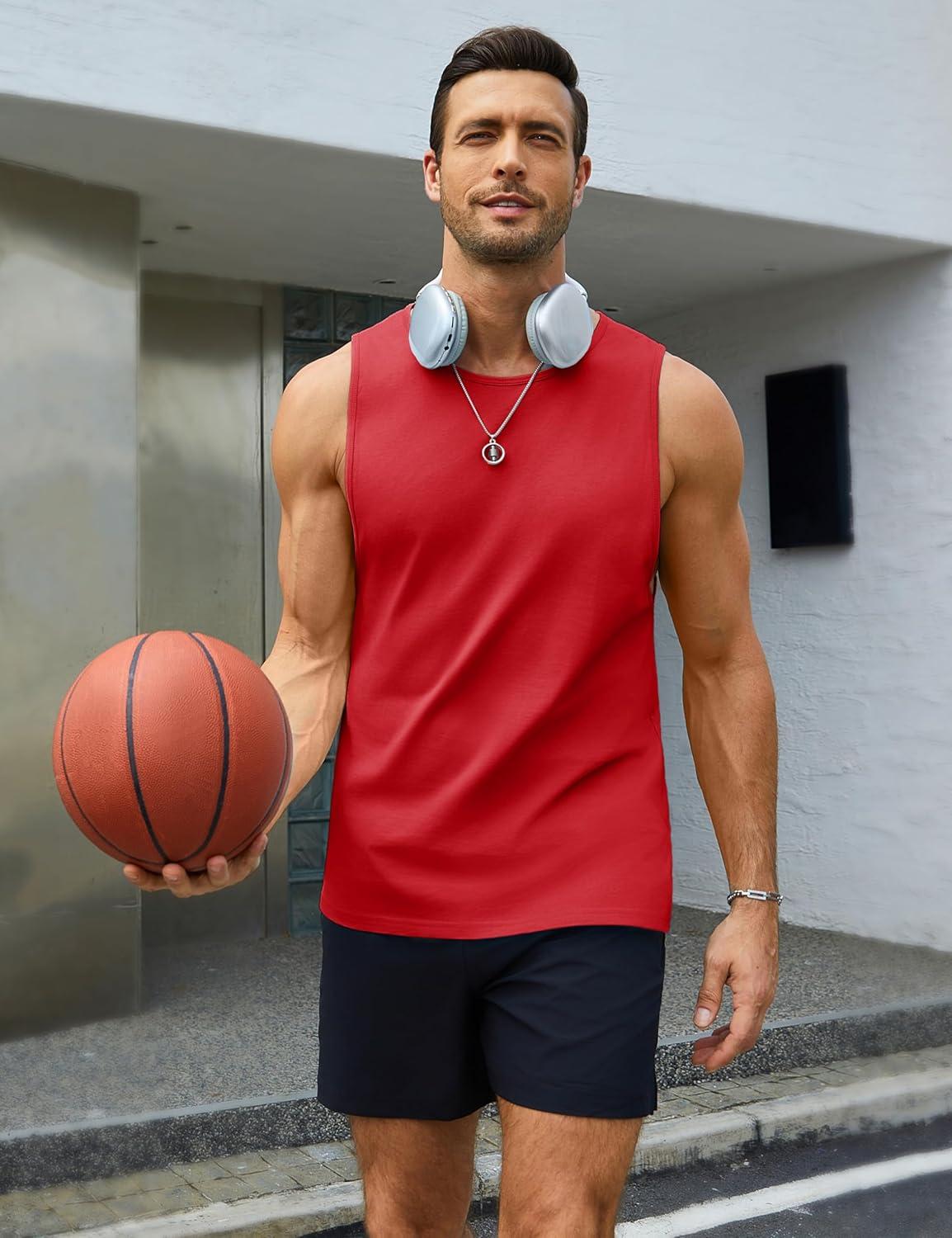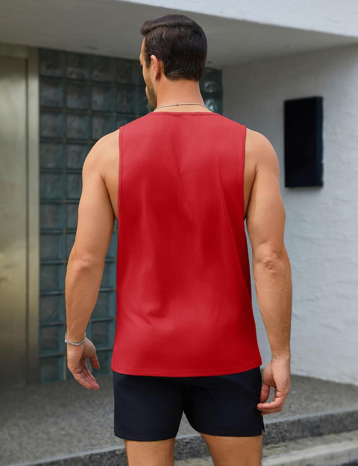 MAGCOMSEN Men’s Tank Tops Workout Gym Sleeveless Shirts Moisture Wicking Breathable Muscle Shirt Casual Summer Tanks(Tomato Red)