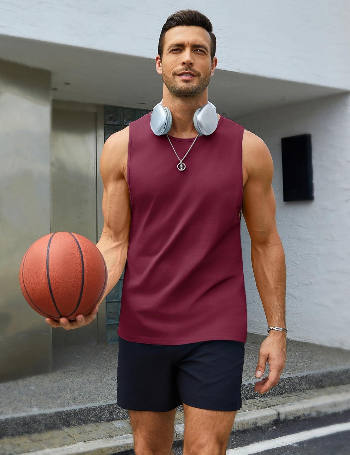MAGCOMSEN Men’s Tank Tops Workout Gym Sleeveless Shirts Moisture Wicking Breathable Muscle Shirt Casual Summer Tanks(Wine Red)