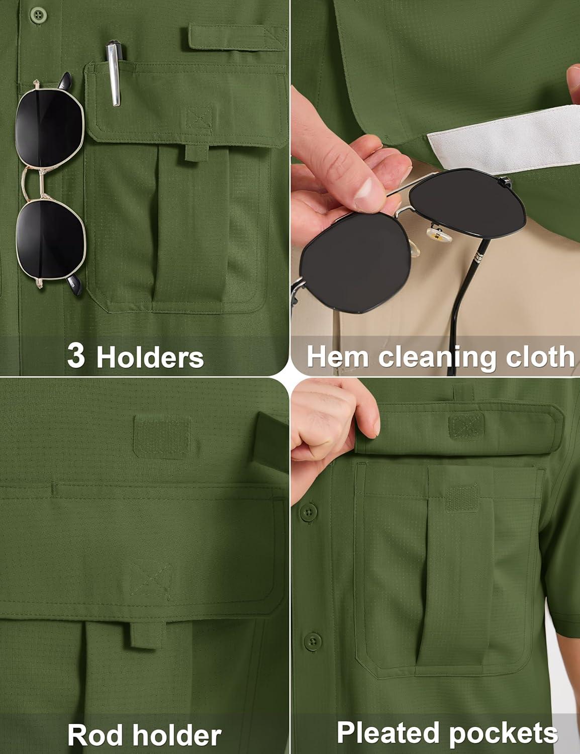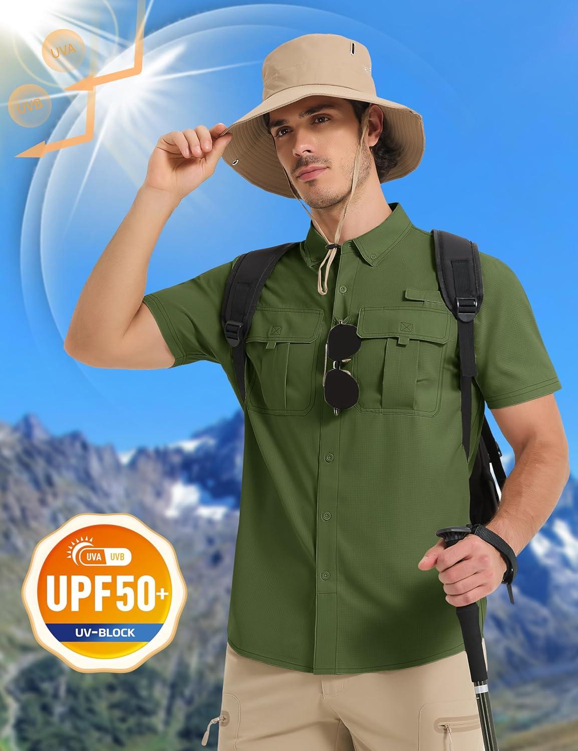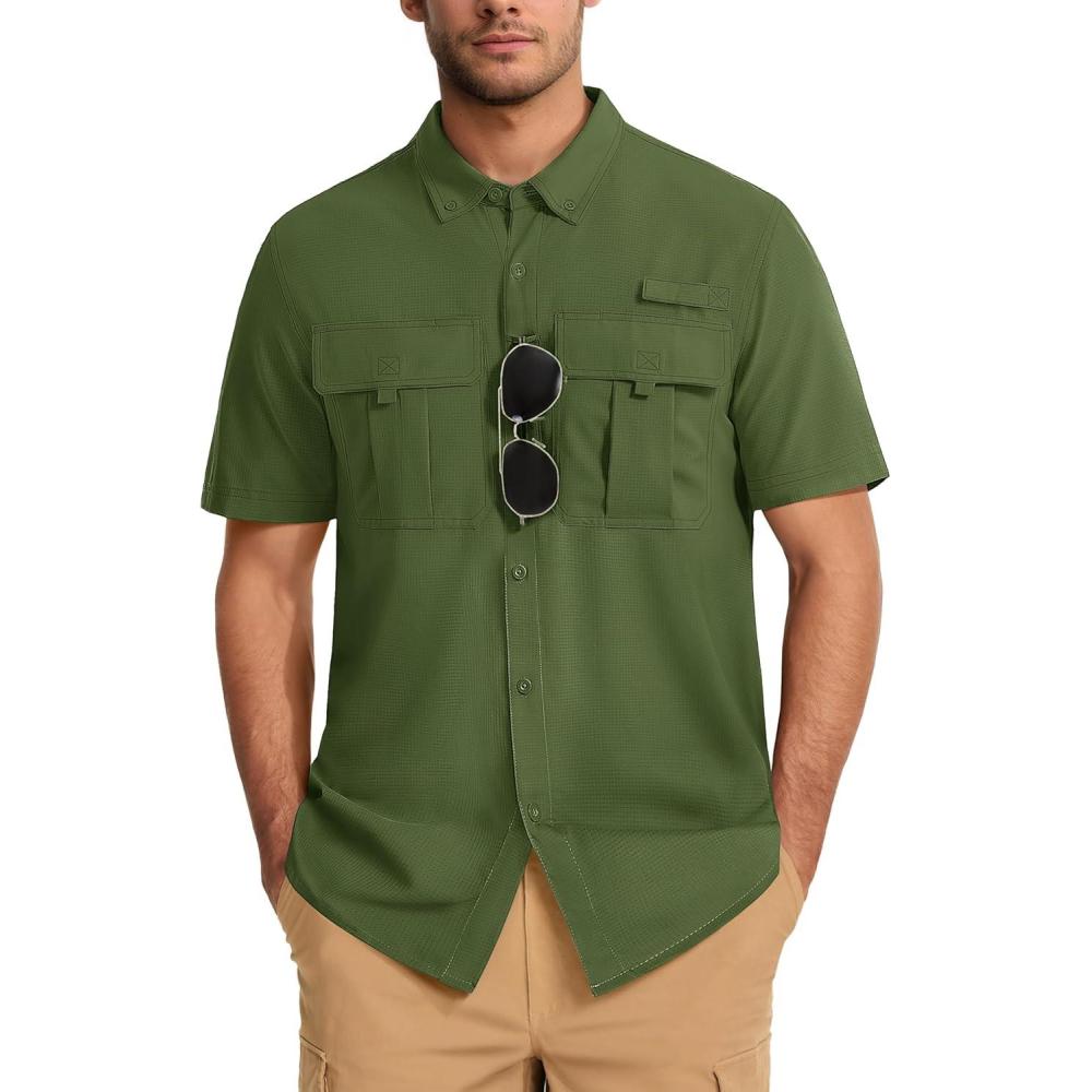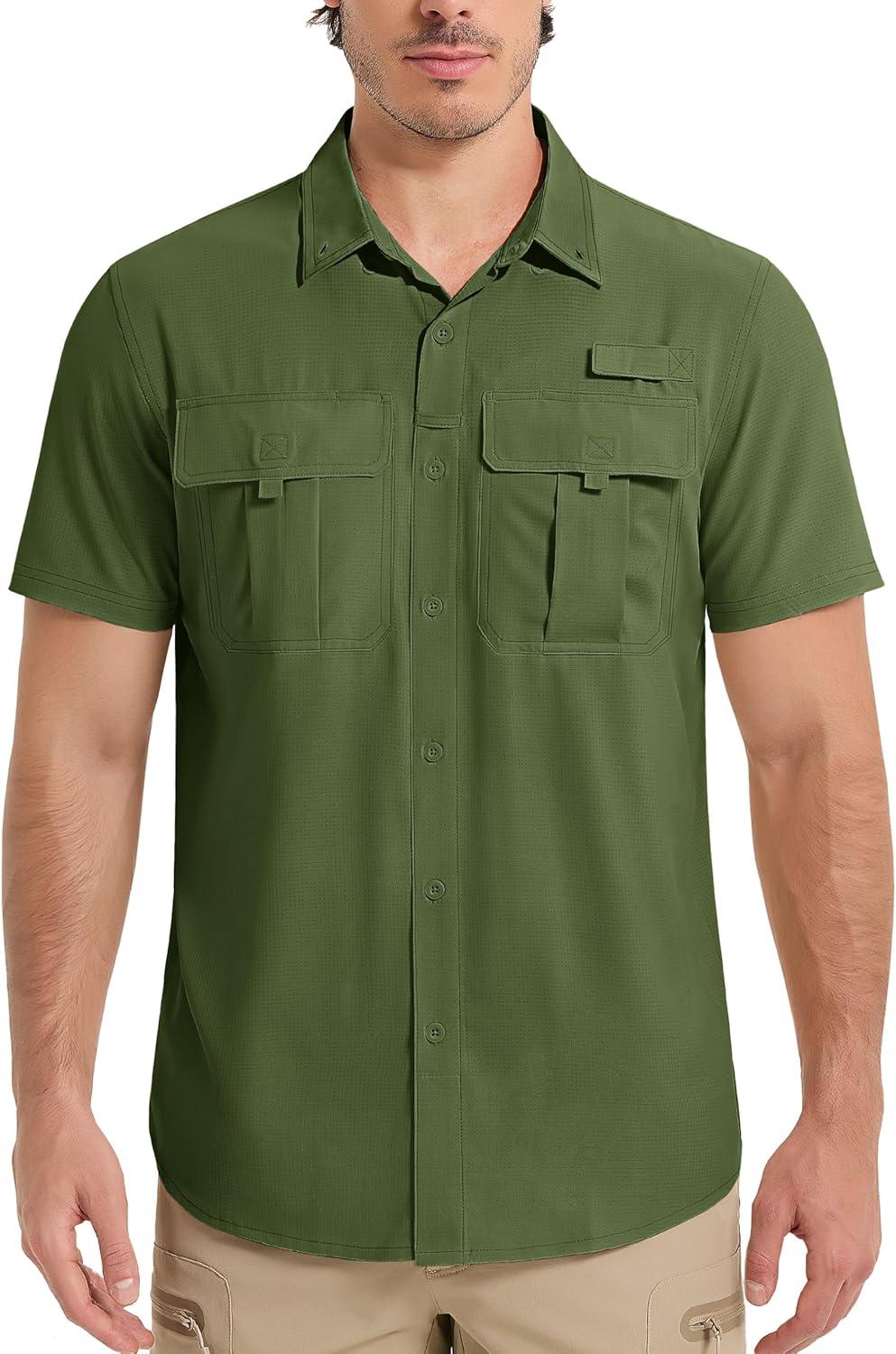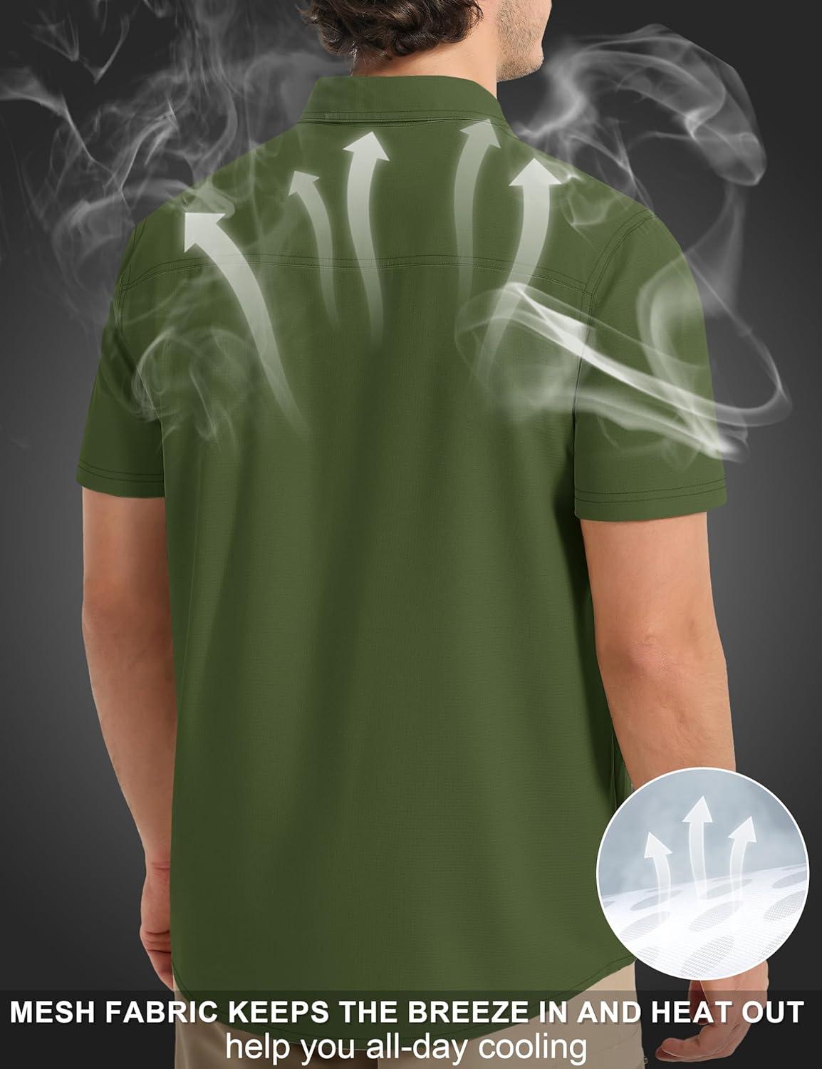 MAGCOMSEN Men’s UPF 50+ Fishing Shirts UV Sun Protection Cooling Quick Dry Short Sleeve Shirts for Hiking Safari Camping(Green)
