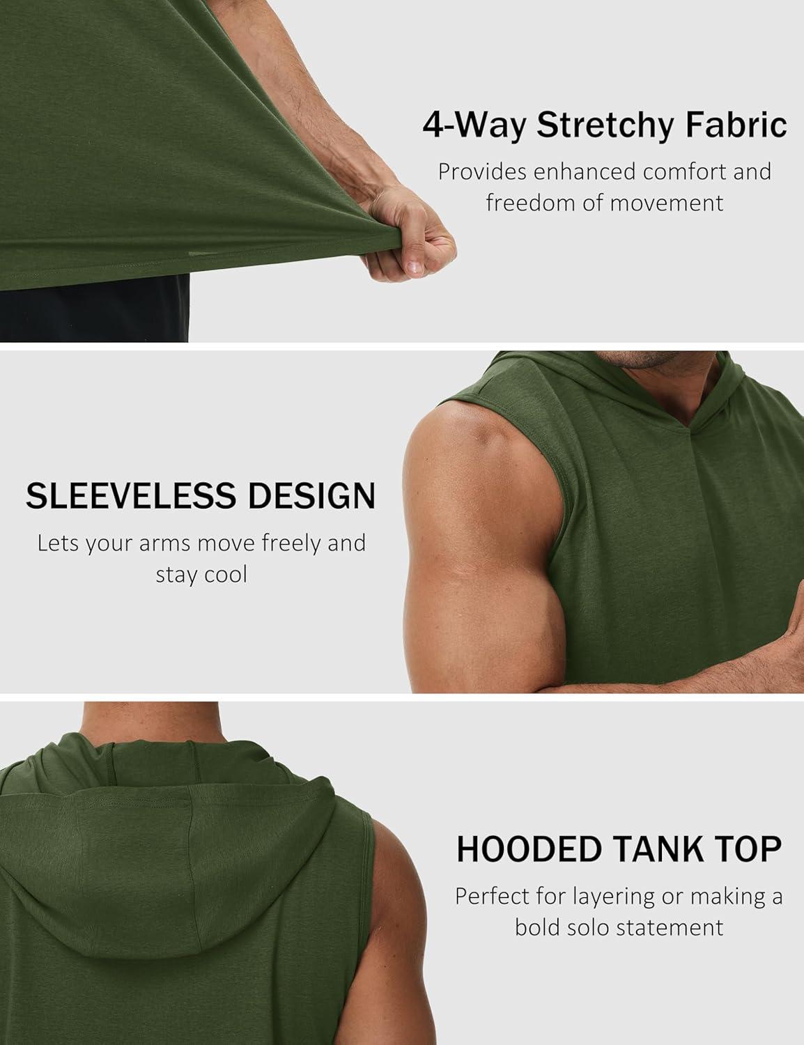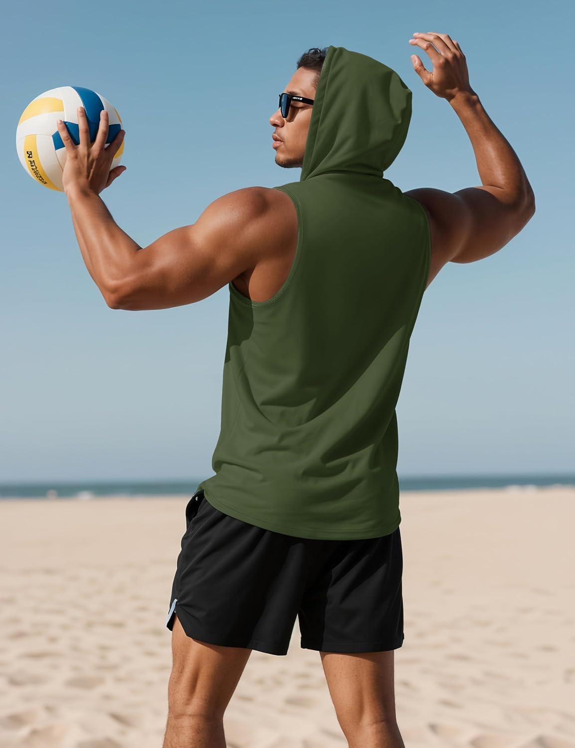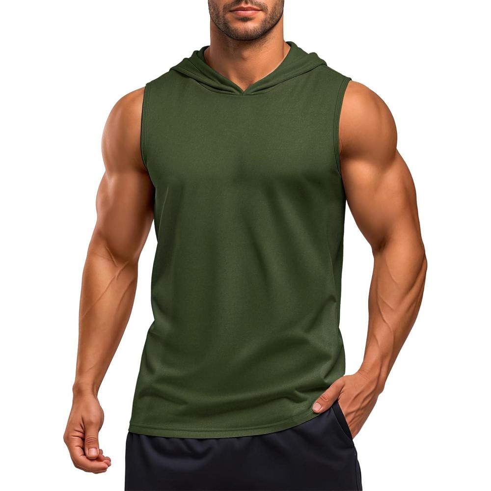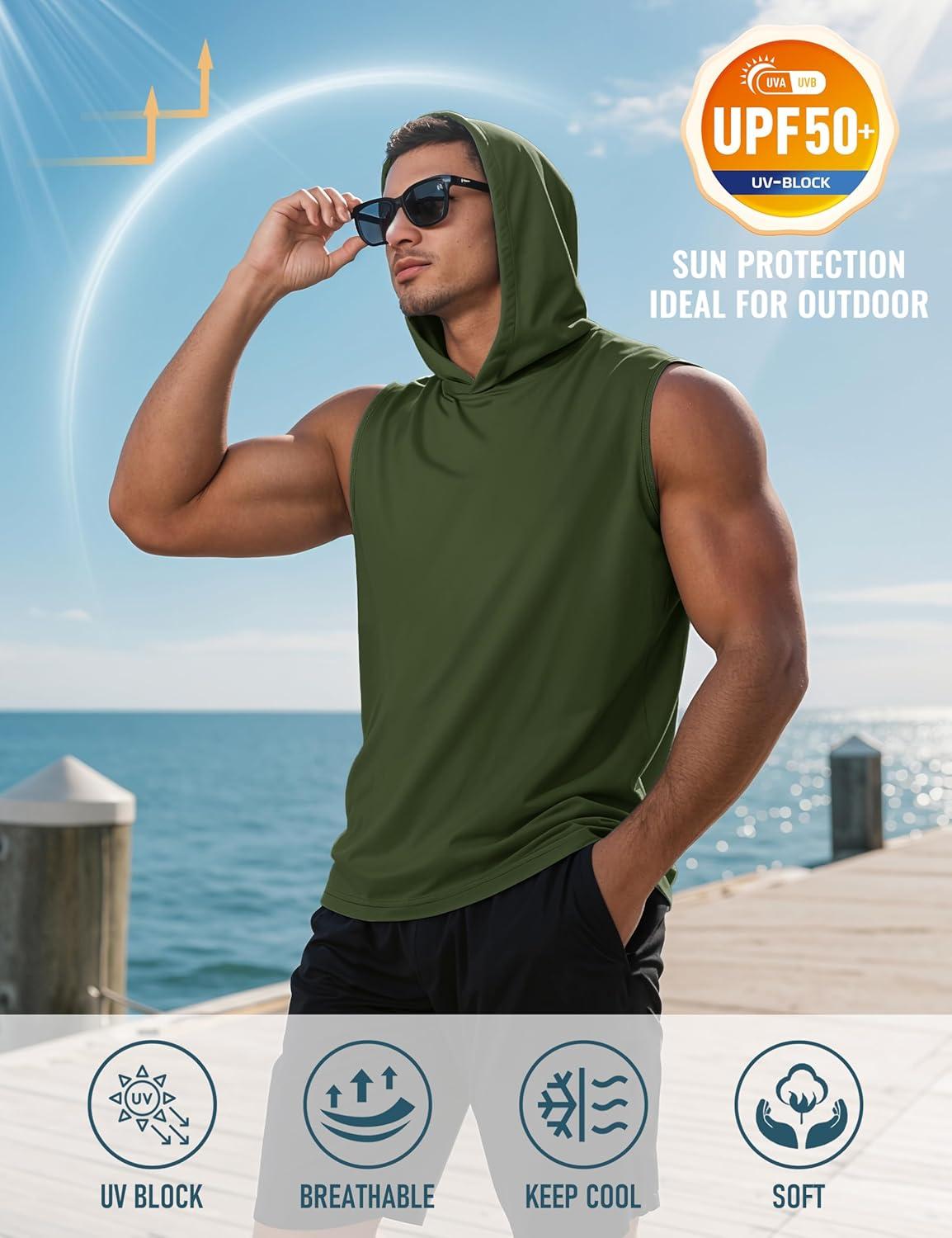 MAGCOMSEN Men‘s UPF 50+ Sleeveless Hoodie Sun Protection Cooling Muscle Tank Top for Workout Gym Fitness(Army Green)