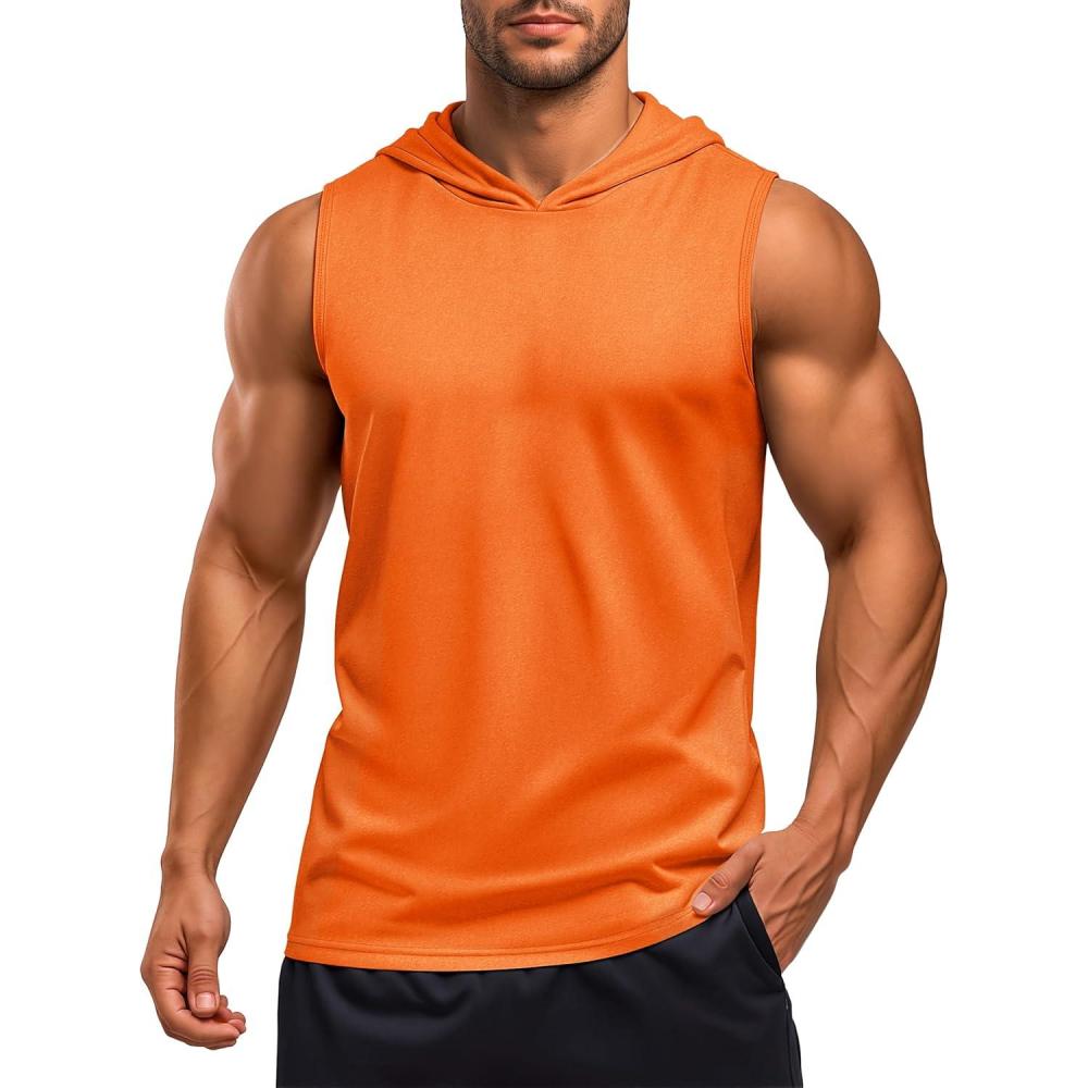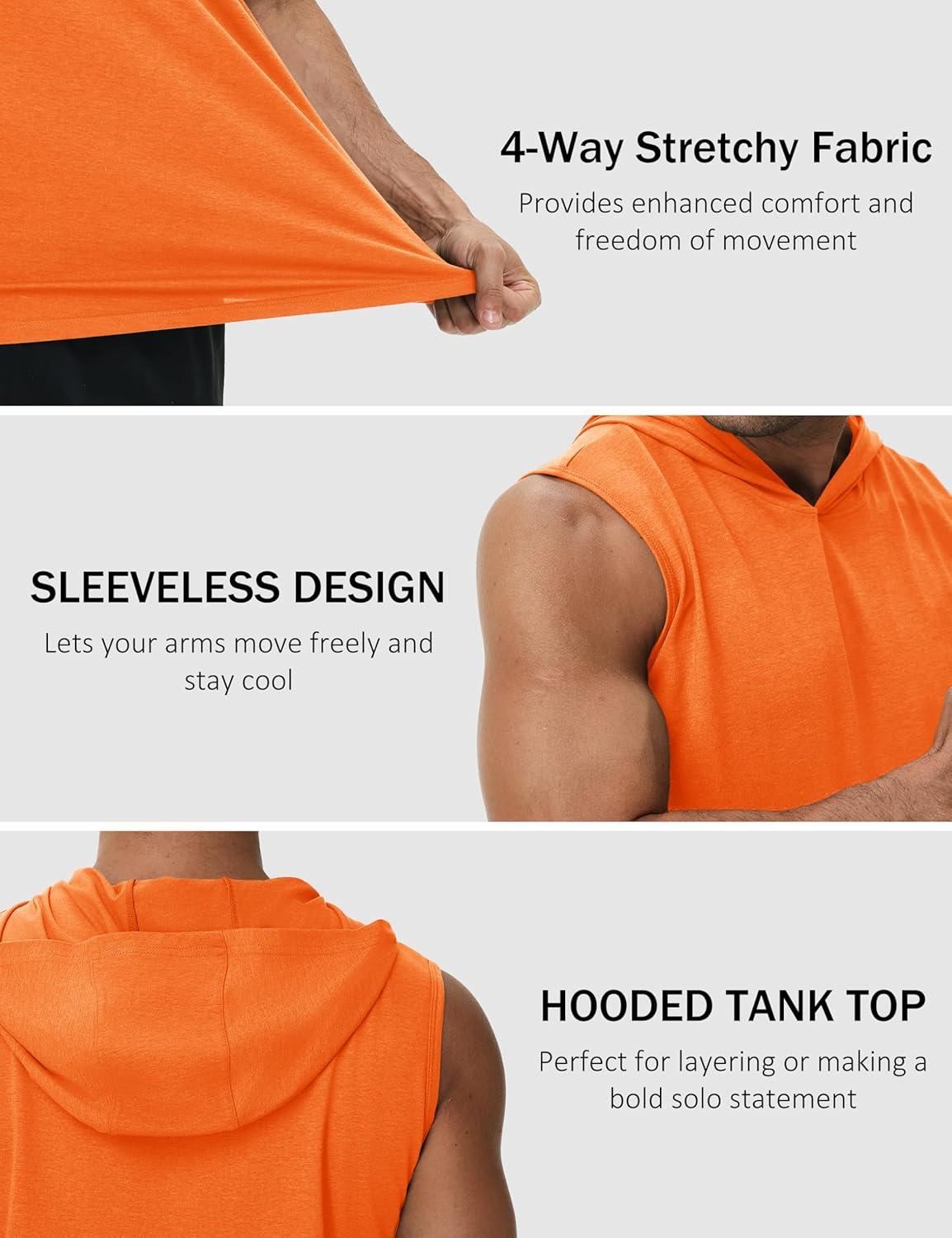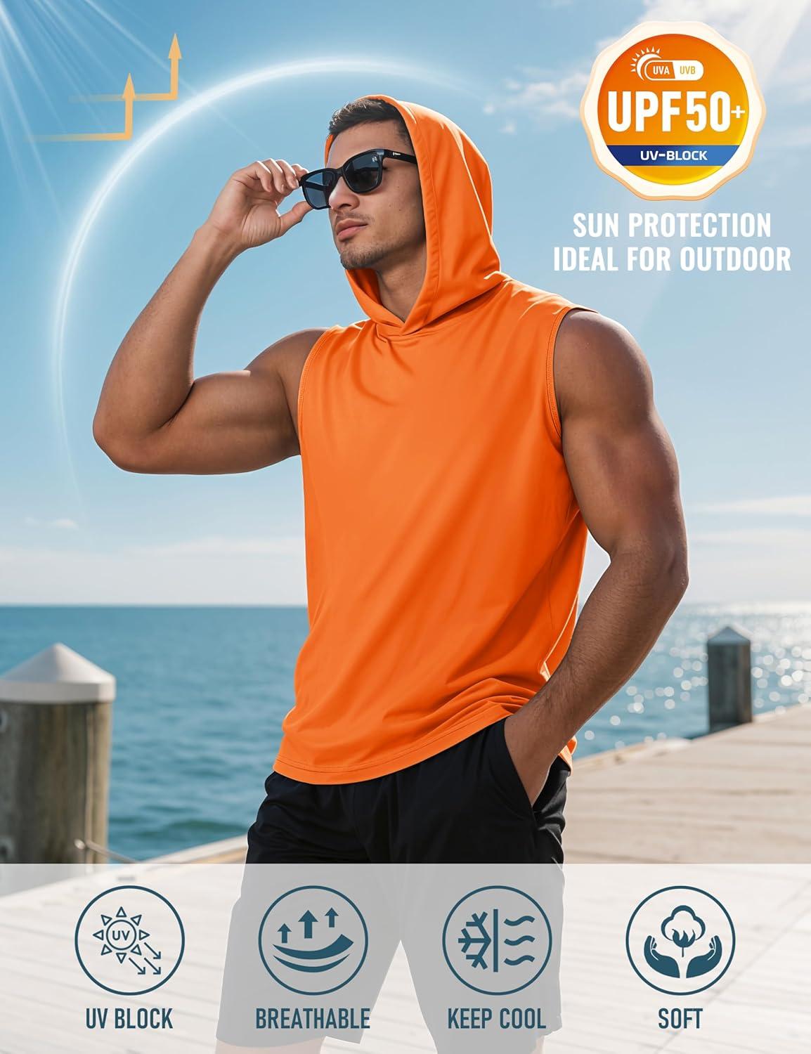MAGCOMSEN Men‘s UPF 50+ Sleeveless Hoodie Sun Protection Cooling Muscle Tank Top for Workout Gym Fitness(Orange)