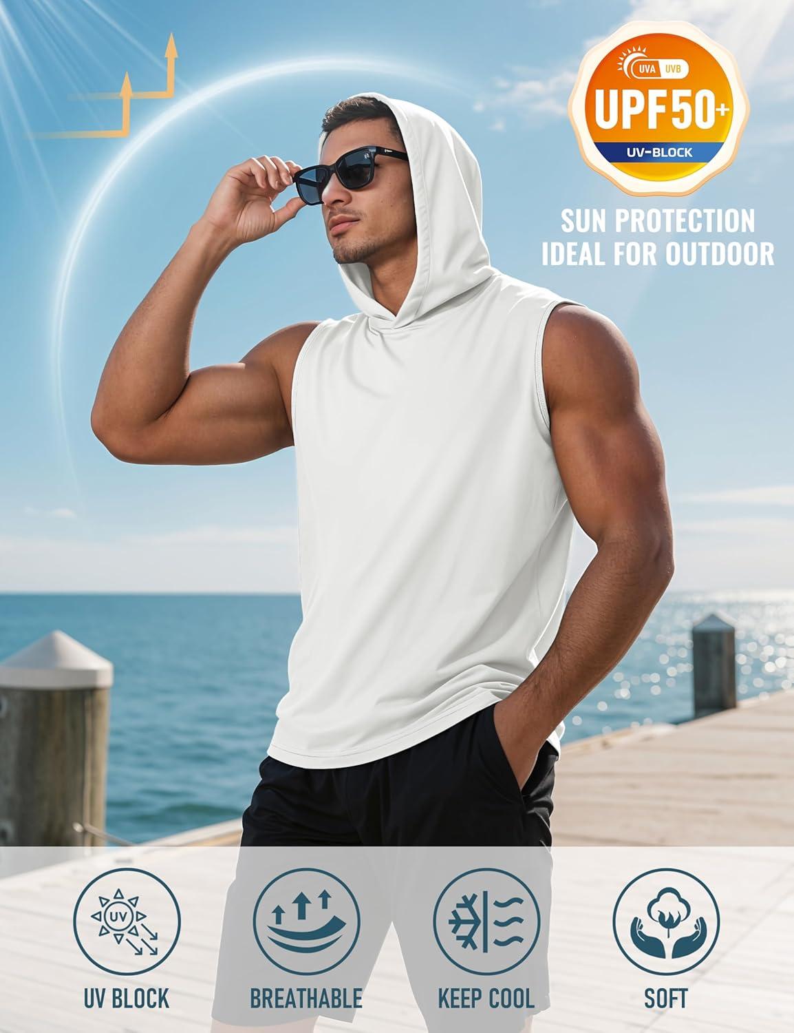 MAGCOMSEN Men‘s UPF 50+ Sleeveless Hoodie Sun Protection Cooling Muscle Tank Top for Workout Gym Fitness(White)