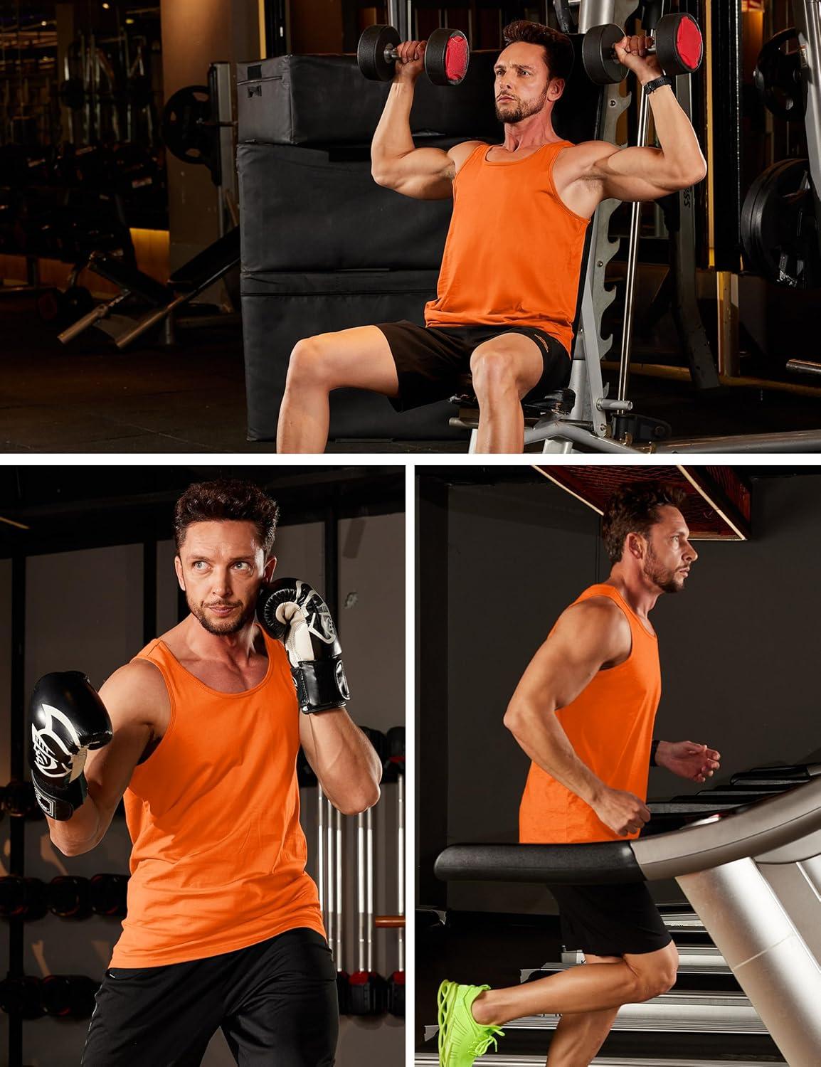 MAGCOMSEN Men’s UPF 50+ Tank Top Gym Workout Sleeveless Muscle Shirts Sun Protection Cut Off Shirts Summer Sleeveless T Shirt(Orange)