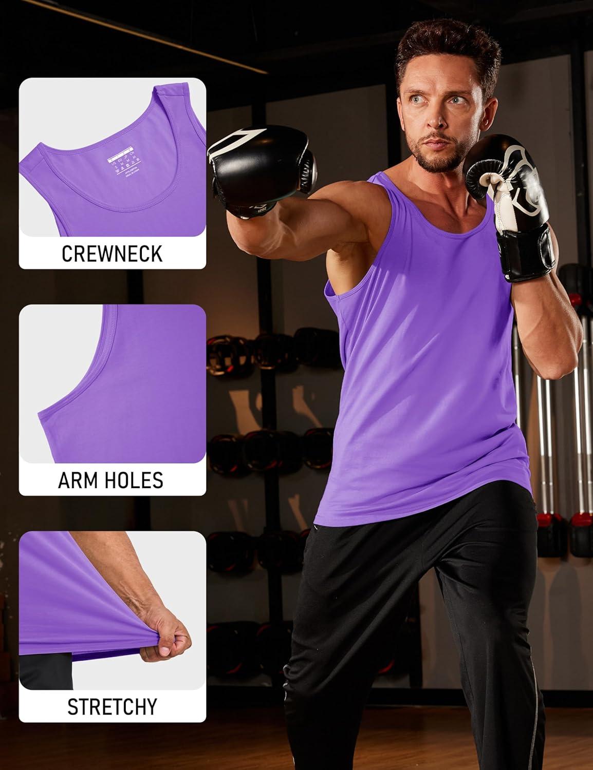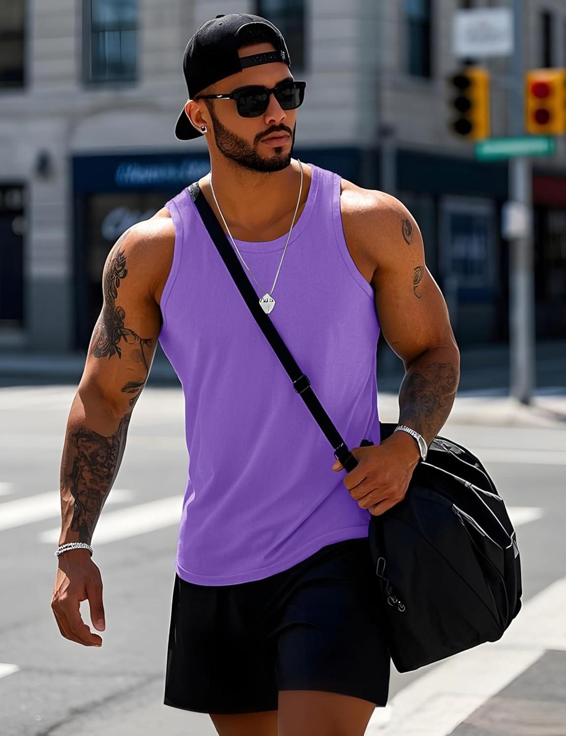 MAGCOMSEN Men’s UPF 50+ Tank Top Quick Dry Summer Workout Muscle Sleeveless Shirts for Swim Beach Bodybuilding(#08-light Purple)