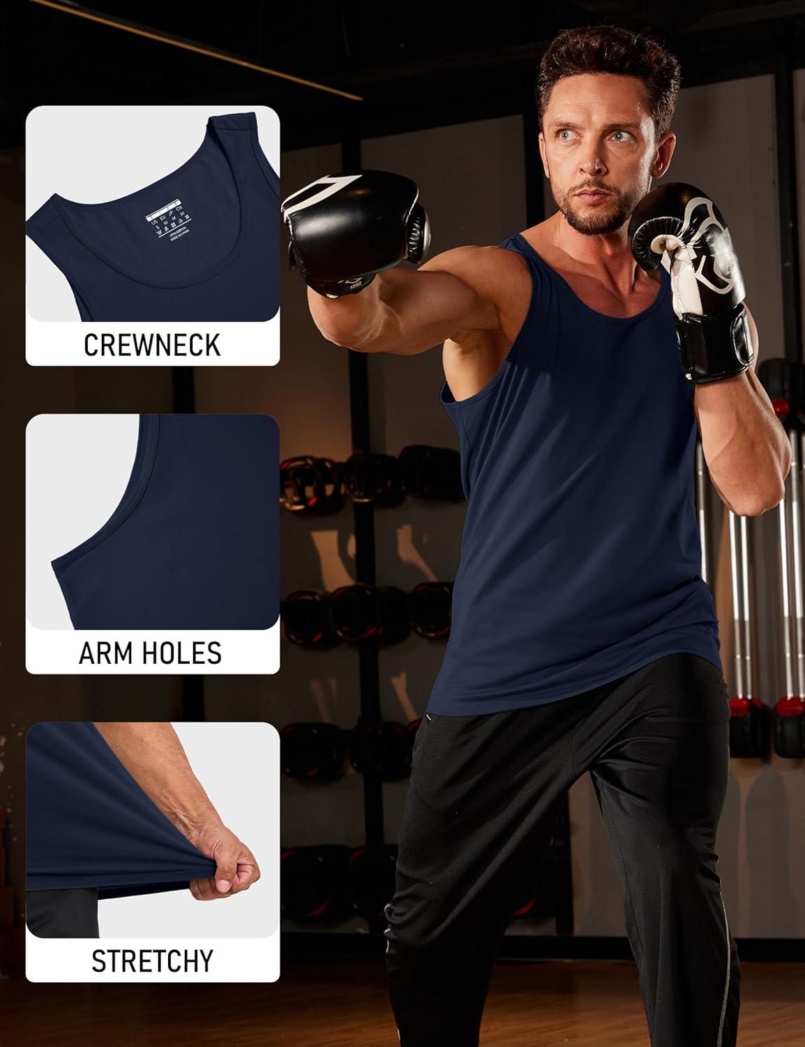 MAGCOMSEN Men’s UPF 50+ Tank Top Quick Dry Summer Workout Muscle Sleeveless Shirts for Swim Beach Bodybuilding(#09-navy)
