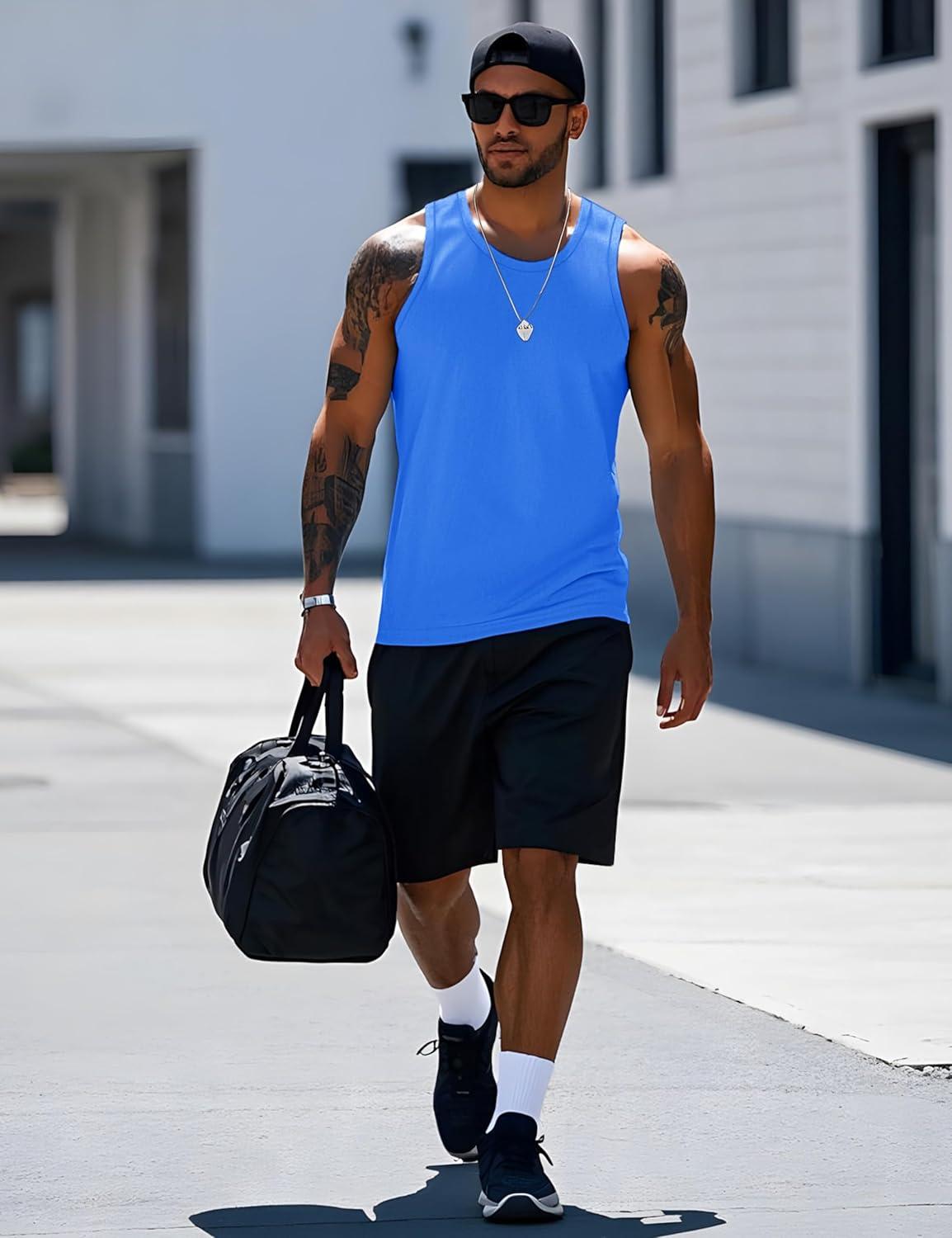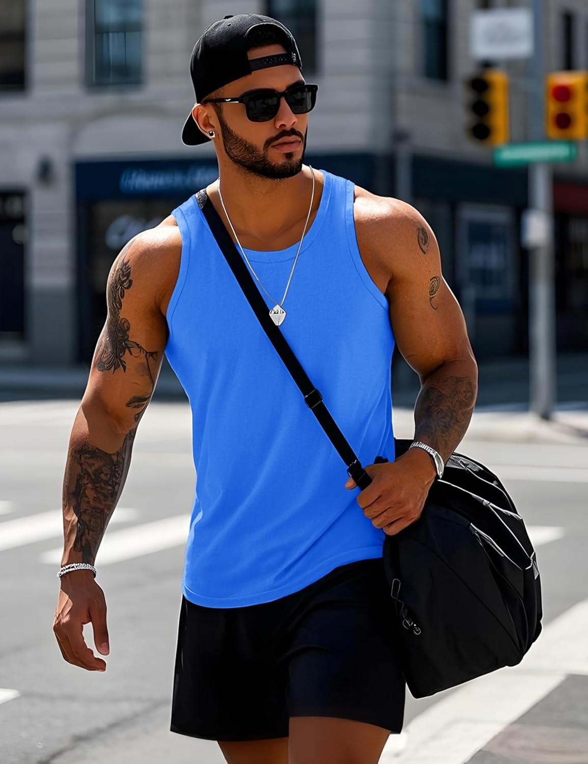 MAGCOMSEN Men’s UPF 50+ Tank Top Quick Dry Summer Workout Muscle Sleeveless Shirts for Swim Beach Bodybuilding(#10-azure)