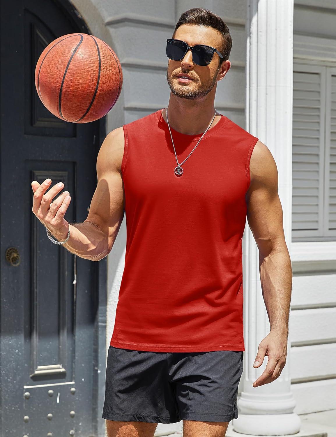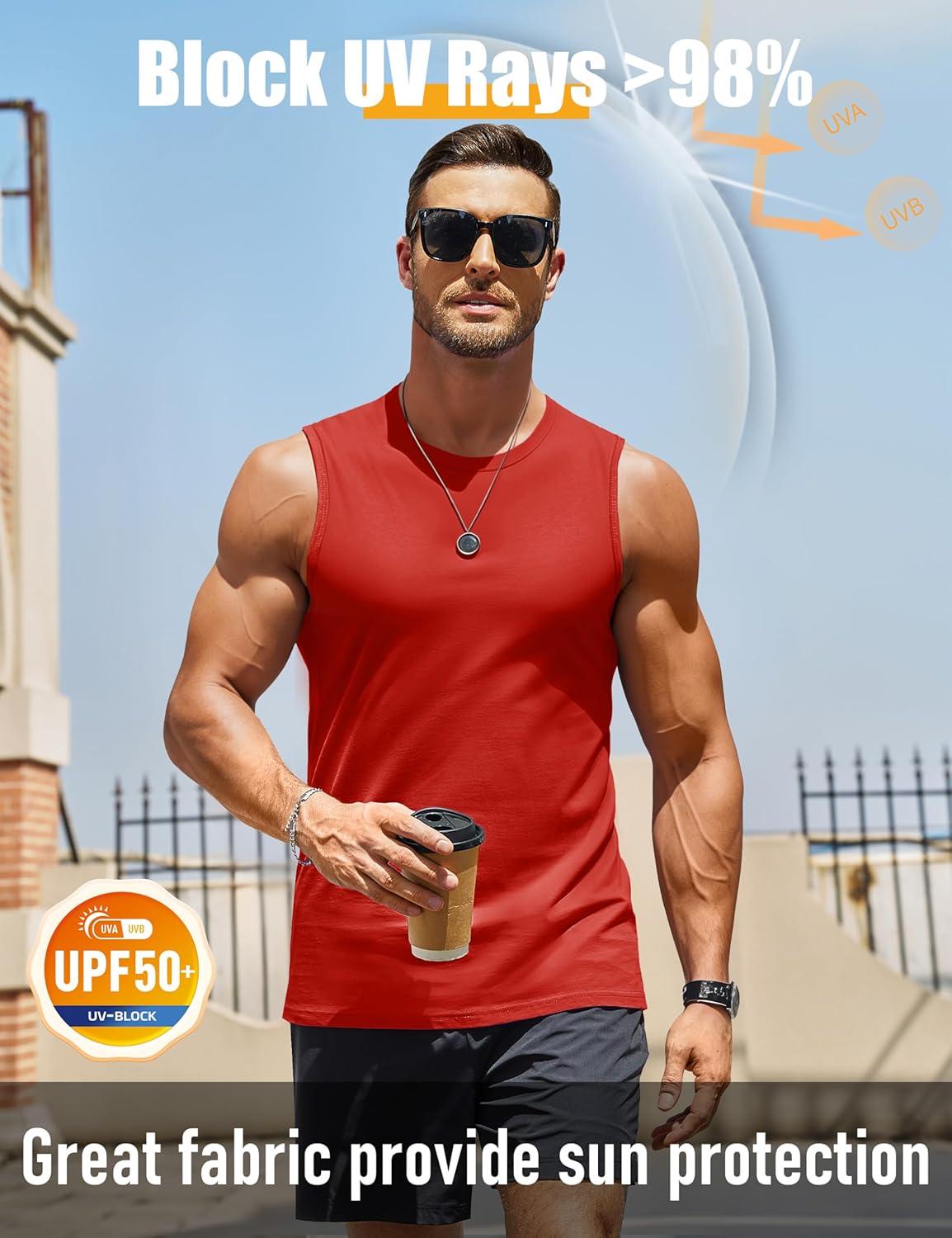 MAGCOMSEN Men’s UPF 50+ Tank Top Workout Sleeveless Muscle Shirts Lightweight Casual Cooling Sleeveless Shirt for Gym Beach(Tomato Red)