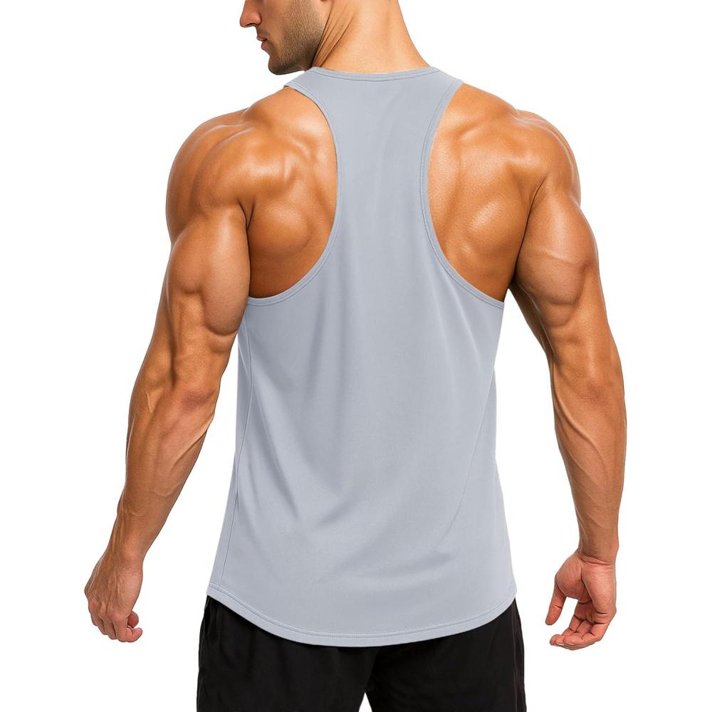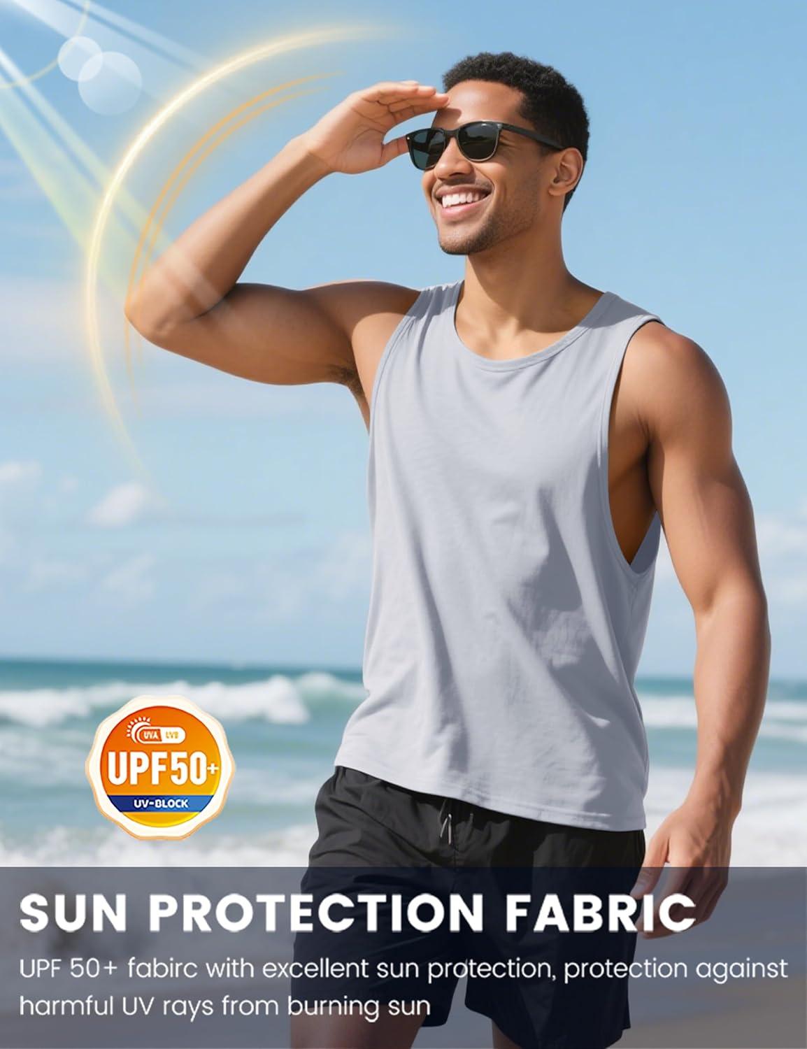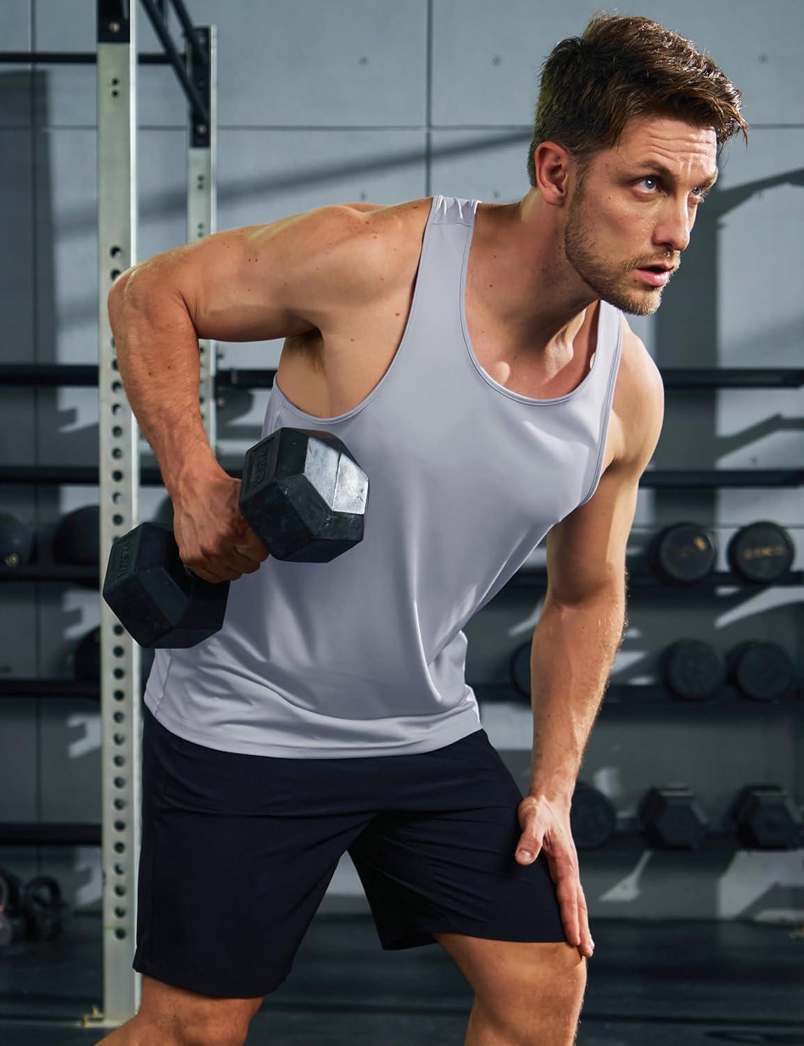 MAGCOMSEN Men’s UPF 50+ Tank Tops Y Back Quick Dry Workout Gym Sleeveless Muscle Shirts Summer Bodybuilding Cut Off Shirt(Light Grey)