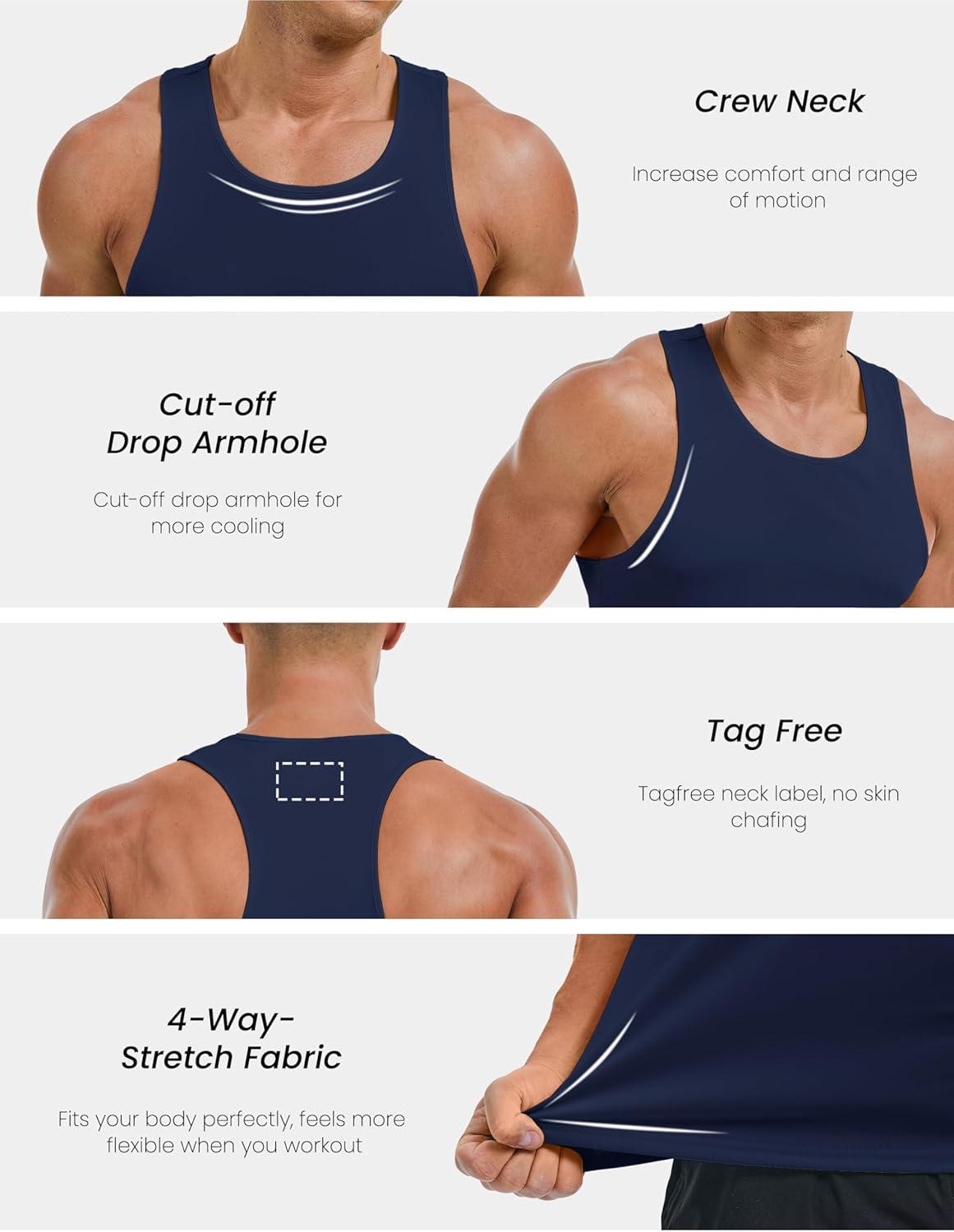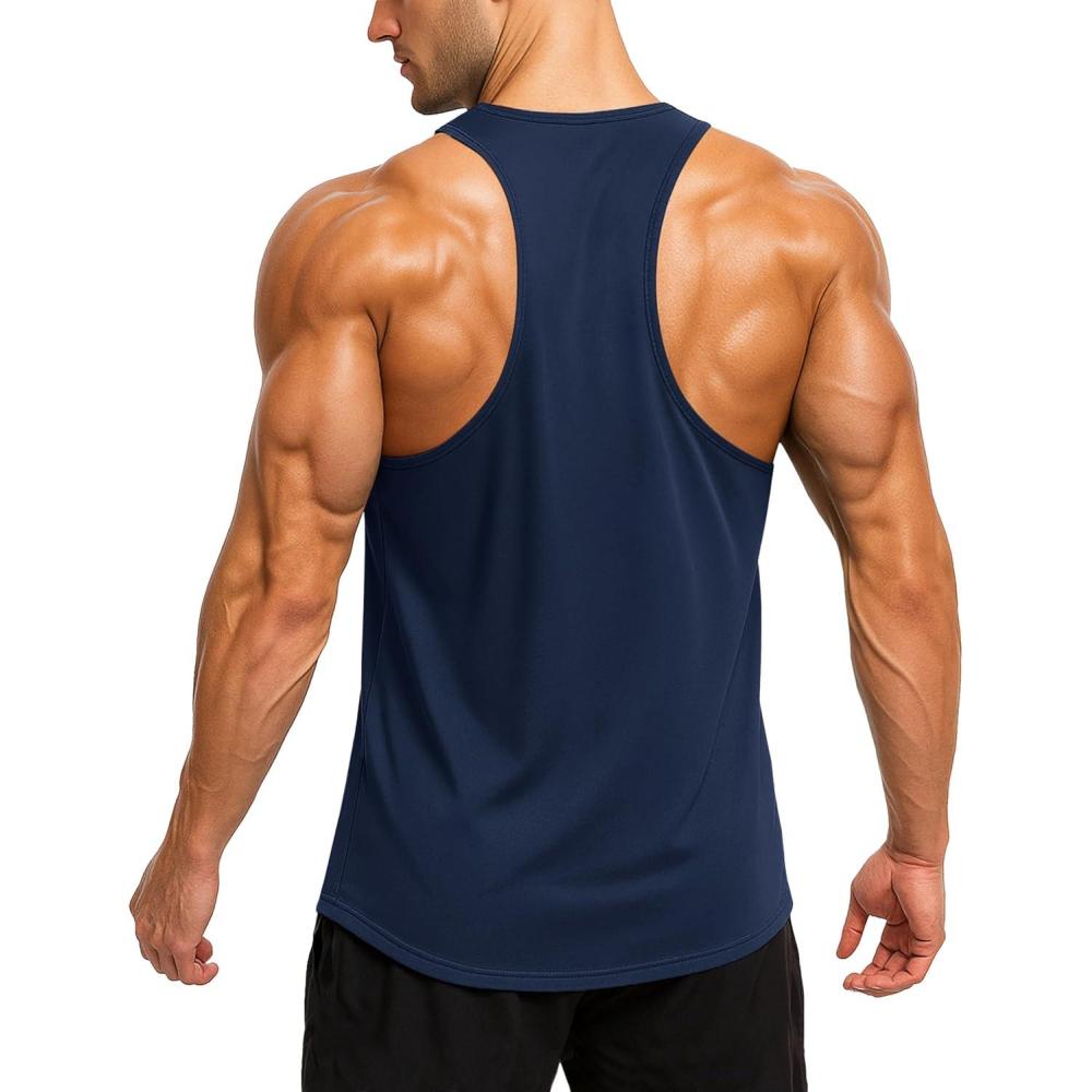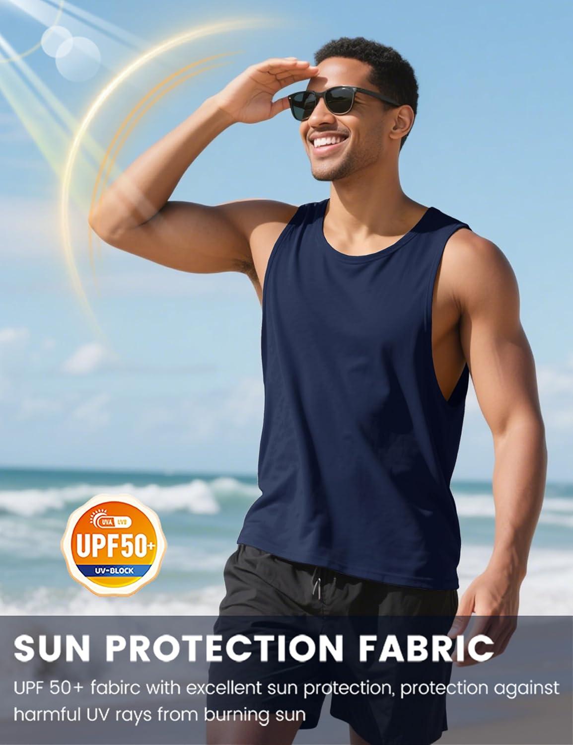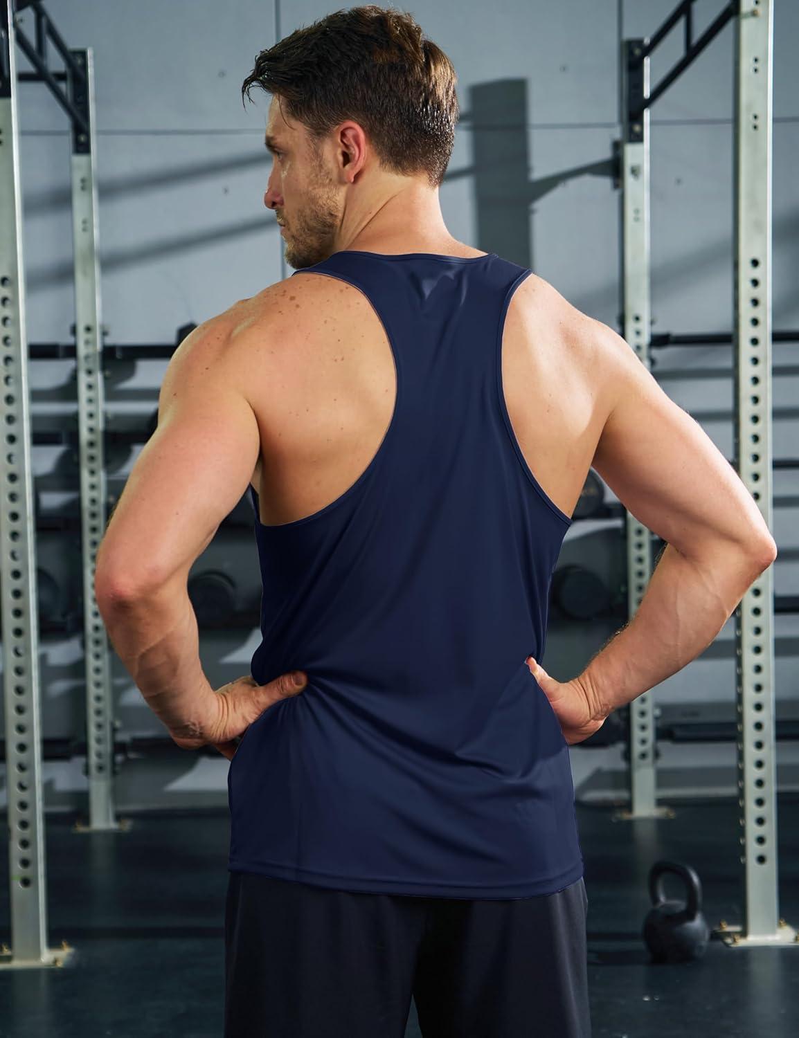 MAGCOMSEN Men’s UPF 50+ Tank Tops Y Back Quick Dry Workout Gym Sleeveless Muscle Shirts Summer Bodybuilding Cut Off Shirt(Navy)