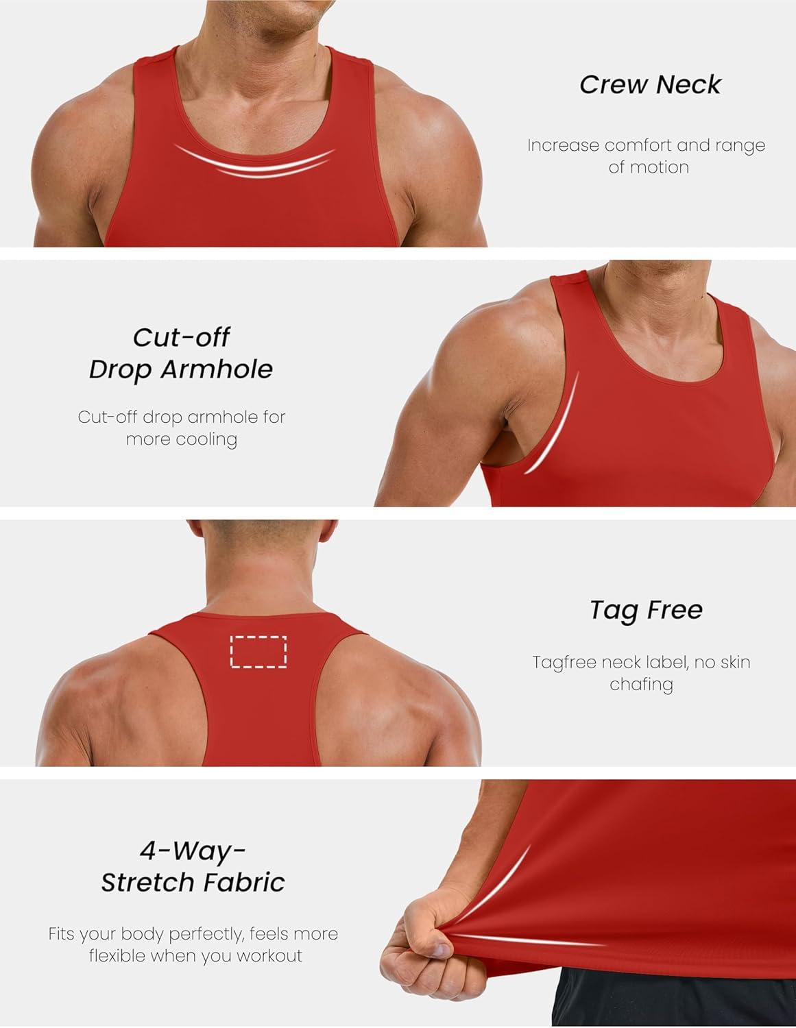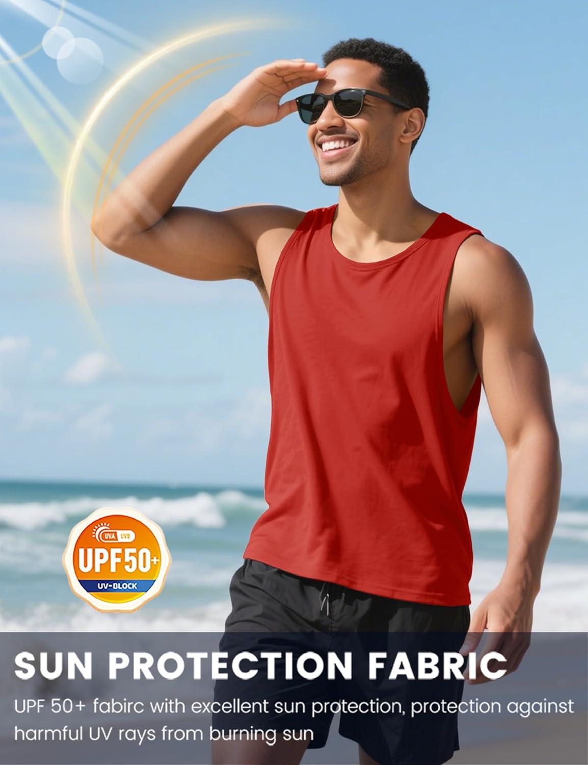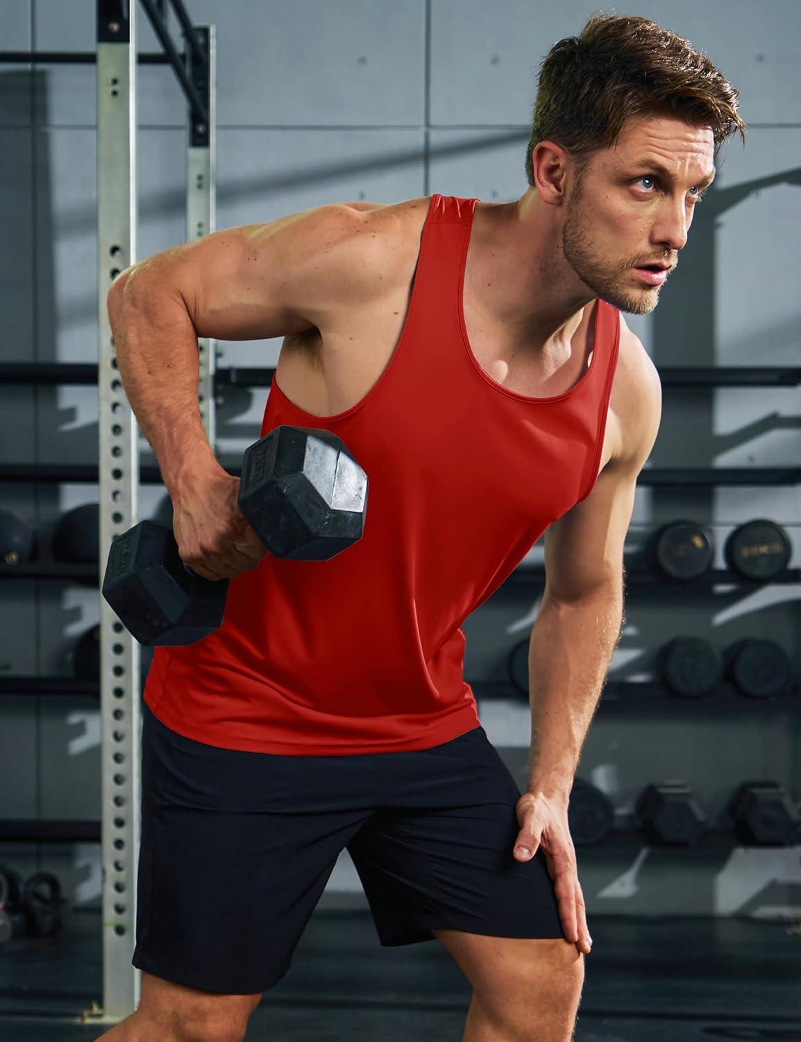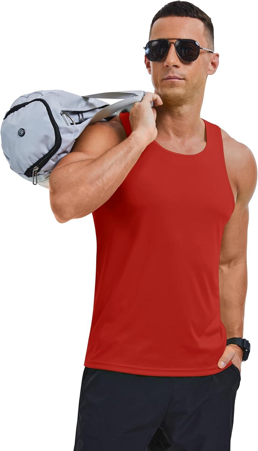MAGCOMSEN Men’s UPF 50+ Tank Tops Y Back Quick Dry Workout Gym Sleeveless Muscle Shirts Summer Bodybuilding Cut Off Shirt(Red)