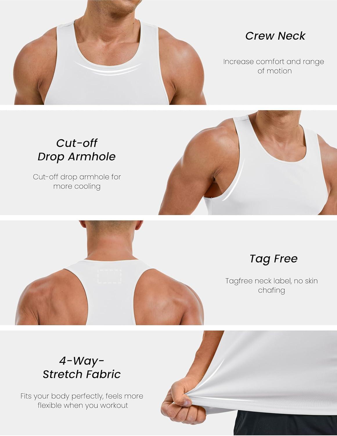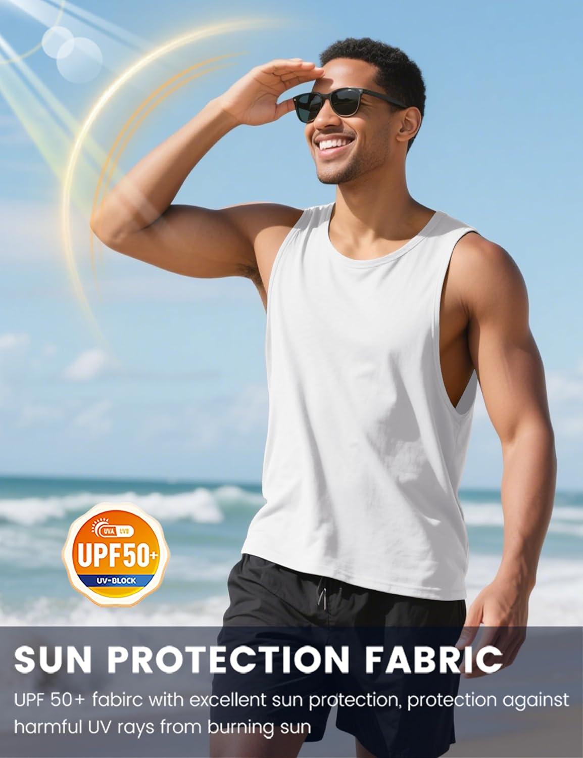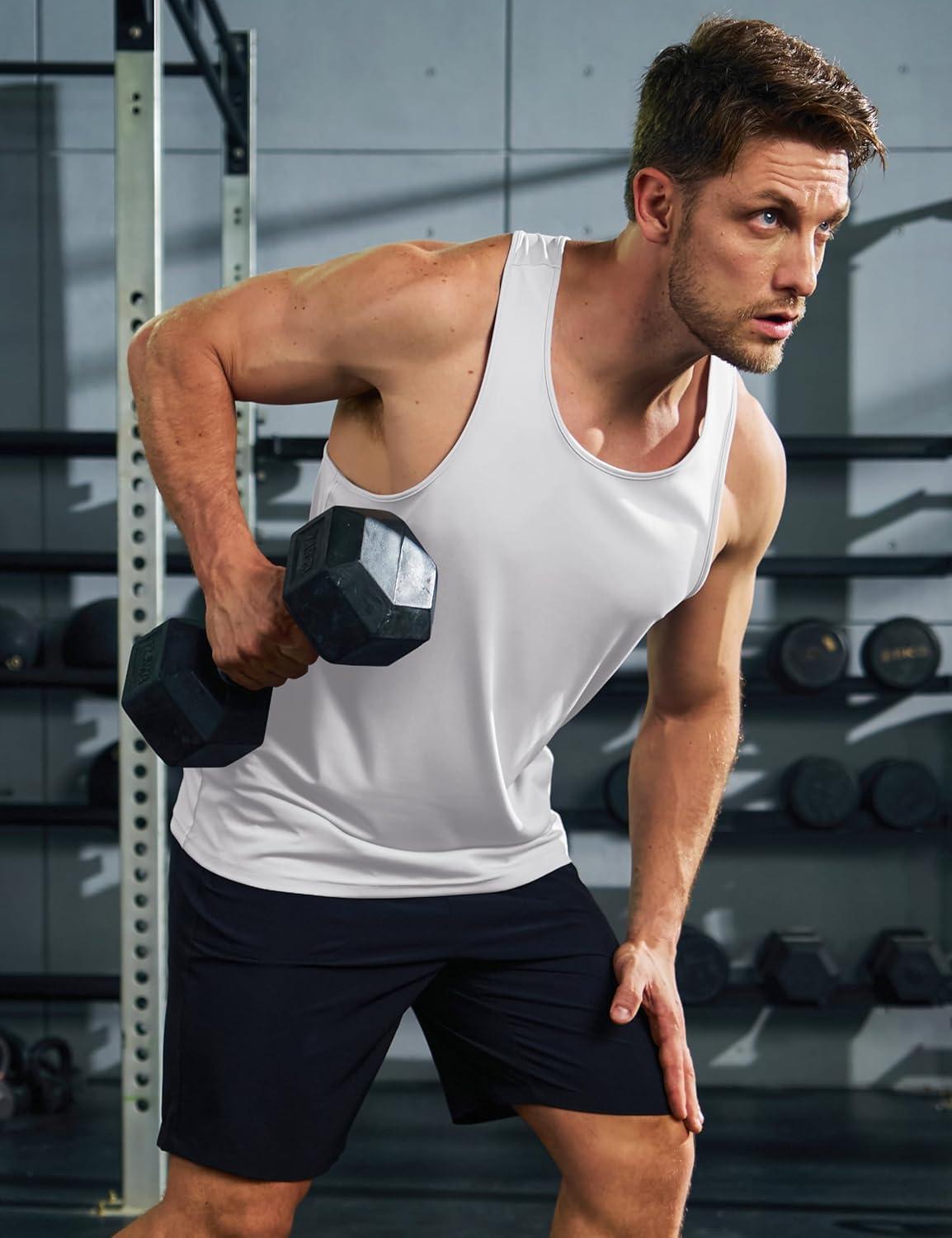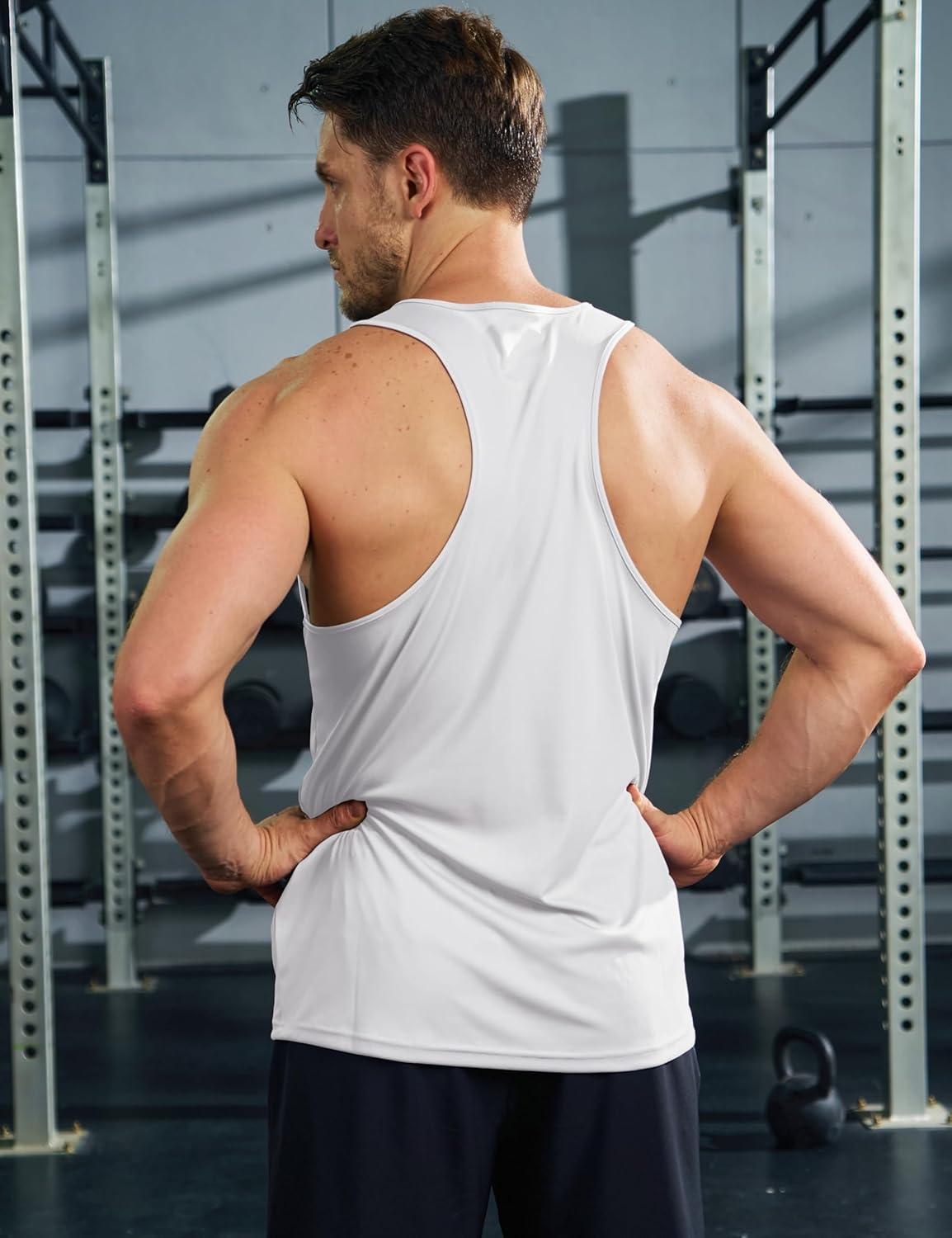 MAGCOMSEN Men’s UPF 50+ Tank Tops Y Back Quick Dry Workout Gym Sleeveless Muscle Shirts Summer Bodybuilding Cut Off Shirt(White)
