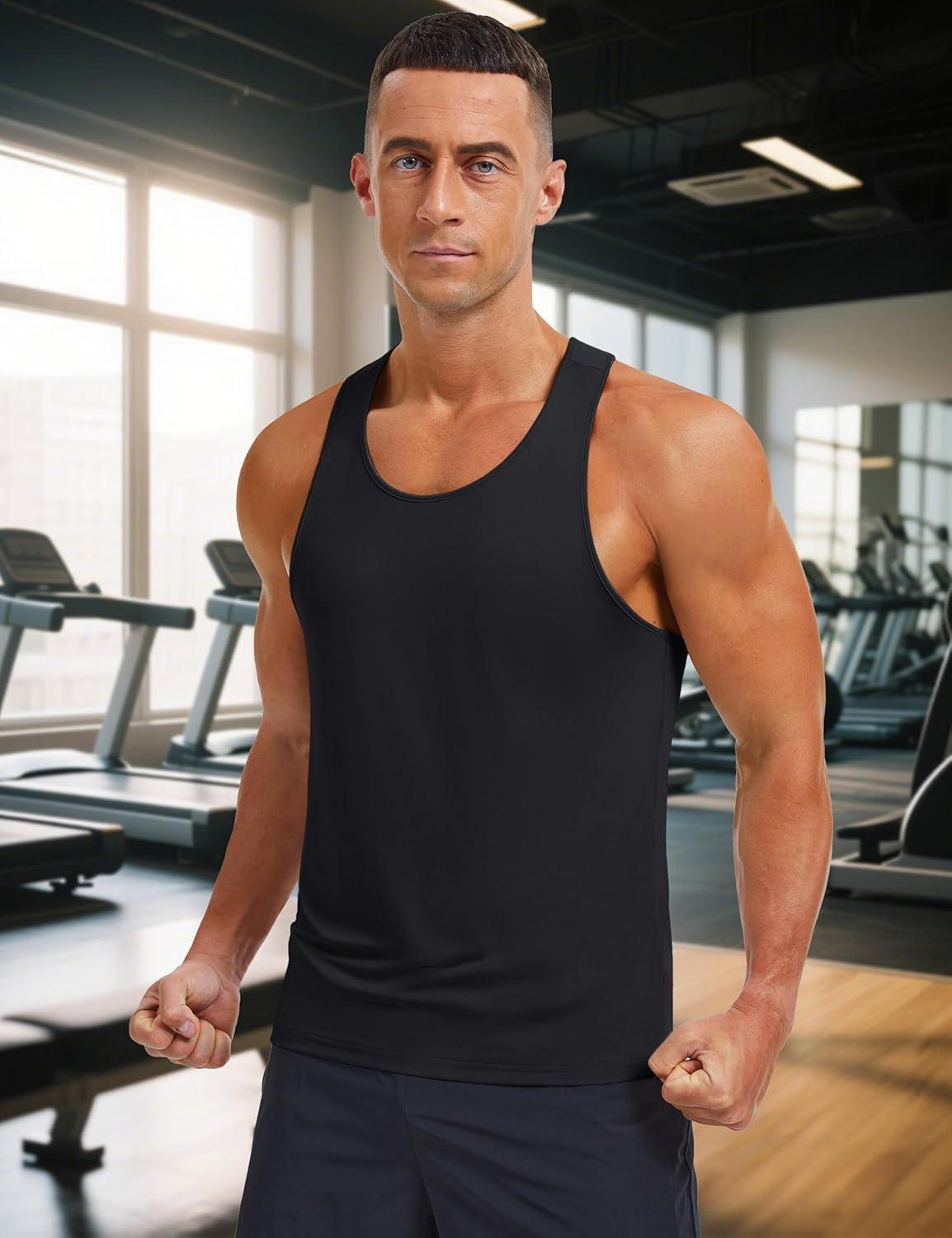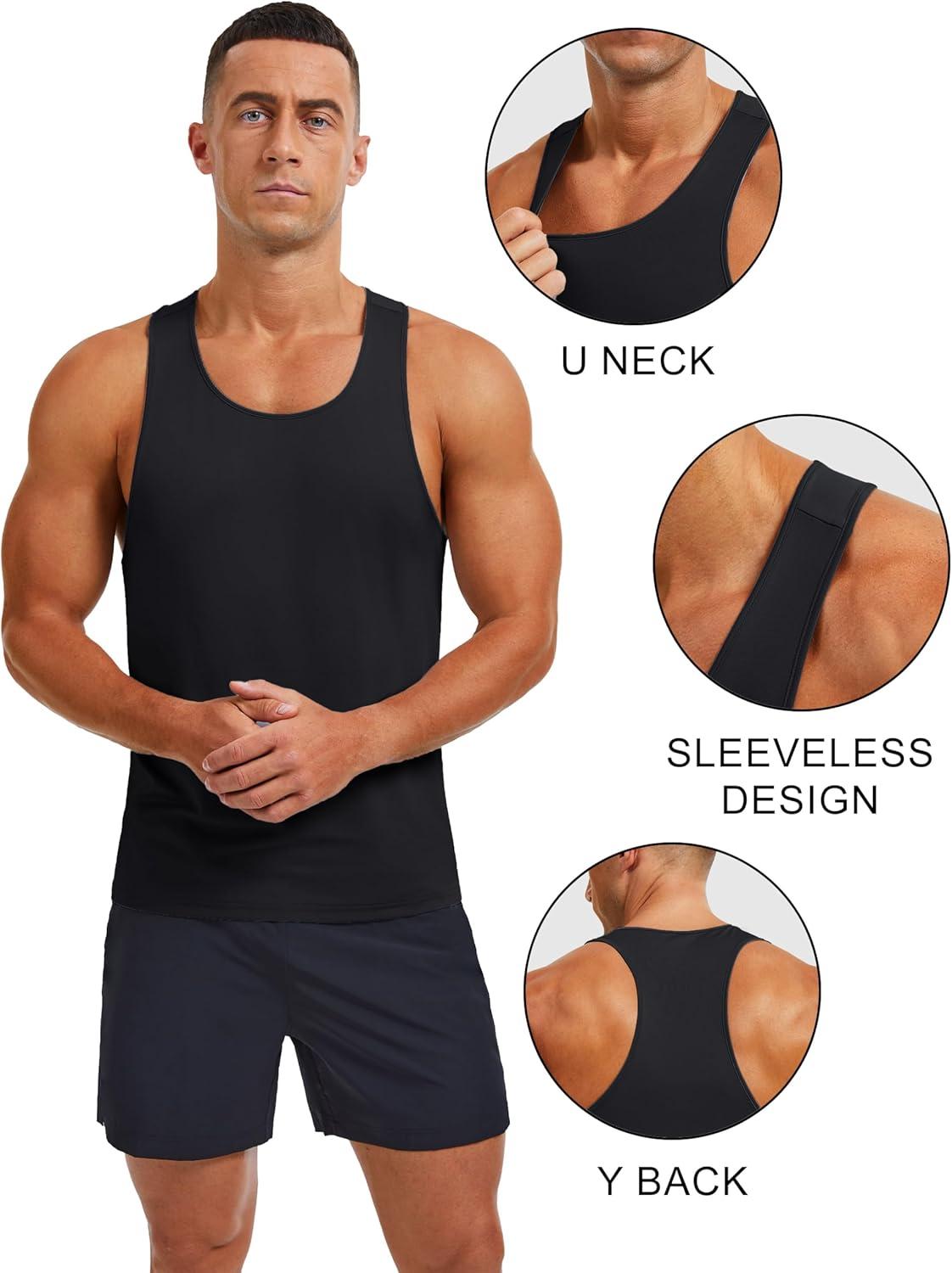 MAGCOMSEN Mens UPF 80+ Tank Tops Y Back Quick Dry Gym Workout Running Athletic Fitness Muscle Sleeveless Summer Shirts(Black)