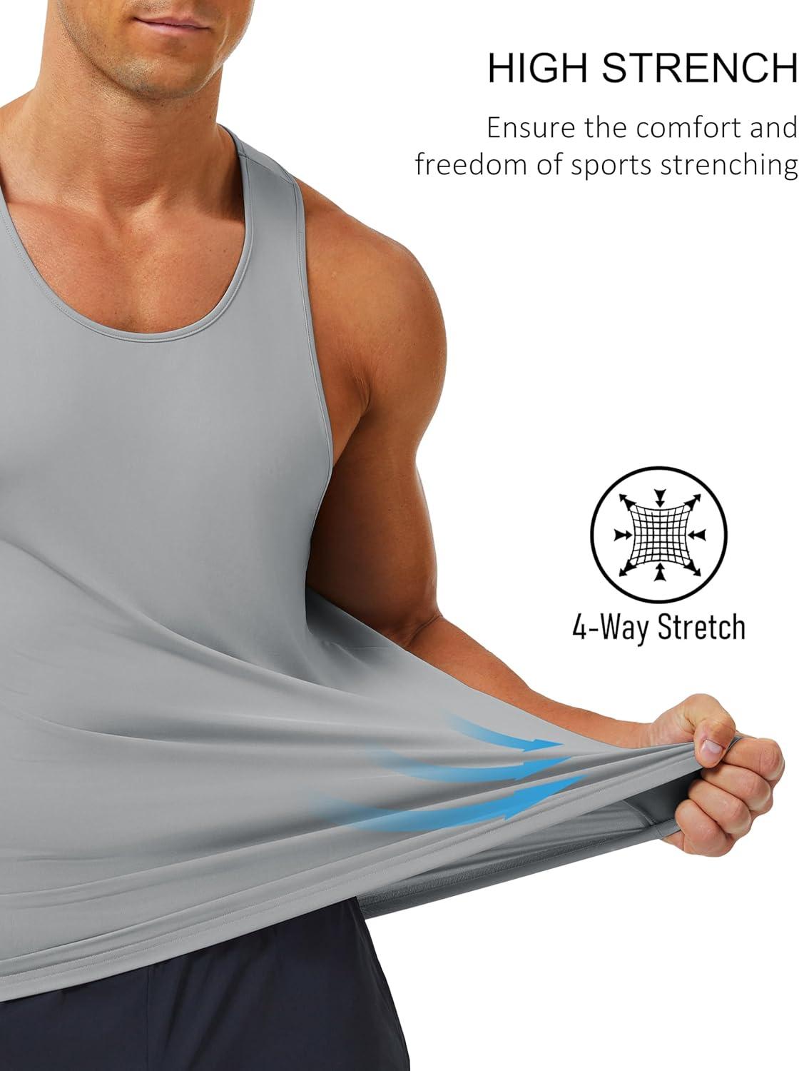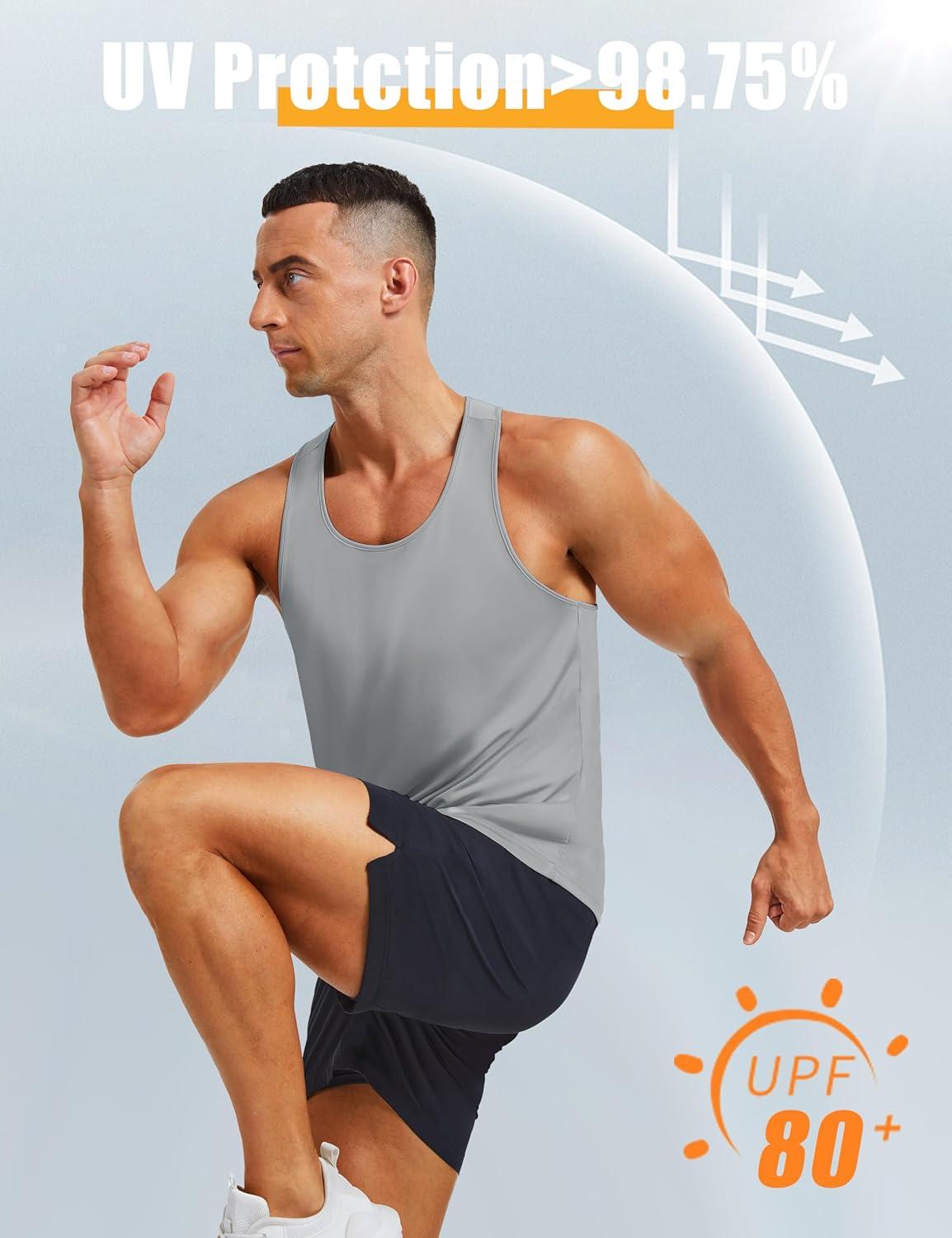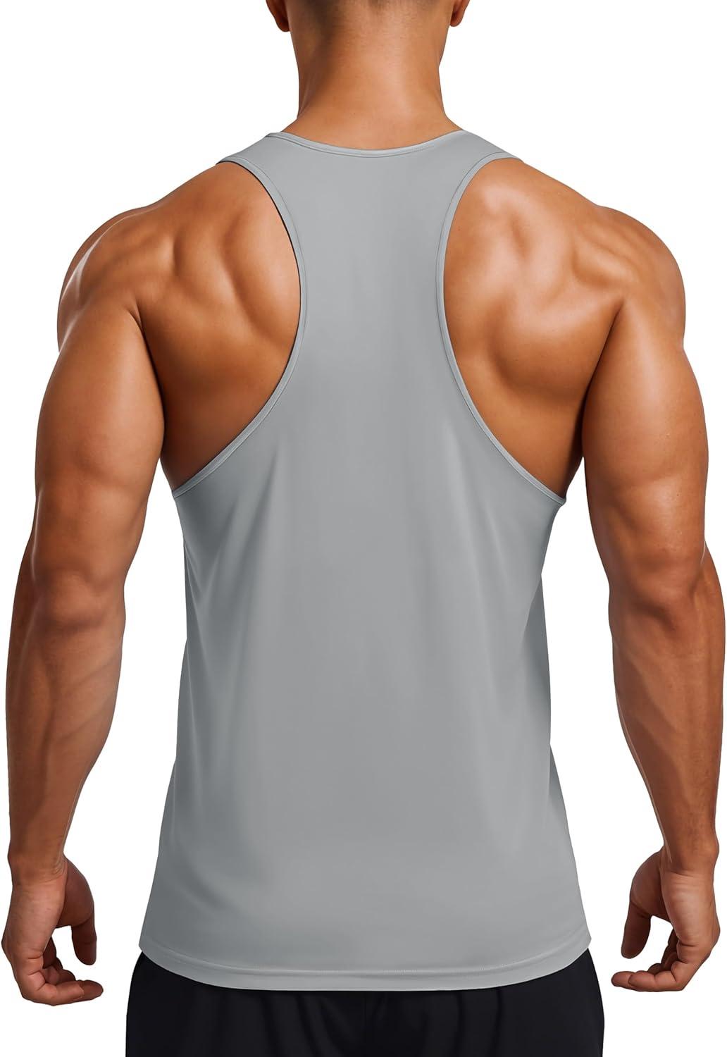 MAGCOMSEN Mens UPF 80+ Tank Tops Y Back Quick Dry Gym Workout Running Athletic Fitness Muscle Sleeveless Summer Shirts(Lightgrey)