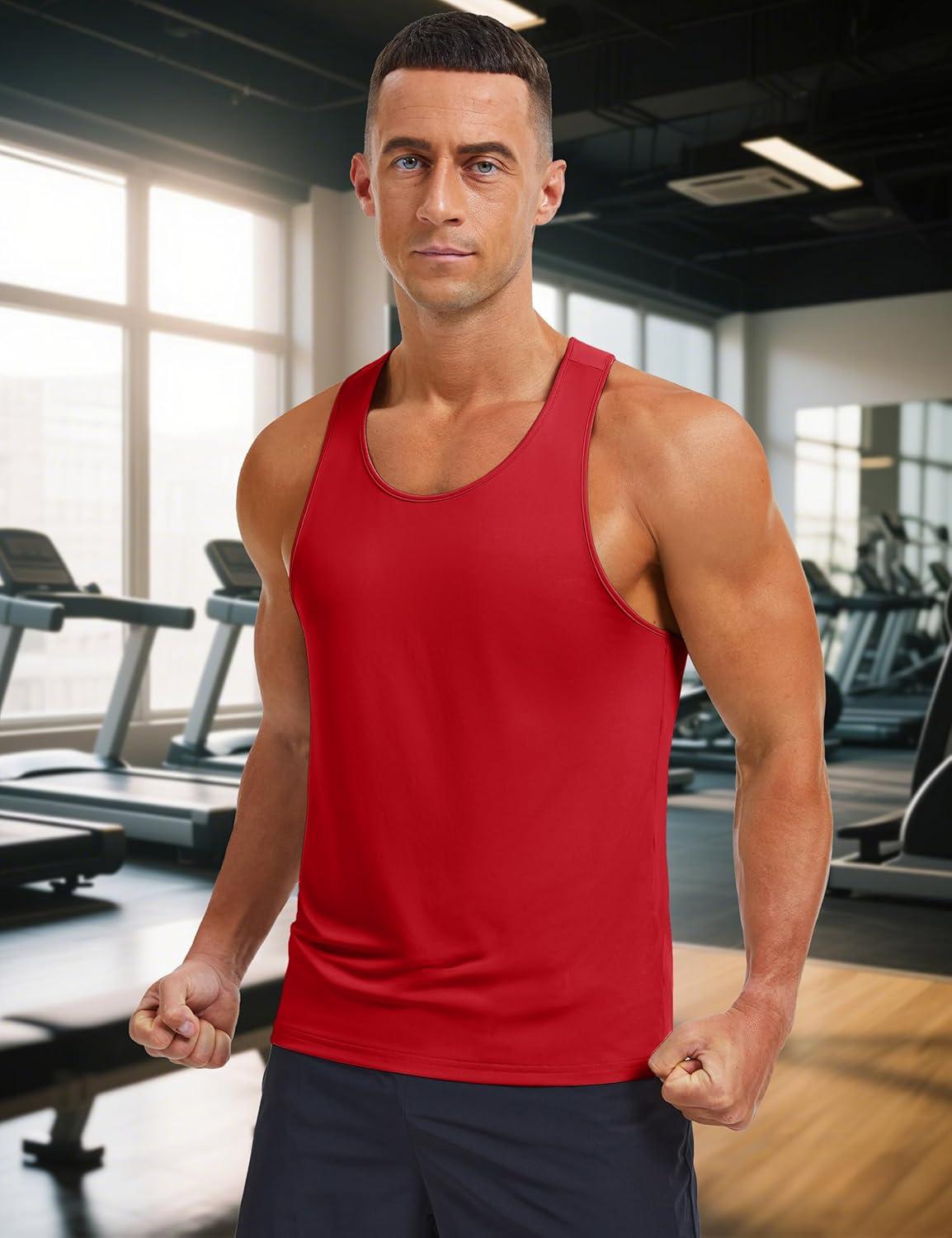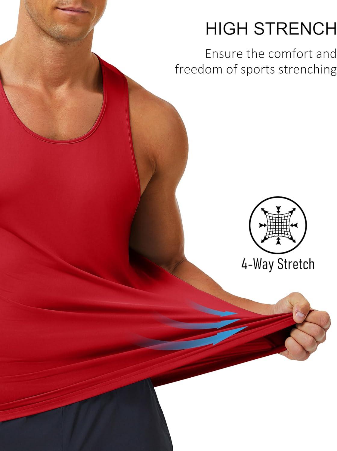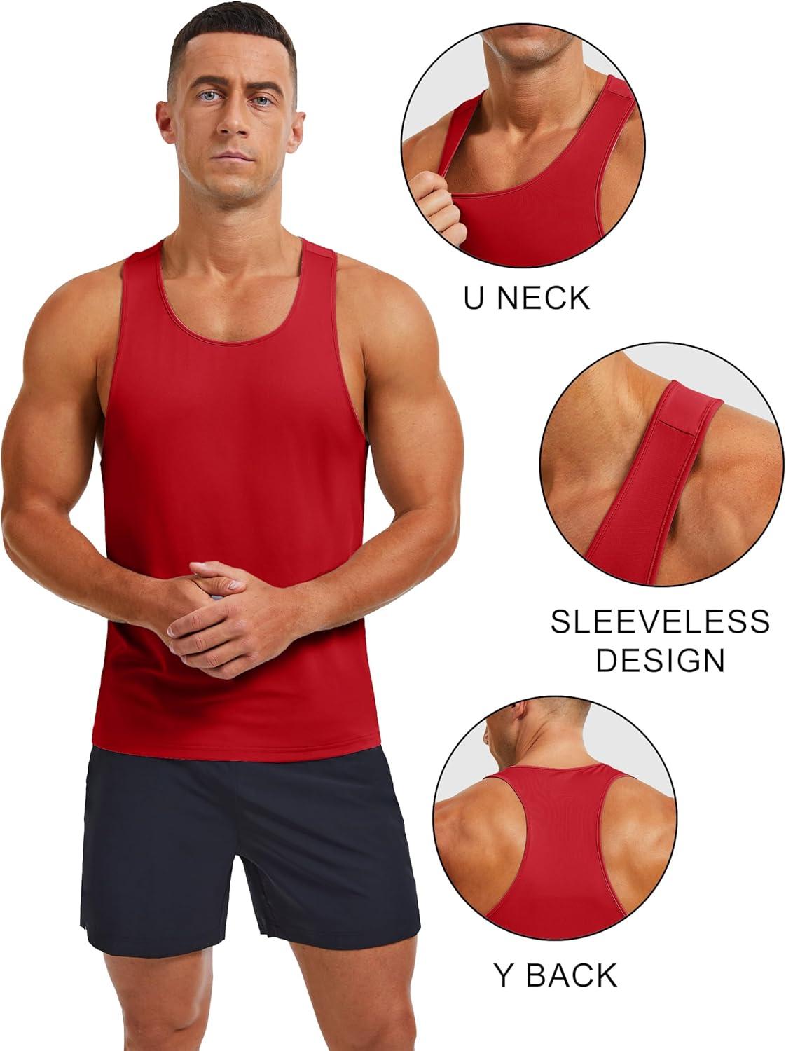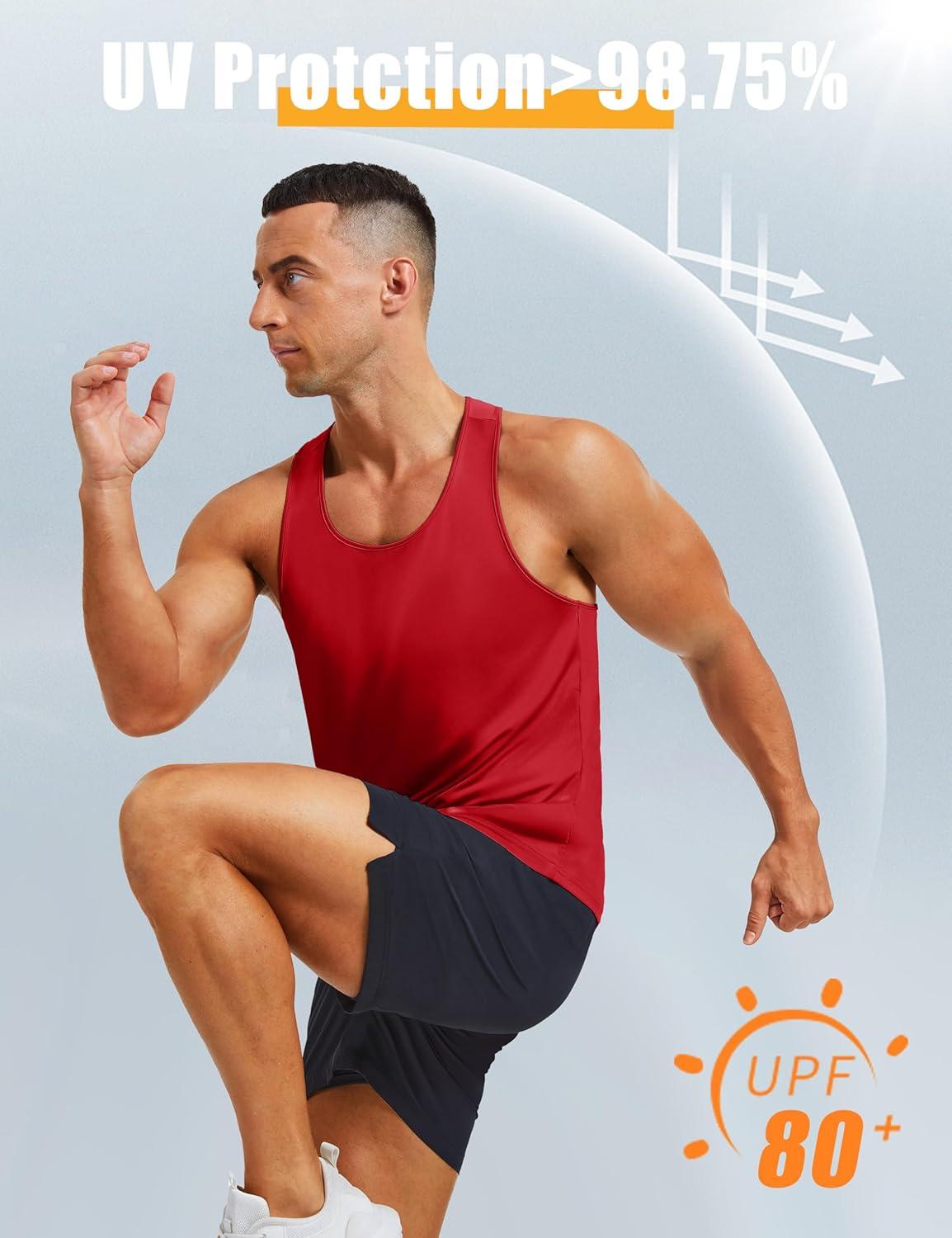 MAGCOMSEN Mens UPF 80+ Tank Tops Y Back Quick Dry Gym Workout Running Athletic Fitness Muscle Sleeveless Summer Shirts(Red)