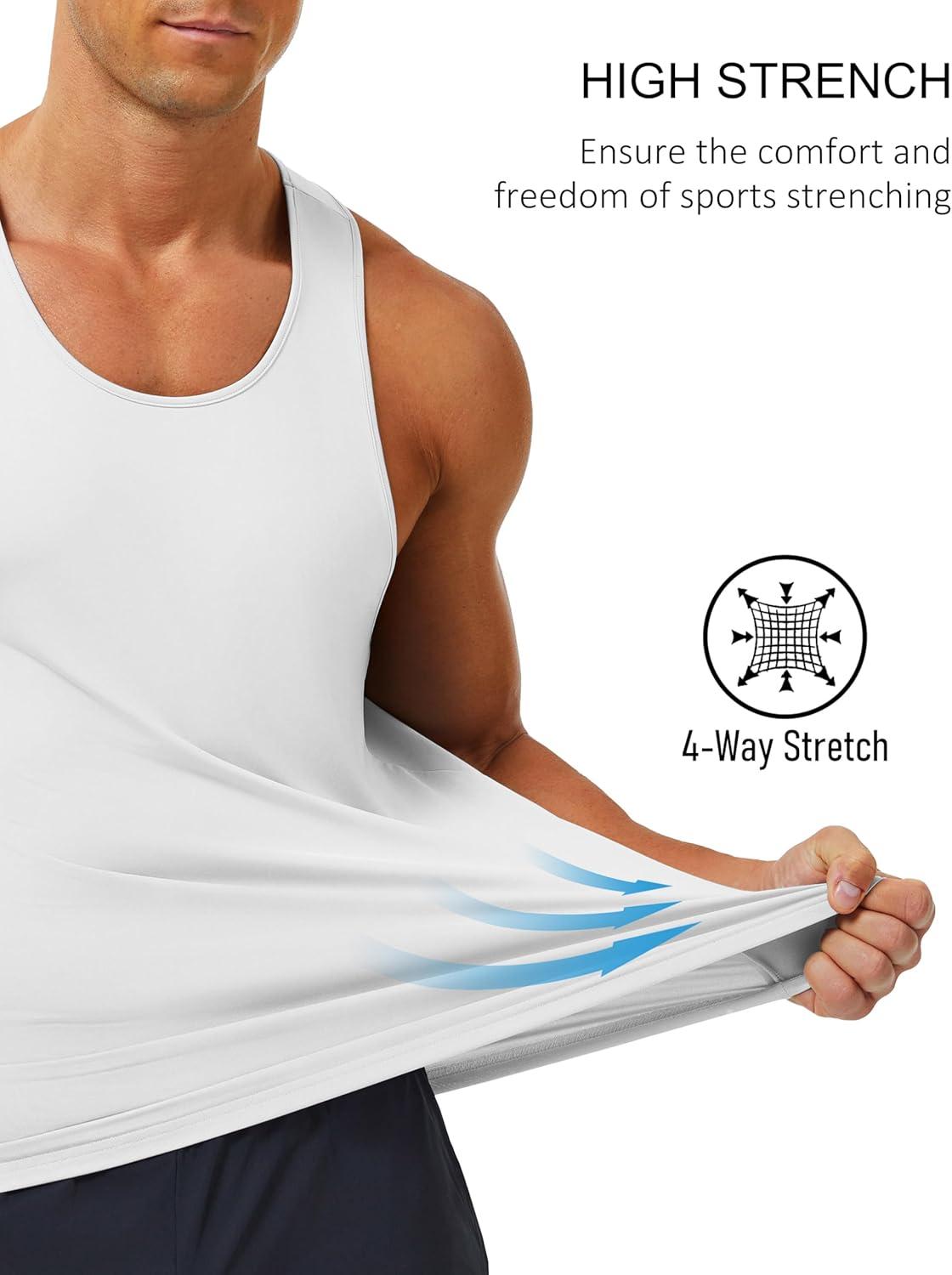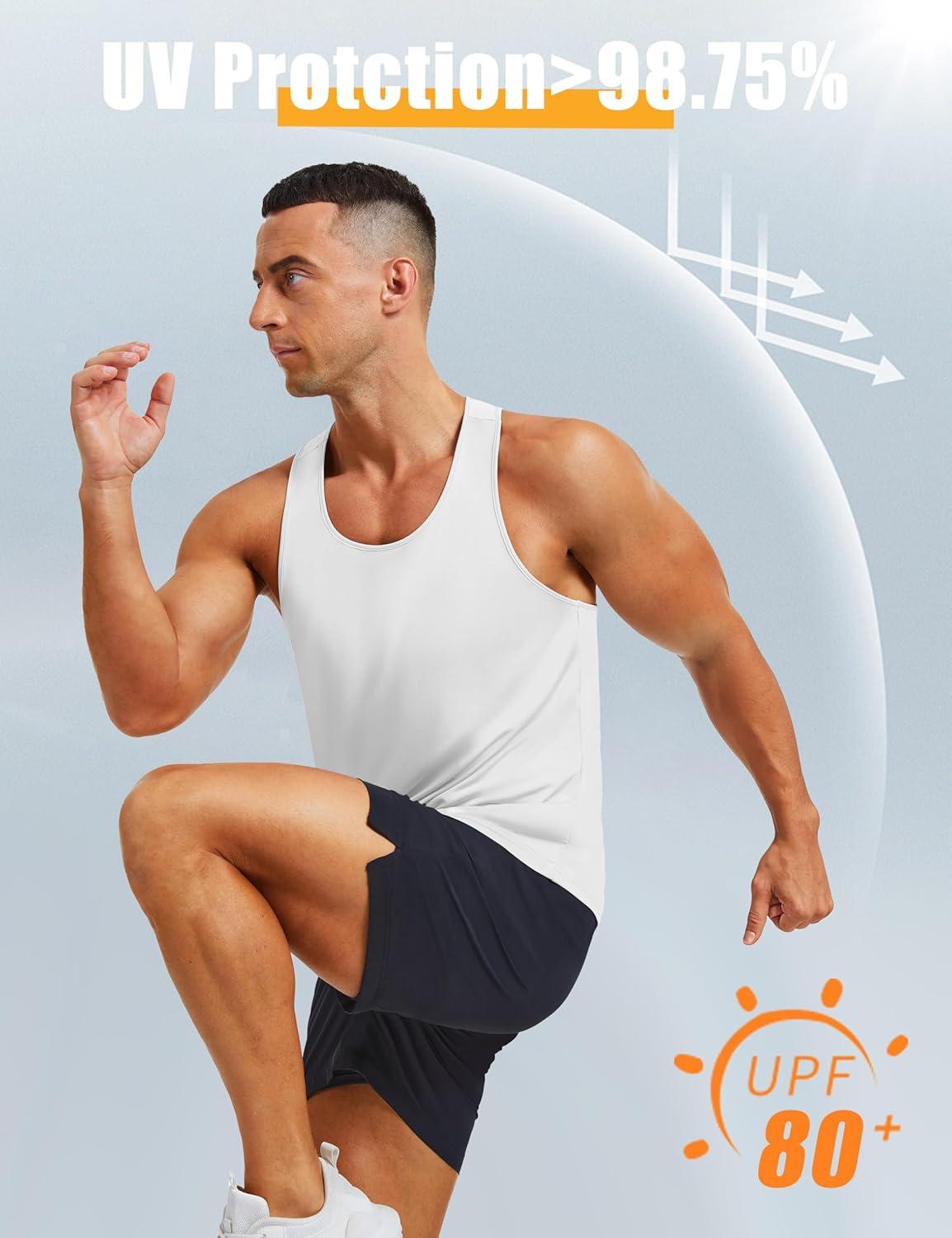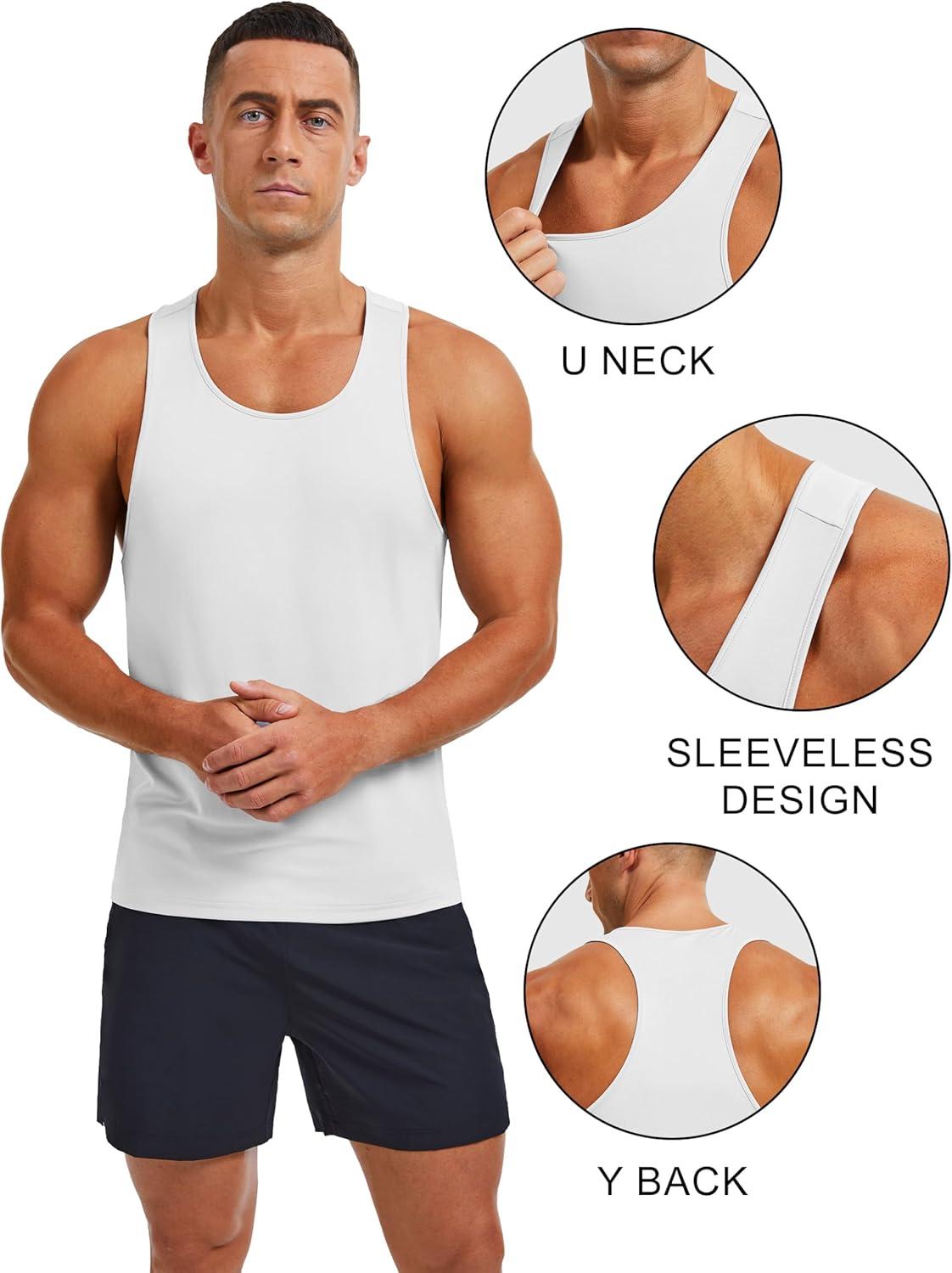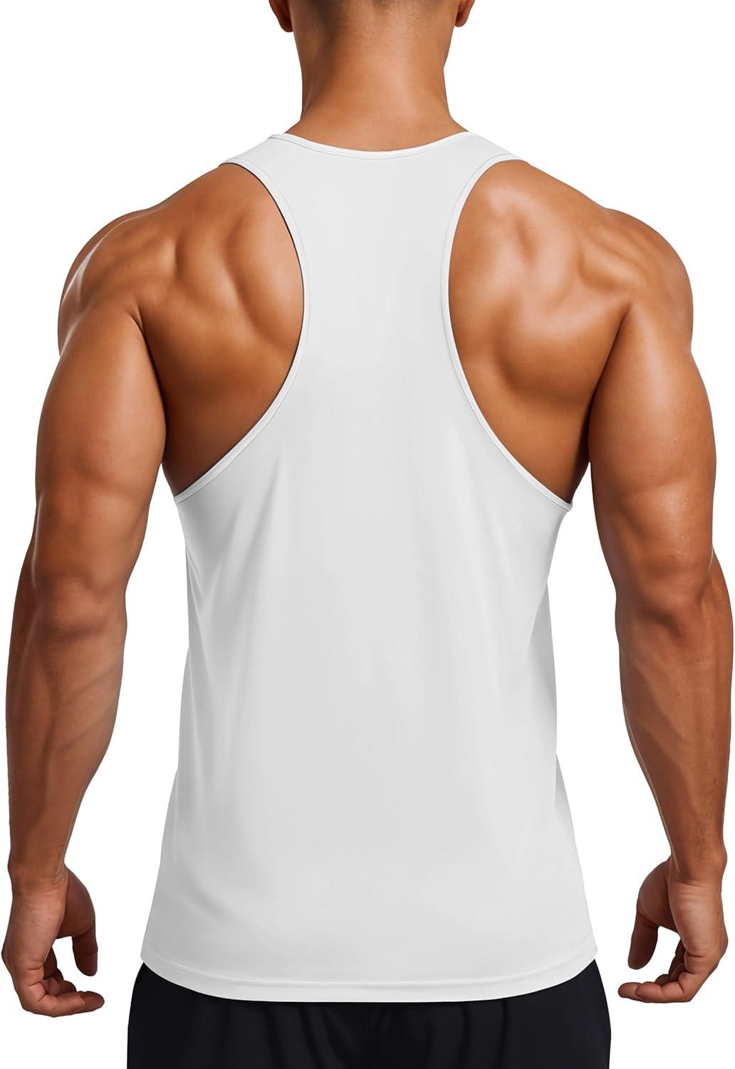 MAGCOMSEN Mens UPF 80+ Tank Tops Y Back Quick Dry Gym Workout Running Athletic Fitness Muscle Sleeveless Summer Shirts(White)