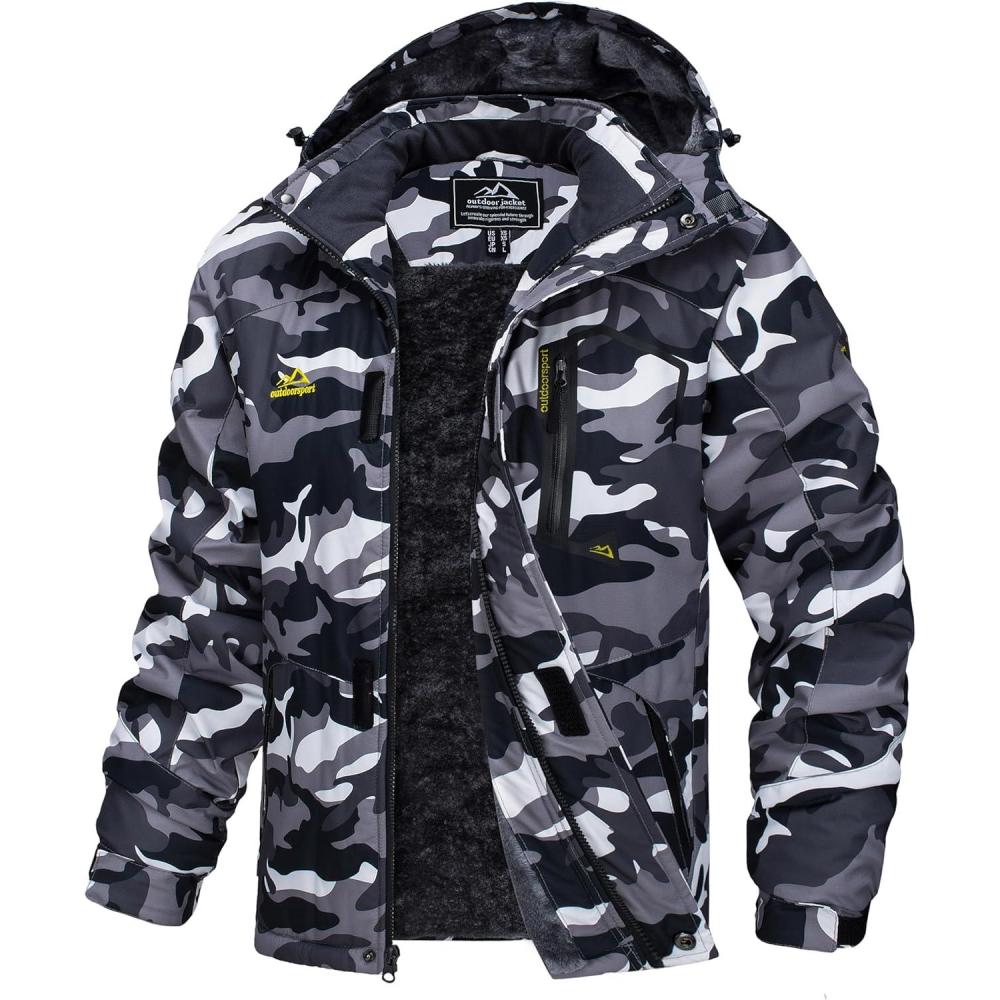 MAGCOMSEN Men’s Winter Coats Water Resistant Ski Snow Jacket Warm Fleece Jacket Parka Raincoats With Hood Multi-Pockets(Black Camo)