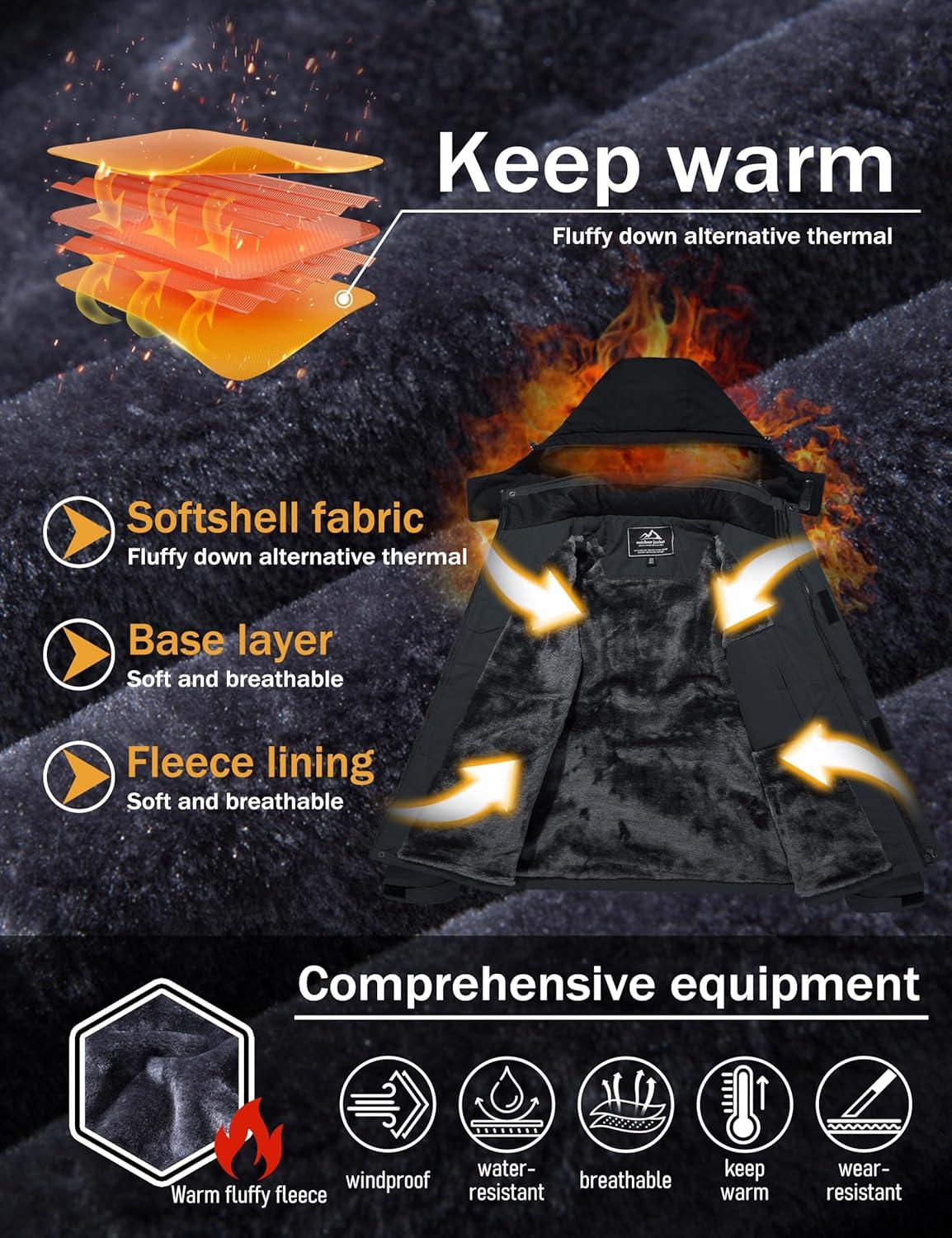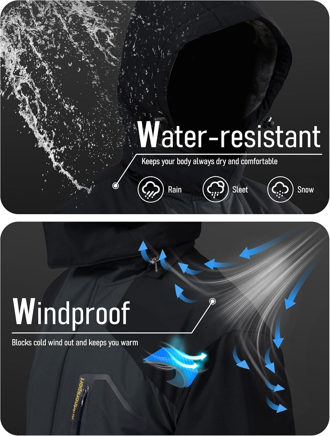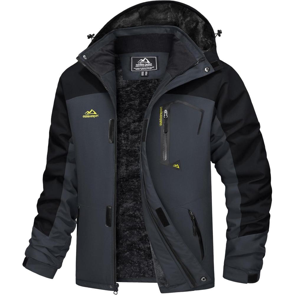 MAGCOMSEN Men’s Winter Coats Water Resistant Ski Snow Jacket Warm Fleece Jacket Parka Raincoats With Hood Multi-Pockets(Black Grey)