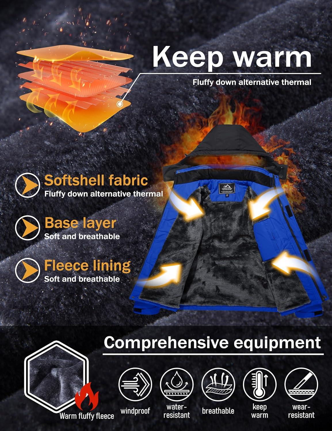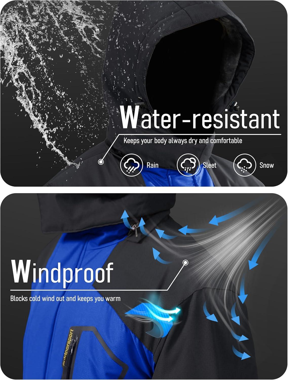 MAGCOMSEN Men’s Winter Coats Water Resistant Ski Snow Jacket Warm Fleece Jacket Parka Raincoats With Hood Multi-Pockets(Blue)
