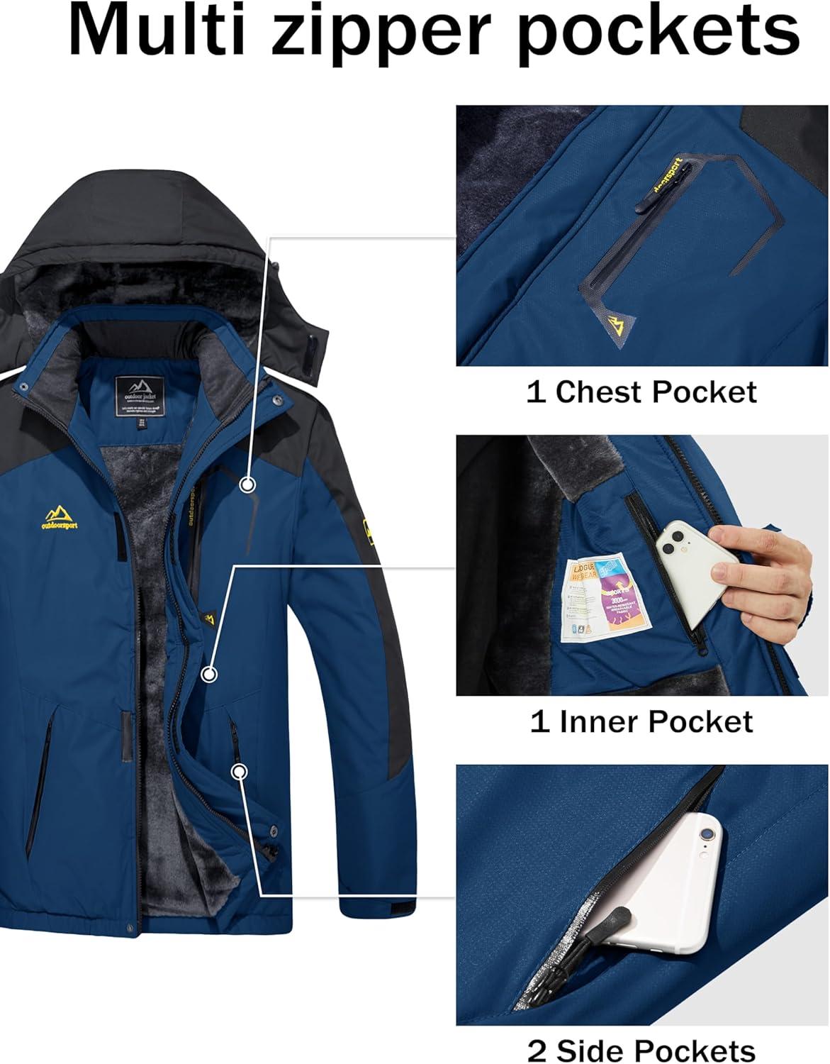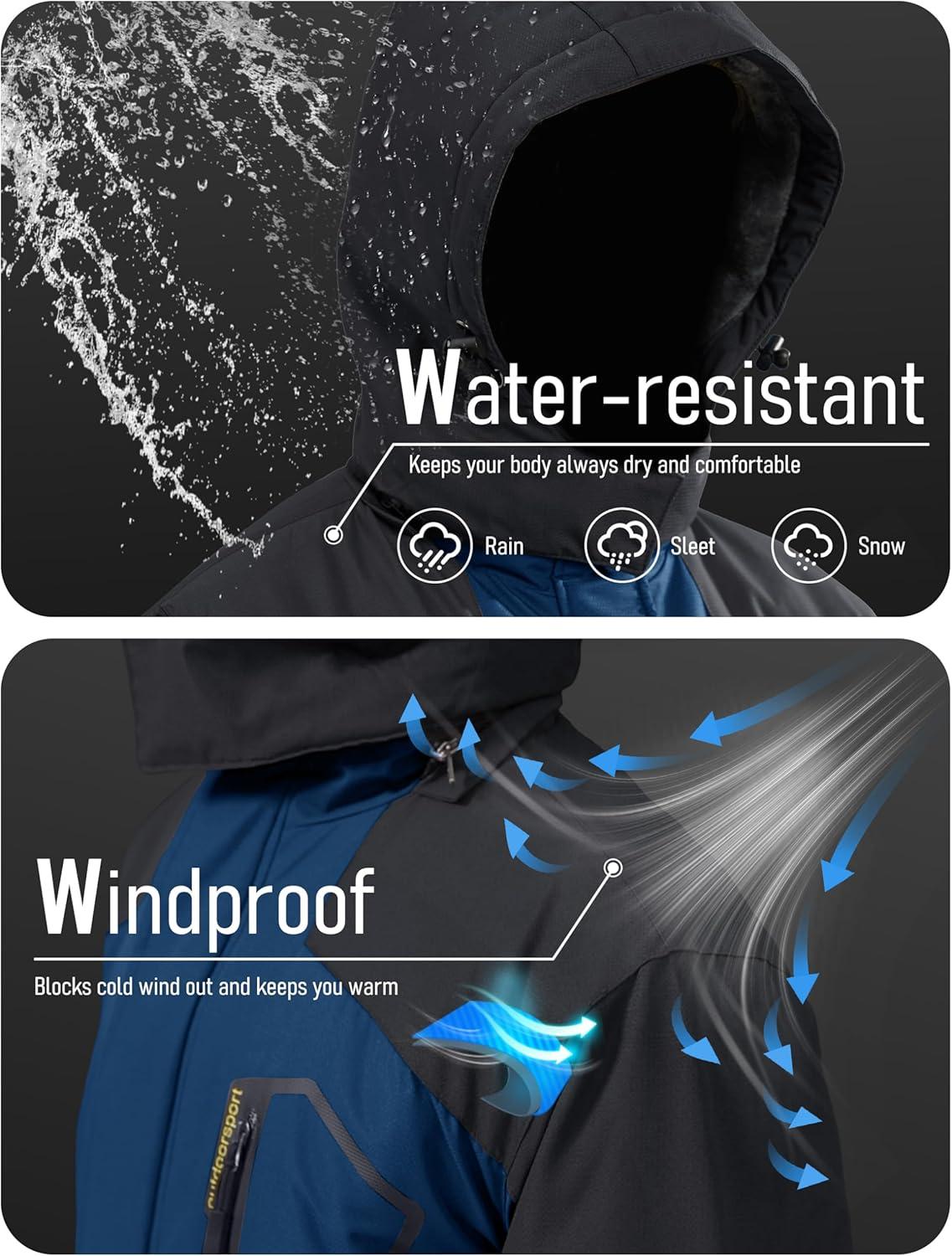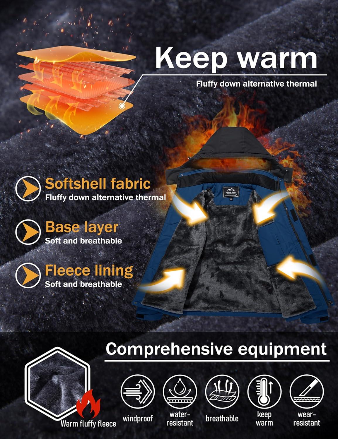 MAGCOMSEN Men’s Winter Coats Water Resistant Ski Snow Jacket Warm Fleece Jacket Parka Raincoats With Hood Multi-Pockets(Denim Blue)
