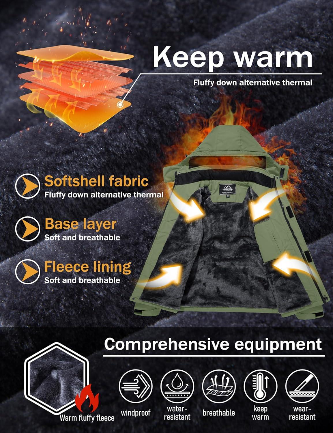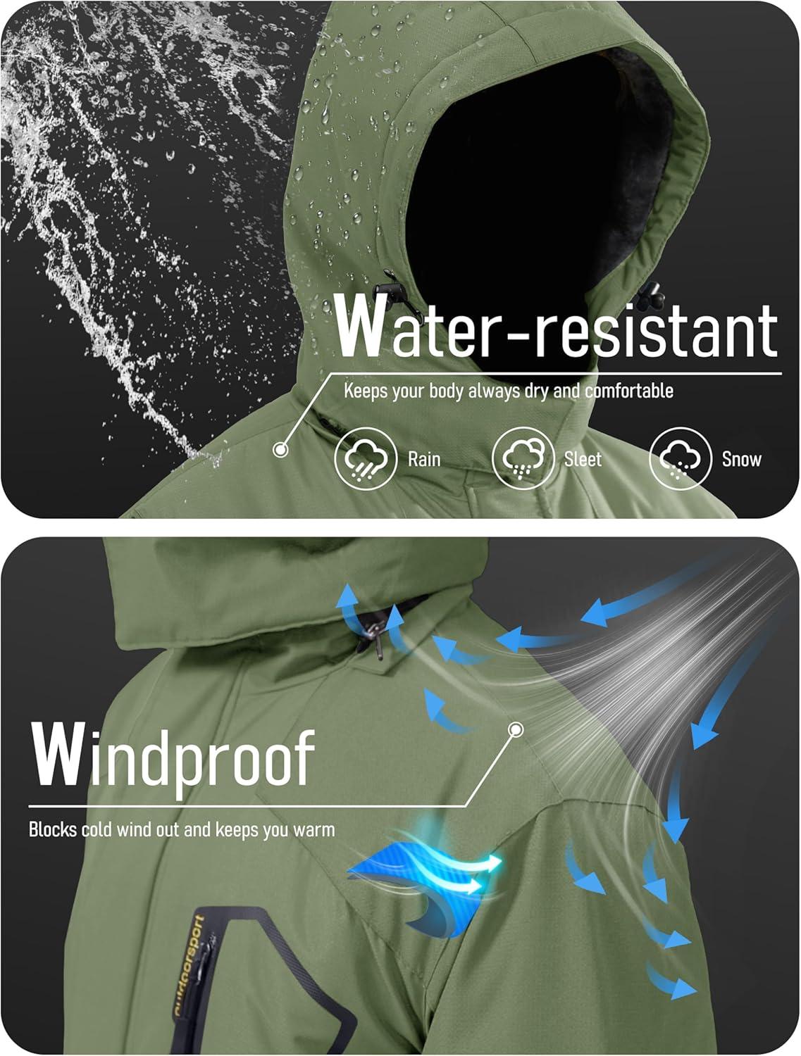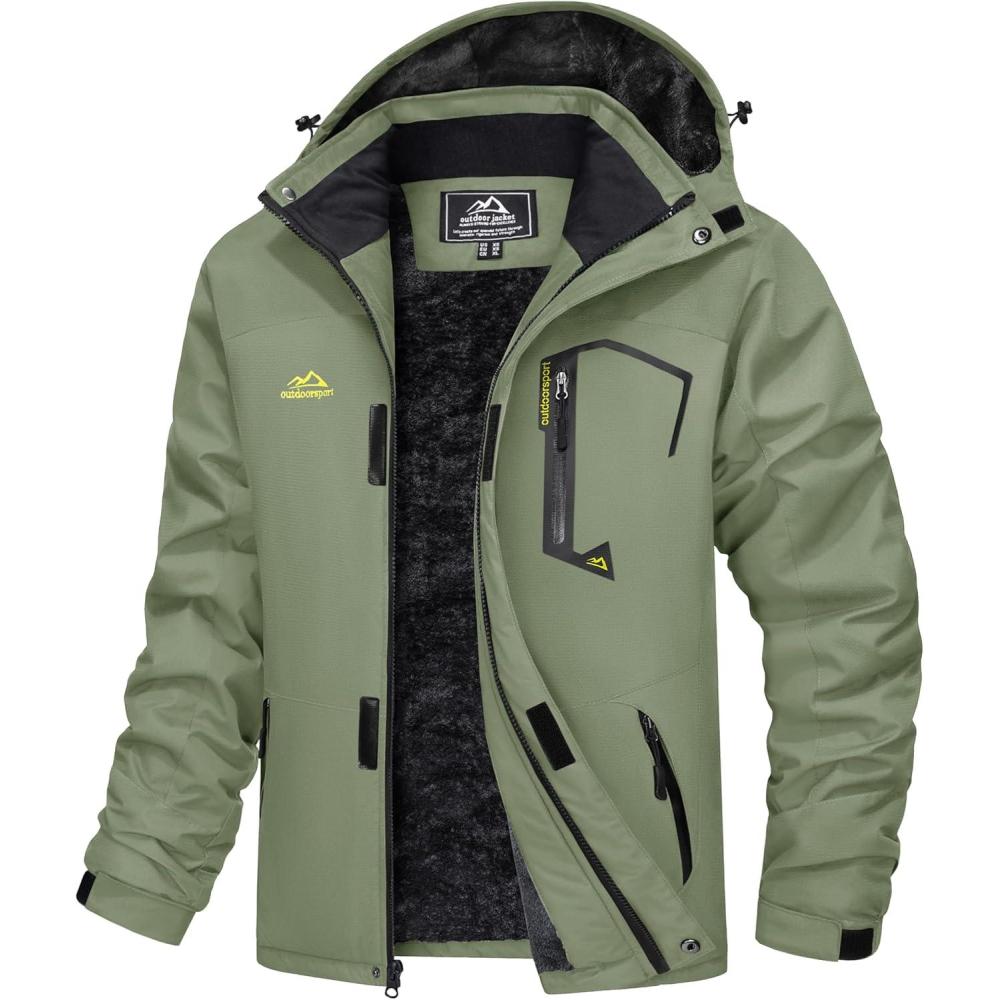 MAGCOMSEN Men’s Winter Coats Water Resistant Ski Snow Jacket Warm Fleece Jacket Parka Raincoats With Hood Multi-Pockets(Grey Green)