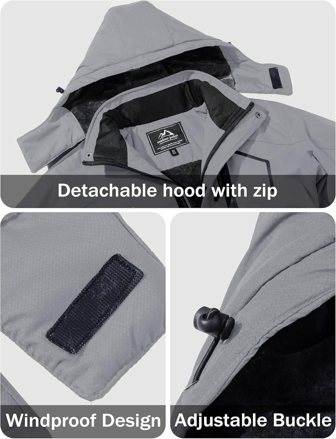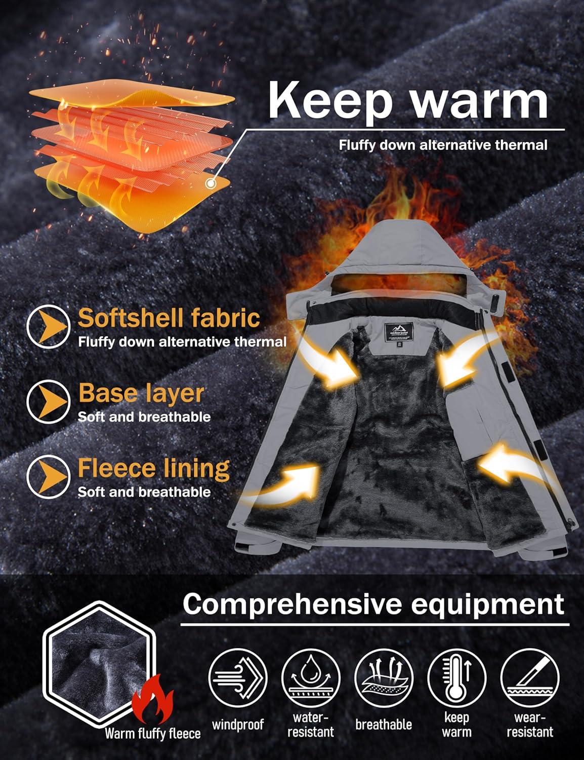 MAGCOMSEN Men’s Winter Coats Water Resistant Ski Snow Jacket Warm Fleece Jacket Parka Raincoats With Hood Multi-Pockets(Light Grey)