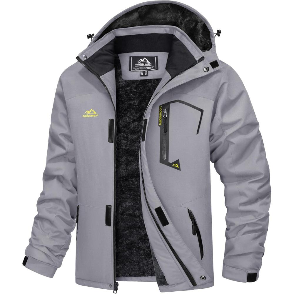 imageMAGCOMSEN Mens Winter Coats Water Resistant Ski Snow Jacket Warm Fleece Jacket Parka Raincoats With Hood MultiPocketsGrey Yellow
