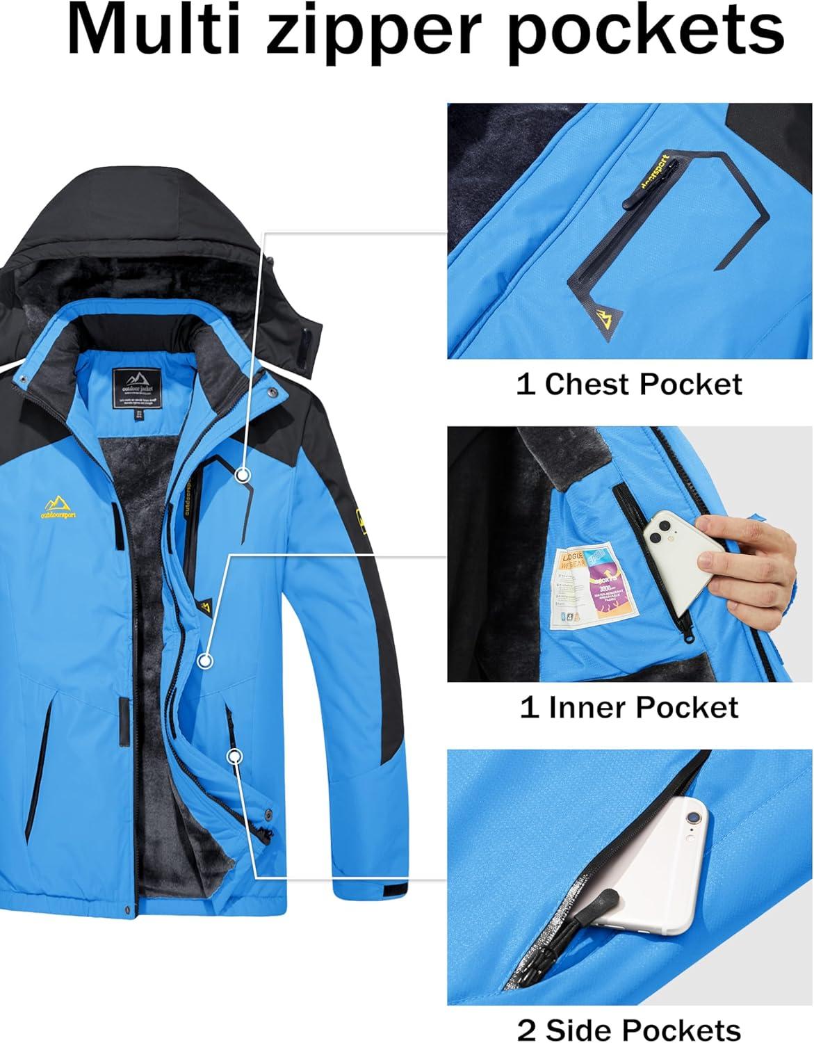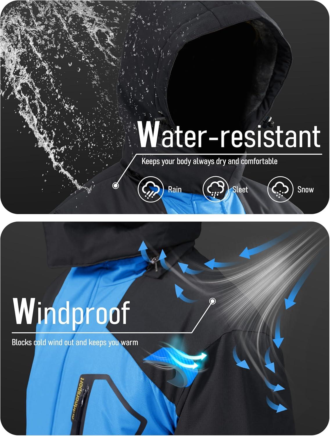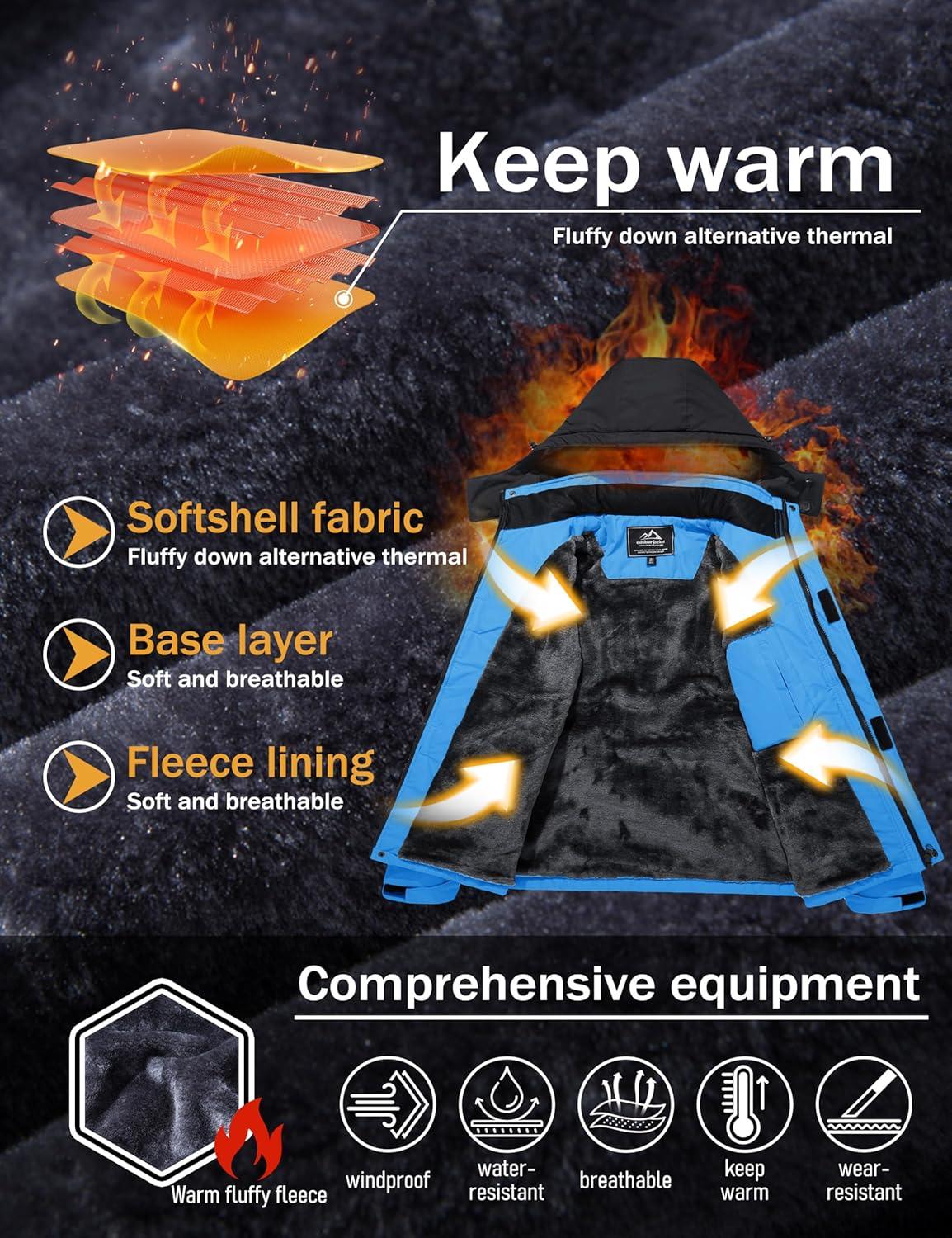 MAGCOMSEN Men’s Winter Coats Water Resistant Ski Snow Jacket Warm Fleece Jacket Parka Raincoats With Hood Multi-Pockets(Sky Blue)