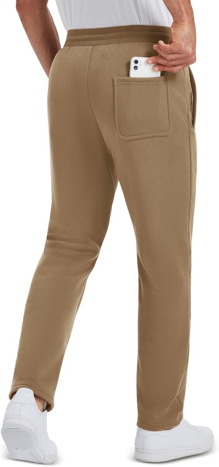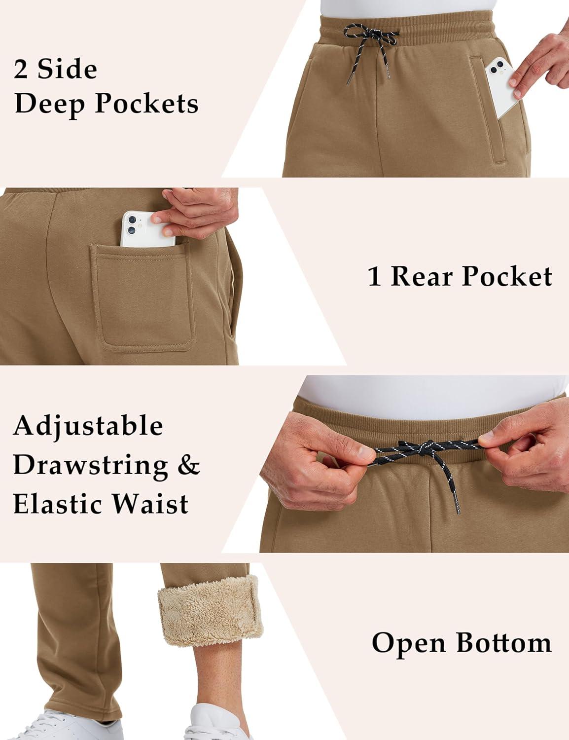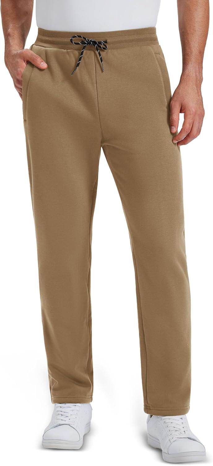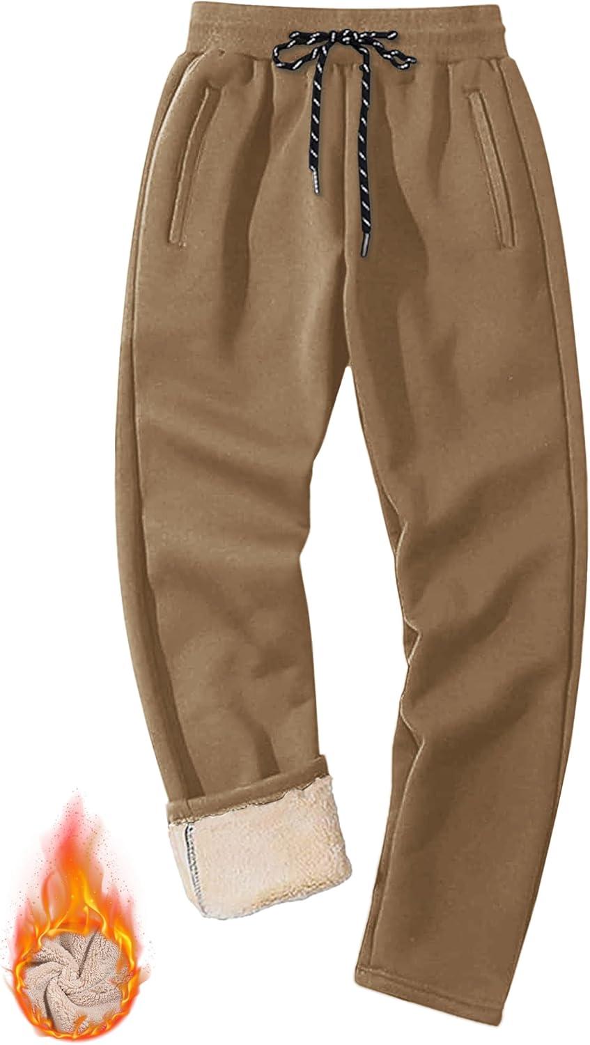 MAGCOMSEN Men’s Winter Fleece Pants Sherpa Lined Sweatpants Thermal Warm Thicken Pants Active Joggers with 3 Pockets(Brown)