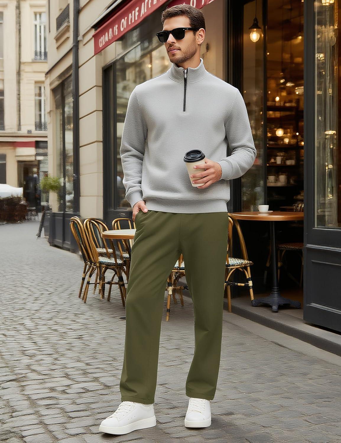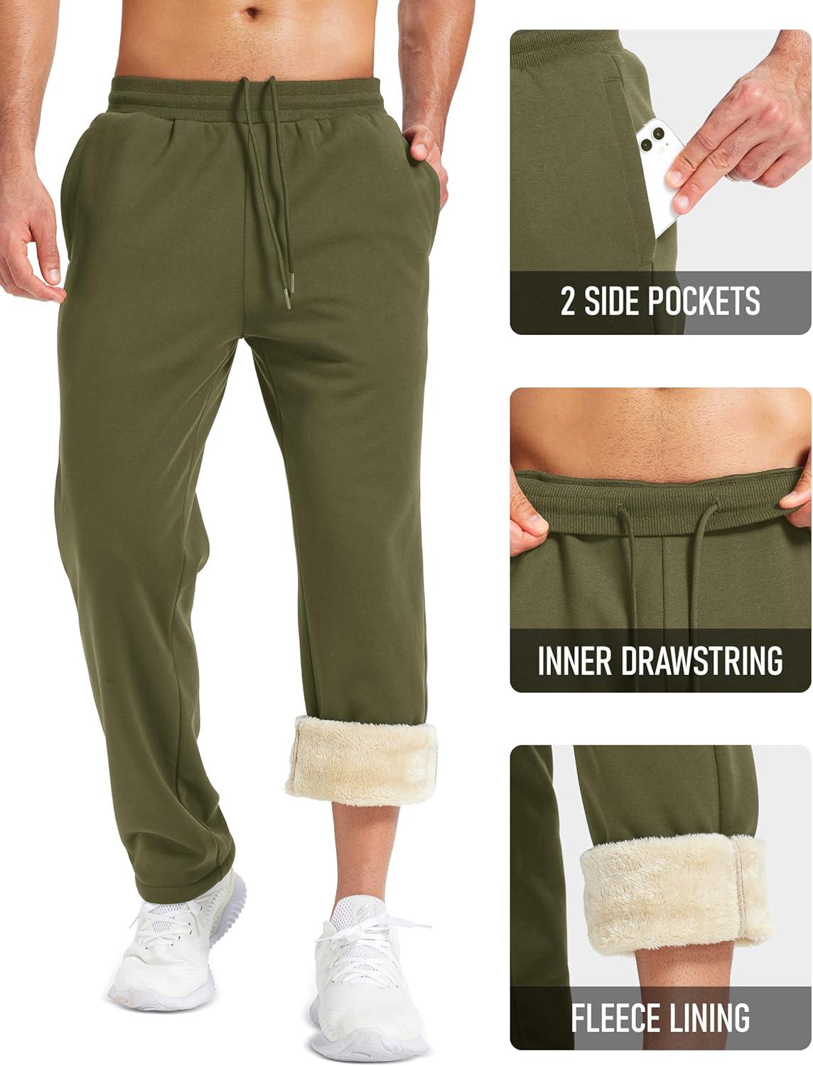 MAGCOMSEN Men’s Winter Fleece Pants Sherpa Lined Sweatpants with Pockets Drawstring Lounge Running Athletic Warm Pants(Army Green)