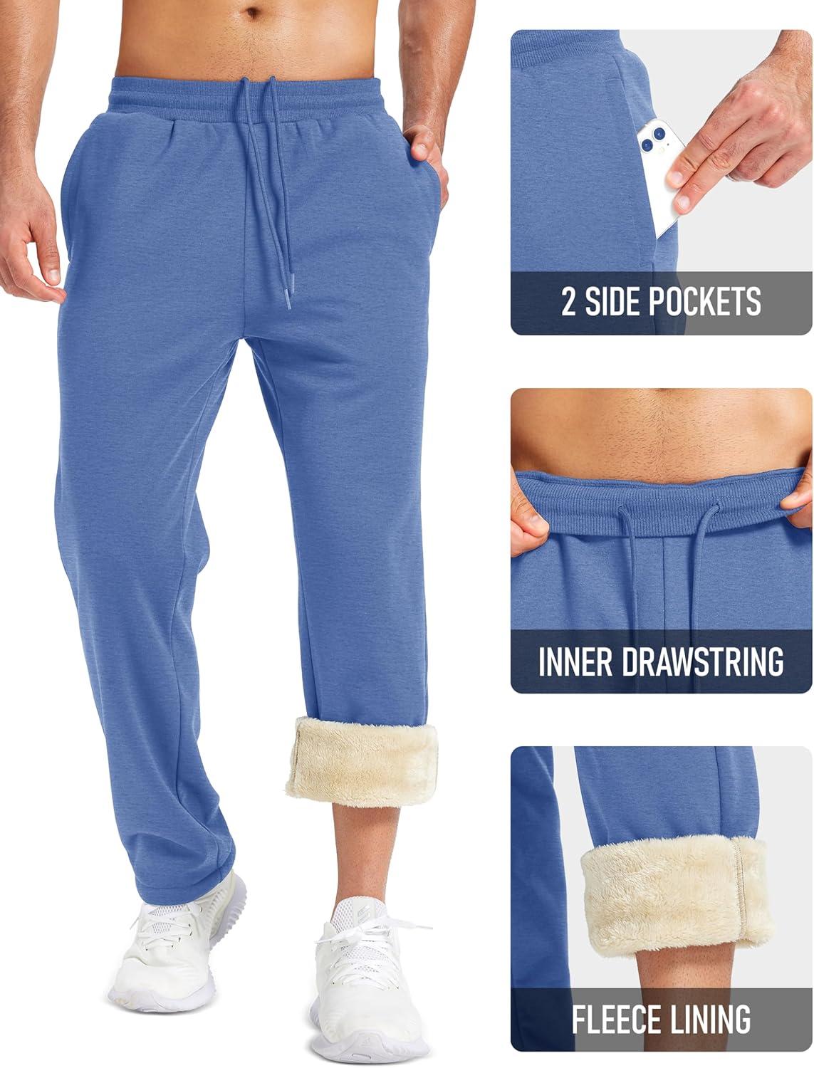 MAGCOMSEN Men’s Winter Fleece Pants Sherpa Lined Sweatpants with Pockets Drawstring Lounge Running Athletic Warm Pants(Grey Blue)