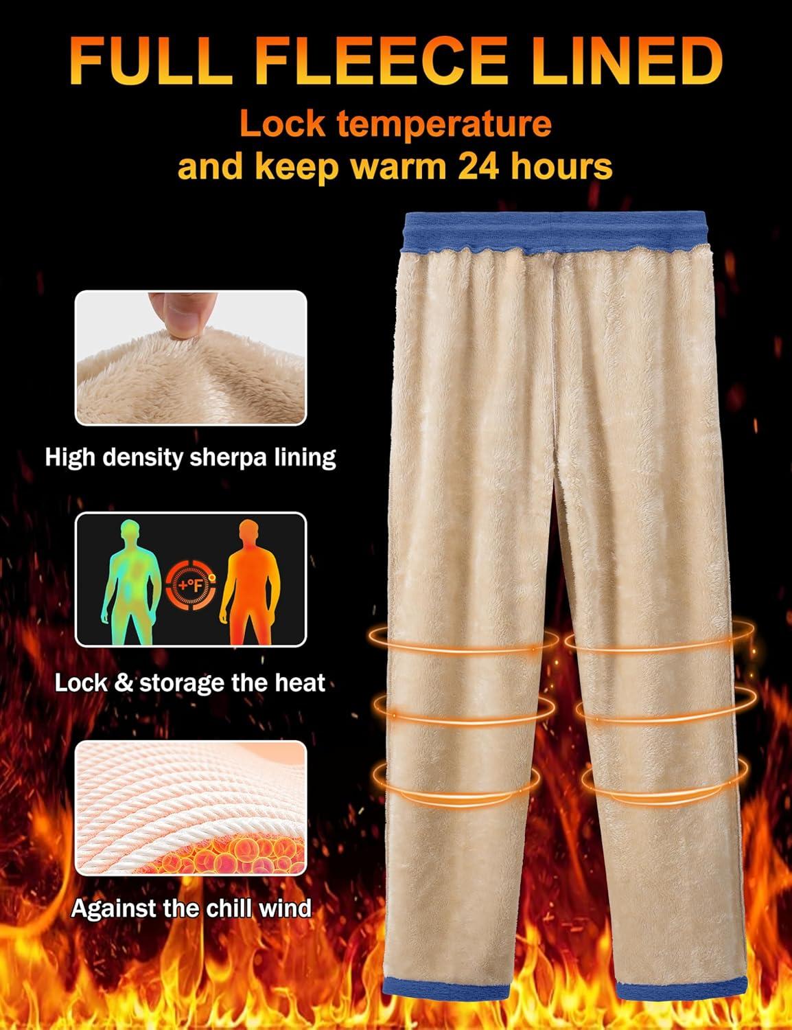 MAGCOMSEN Men’s Winter Fleece Pants Sherpa Lined Sweatpants with Pockets Drawstring Lounge Running Athletic Warm Pants(Khaki)