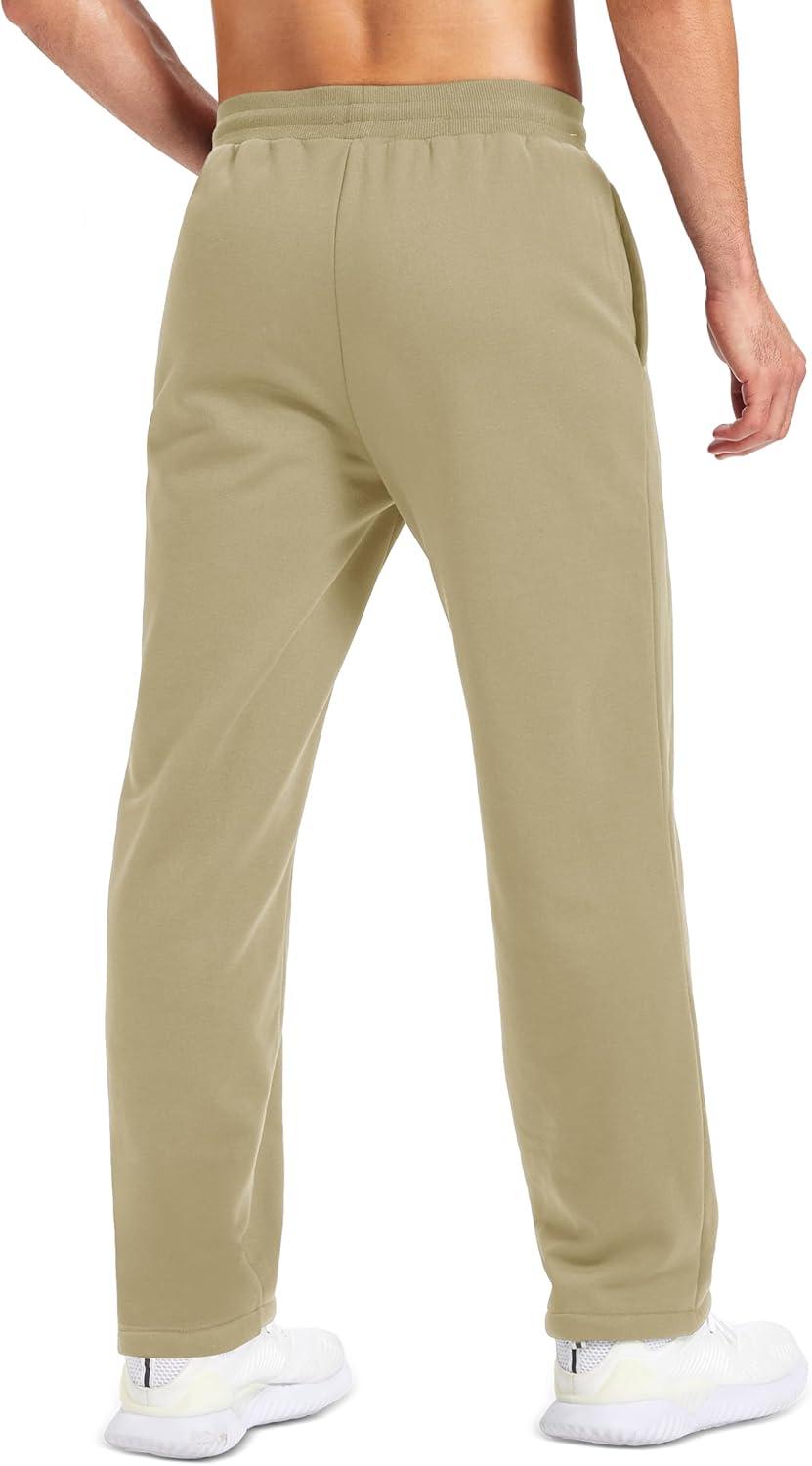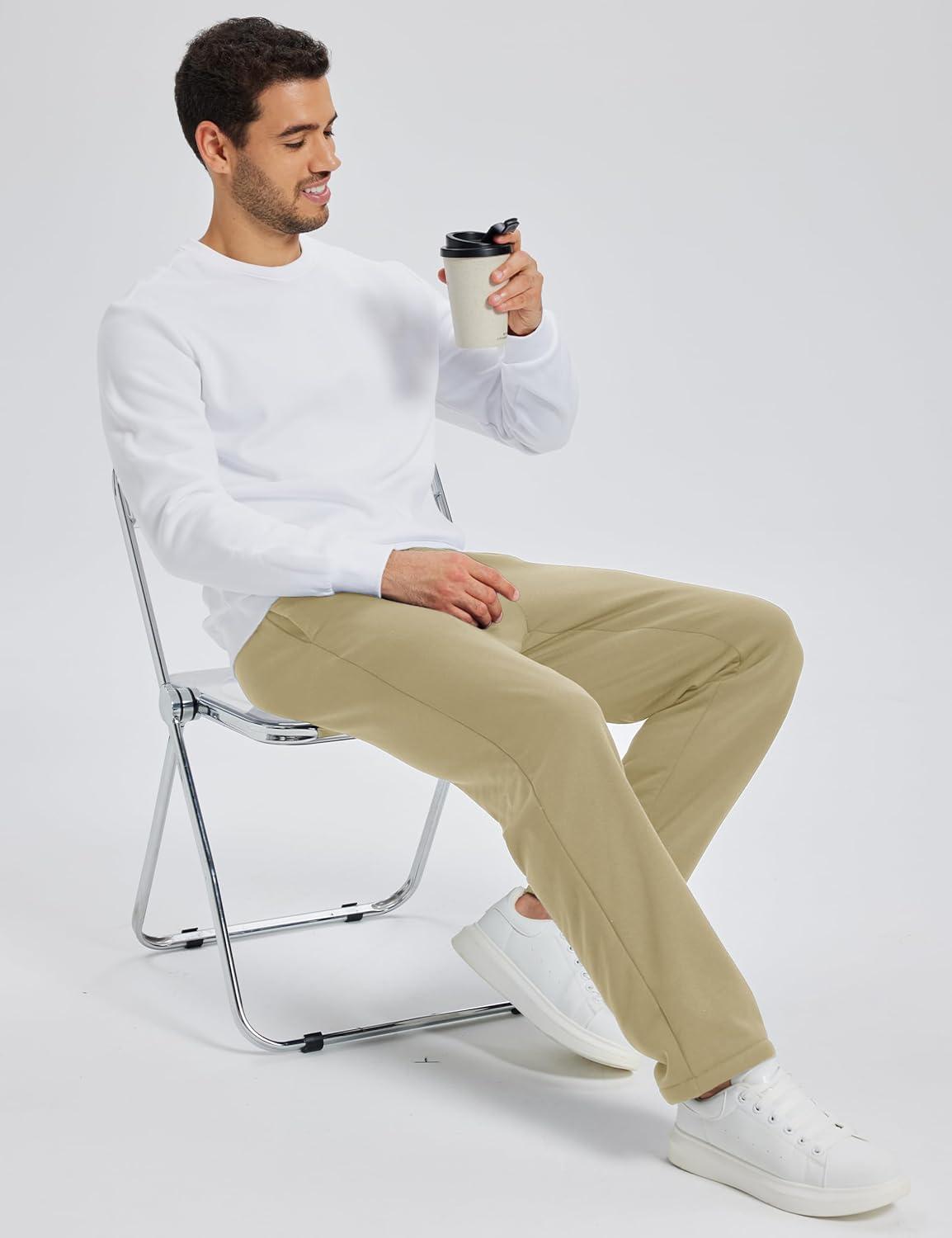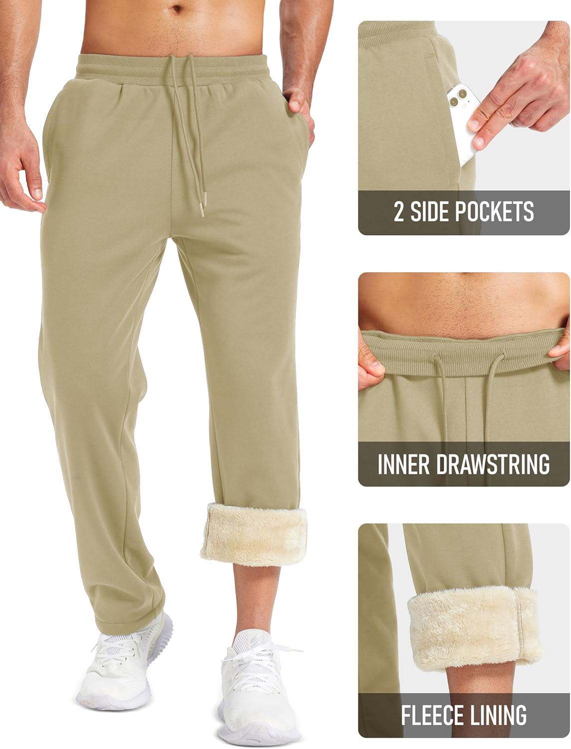 MAGCOMSEN Men’s Winter Fleece Pants Sherpa Lined Sweatpants with Pockets Drawstring Lounge Running Athletic Warm Pants(Khaki)