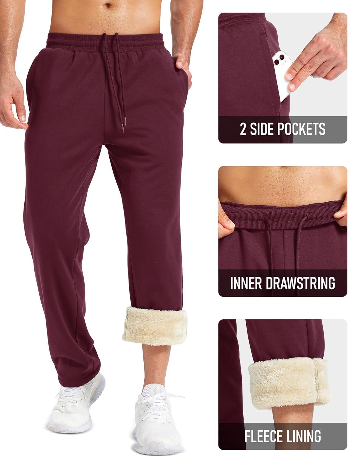 MAGCOMSEN Men’s Winter Fleece Pants Sherpa Lined Sweatpants with Pockets Drawstring Lounge Running Athletic Warm Pants(Wine Red)
