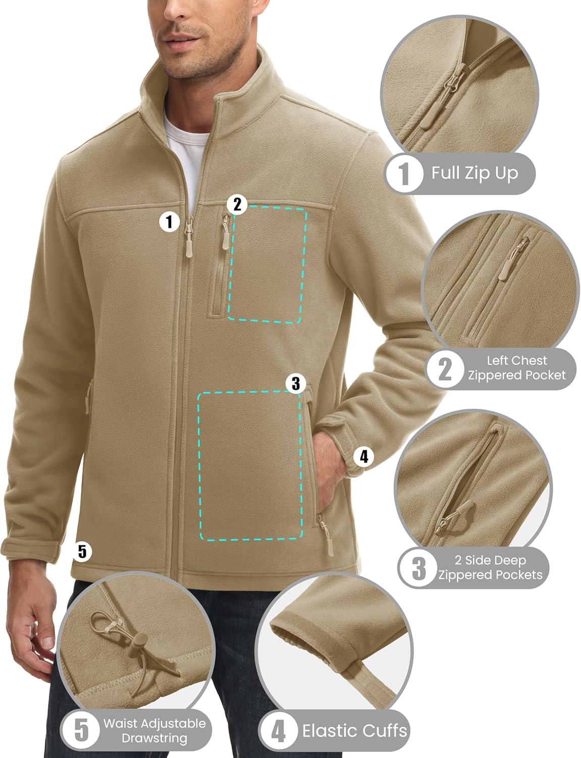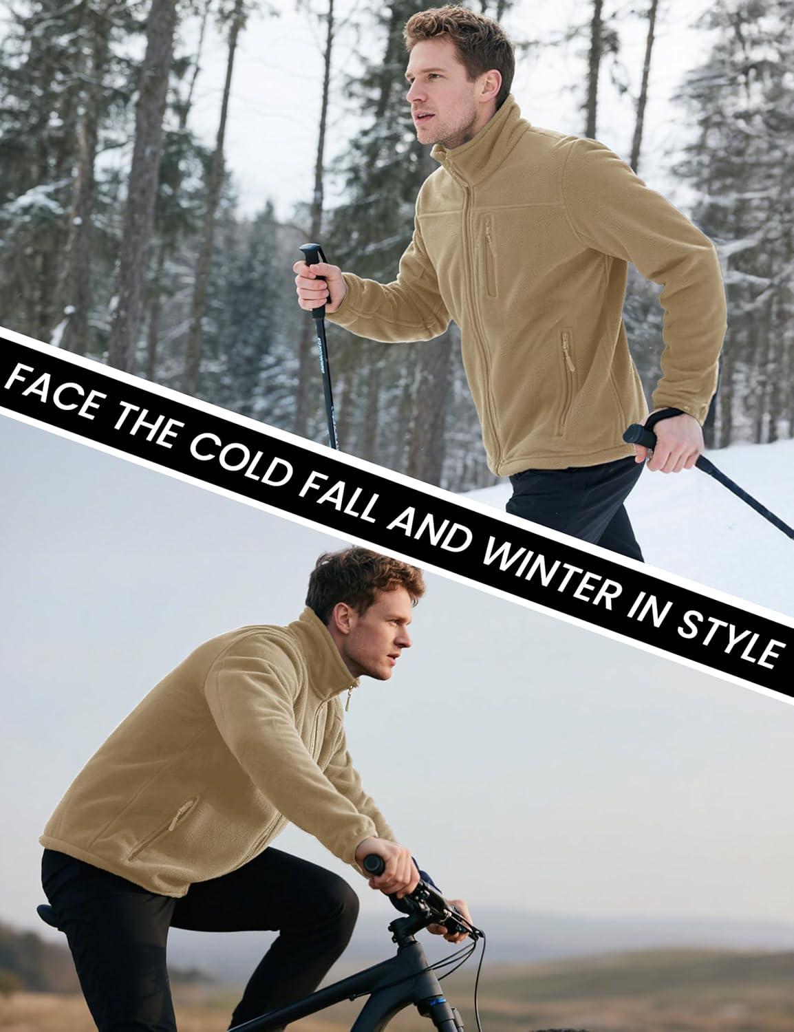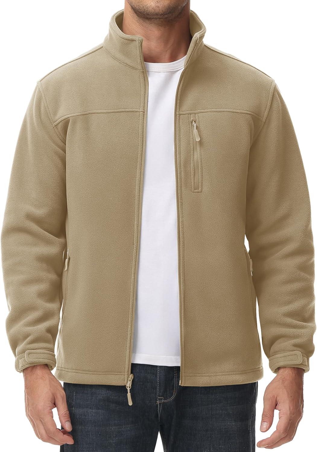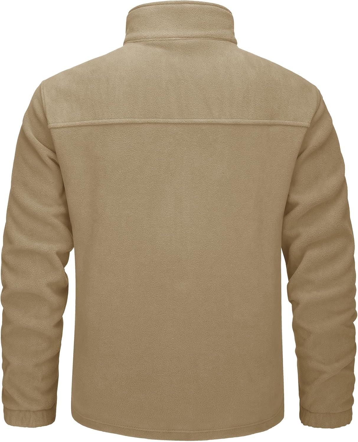 MAGCOMSEN Men’s Winter Zip Up Polar Fleece Jacket Athletic Tactical Hiking Outdoor Jackets with 3 Pockets(Khaki)