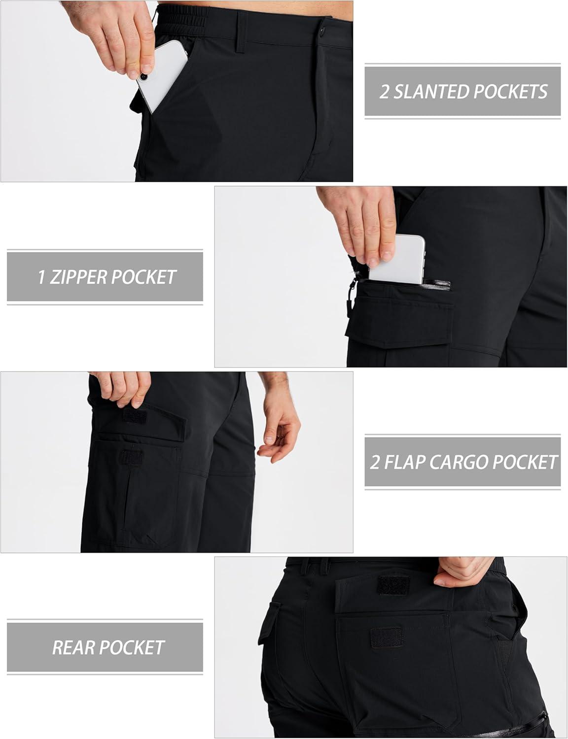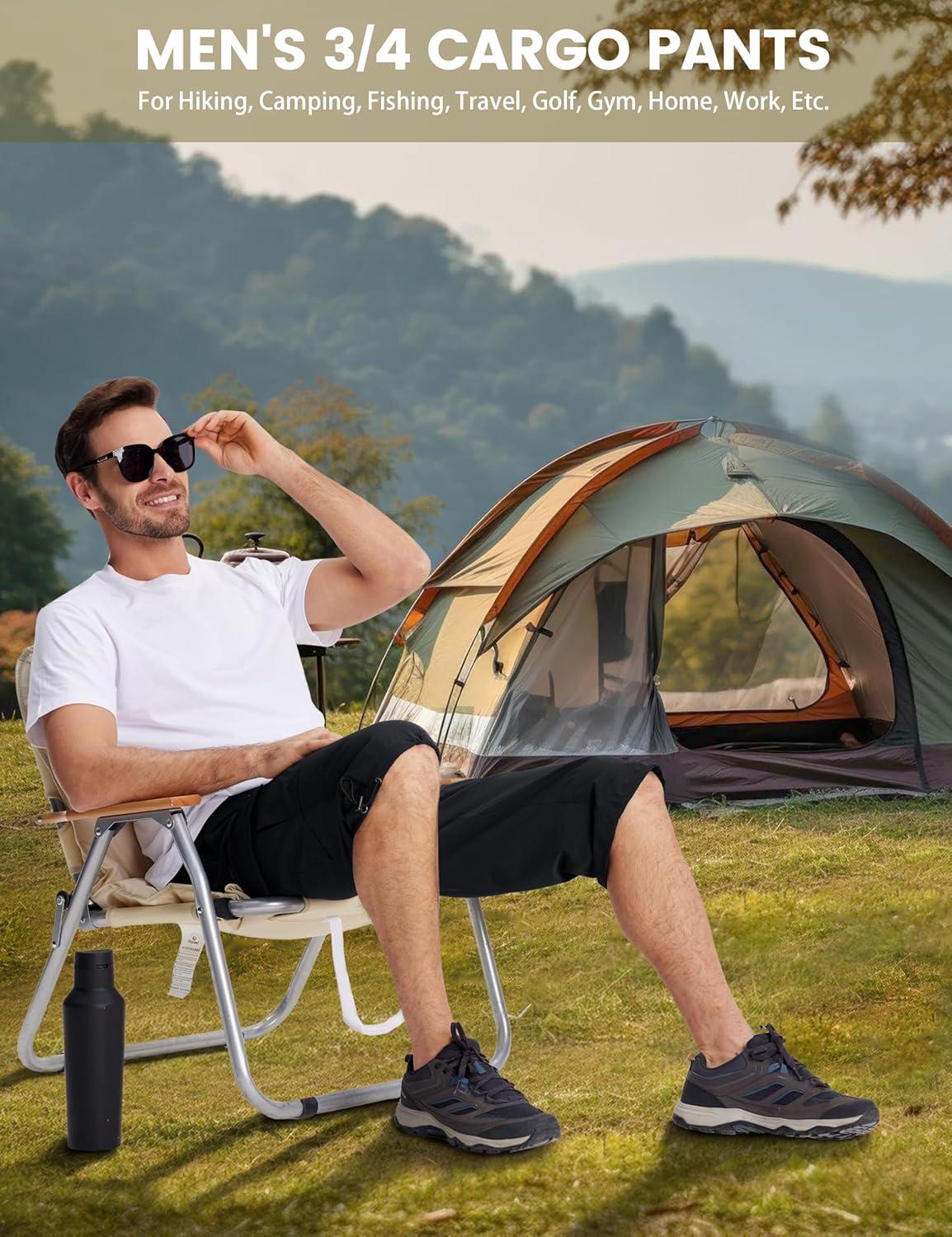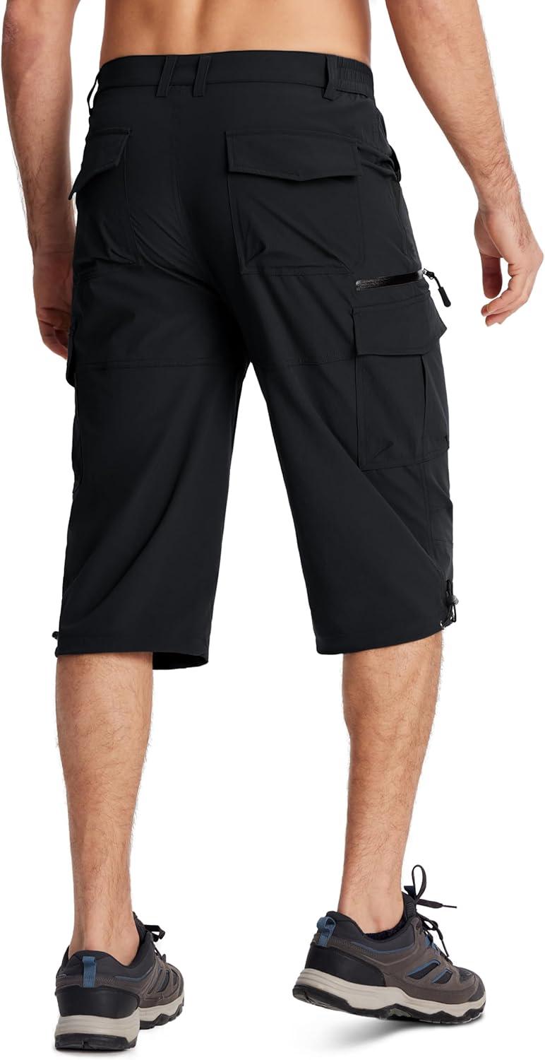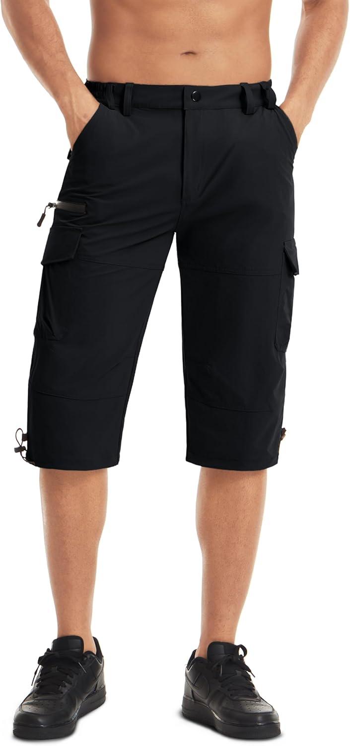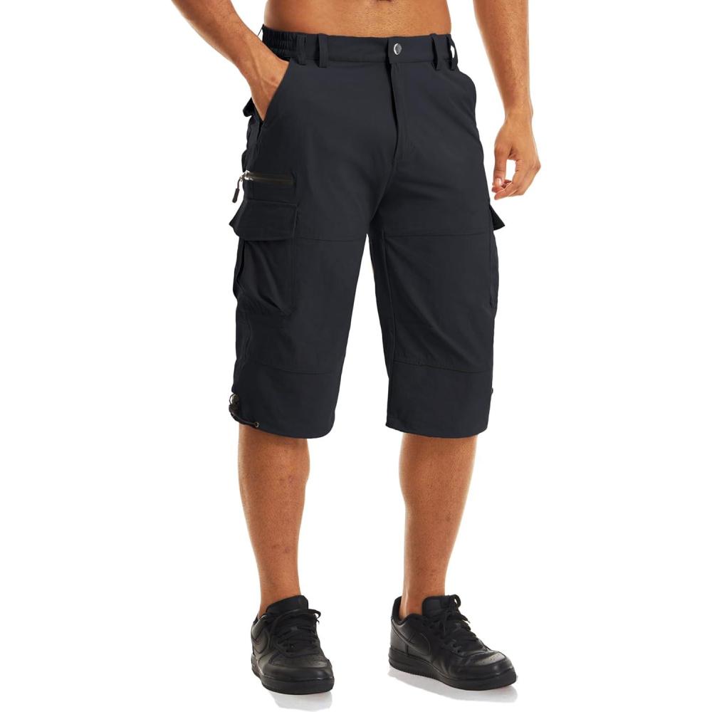 MAGCOMSEN Men’s Workout Shorts 7 Pockets Quick Dry 3/4 Capri Pants Zipper Pockets Hiking Athletic Shorts(Black)