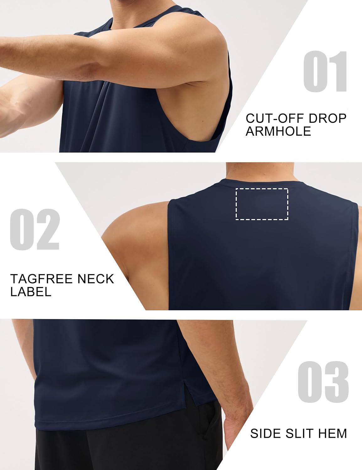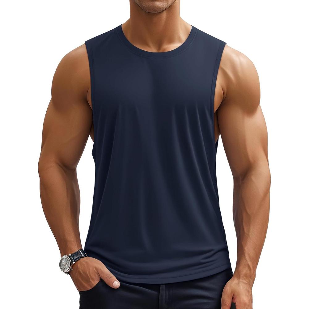 MAGCOMSEN Men’s Workout Tank Tops Quick Dry Lightweight Sleeveless Shirts Gym Bodybuilding Muscle Tee Shirt(Navy)