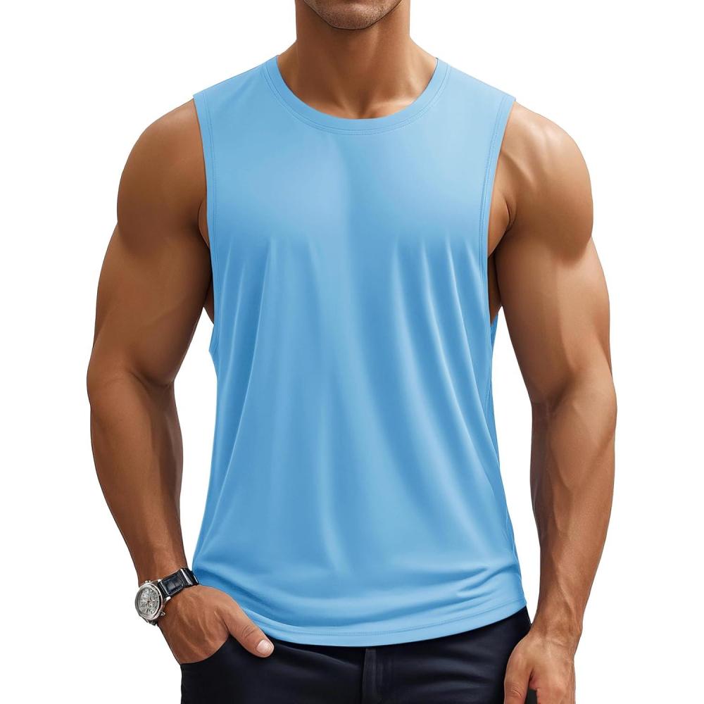 MAGCOMSEN Men’s Workout Tank Tops Quick Dry Lightweight Sleeveless Shirts Gym Bodybuilding Muscle Tee Shirt(Sky Blue)