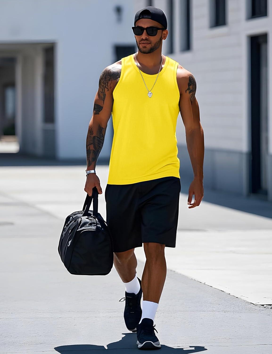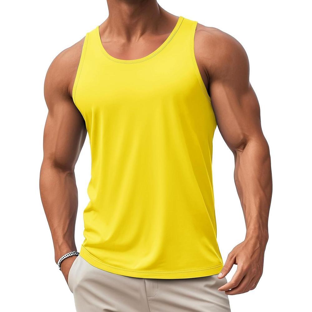 MAGCOMSEN Mens Workout Tank Tops Undershirt Cotton Muscle Athletic Sleeveless Shirts for Gym(#07-yellow)