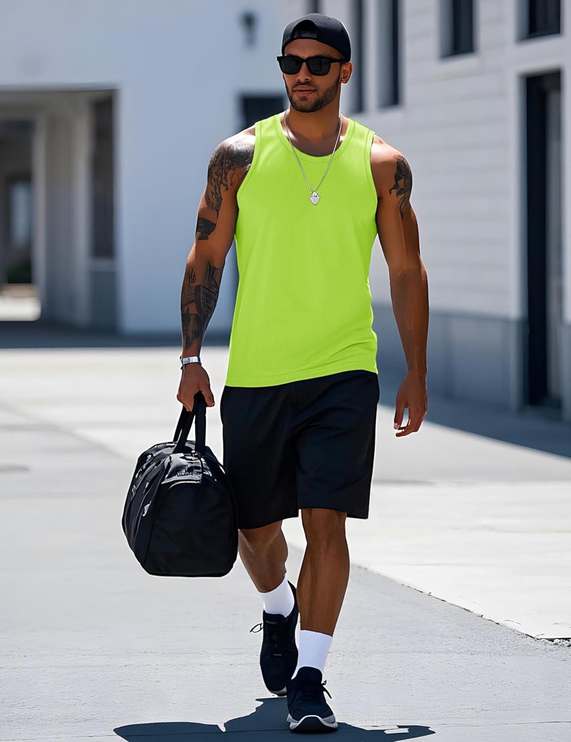 MAGCOMSEN Mens Workout Tank Tops Undershirt Cotton Muscle Athletic Sleeveless Shirts for Gym(#11-fluorescent Green)