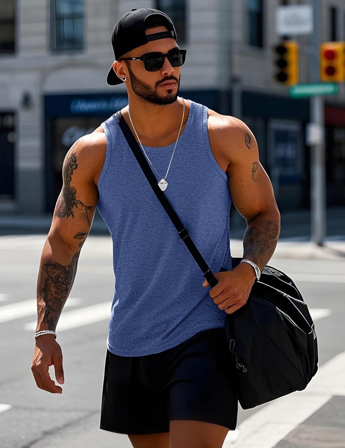 MAGCOMSEN Mens Workout Tank Tops Undershirt Cotton Muscle Athletic Sleeveless Shirts for Gym(#23-color Blue)