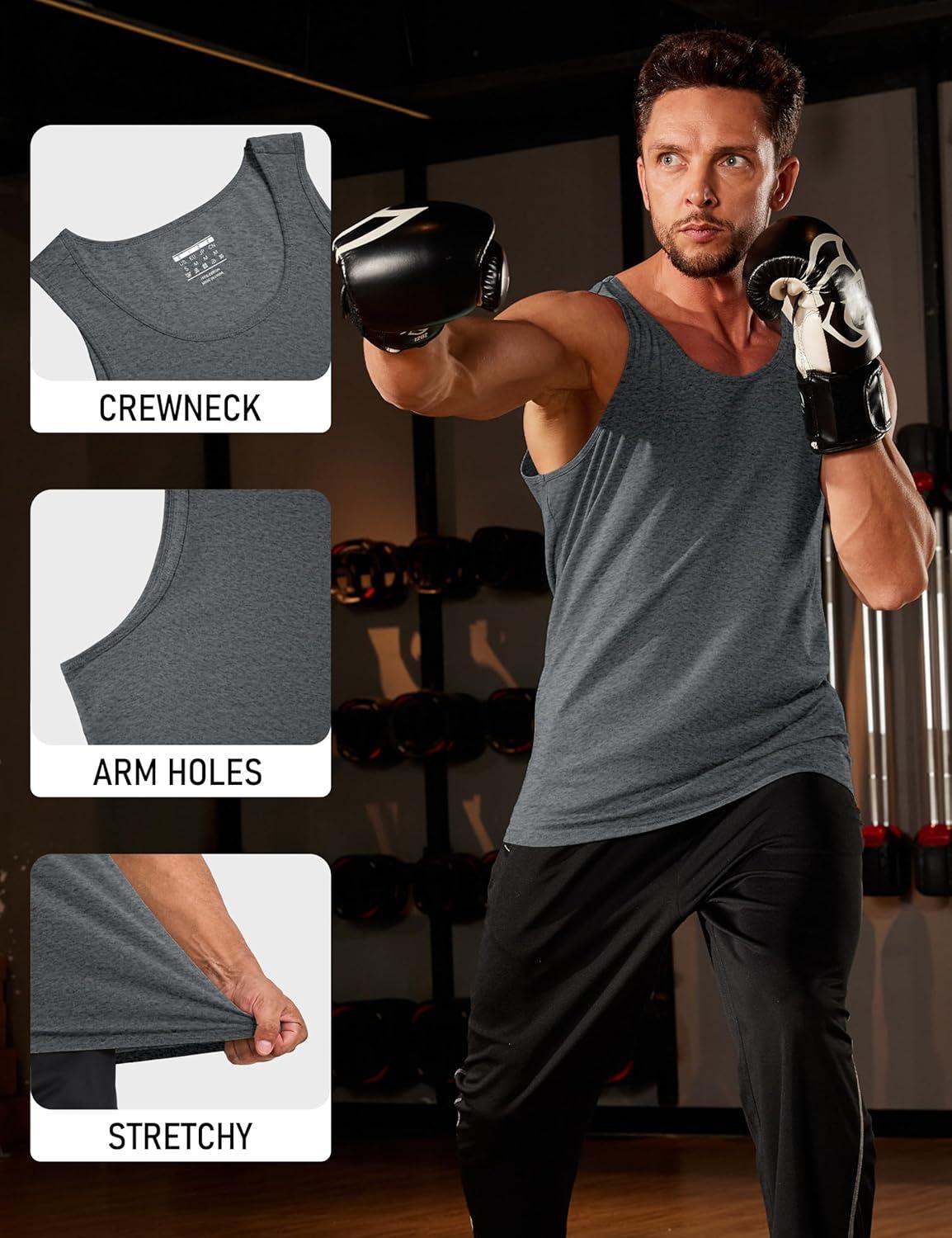 MAGCOMSEN Mens Workout Tank Tops Undershirt Cotton Muscle Athletic Sleeveless Shirts for Gym(#17-dark Grey)
