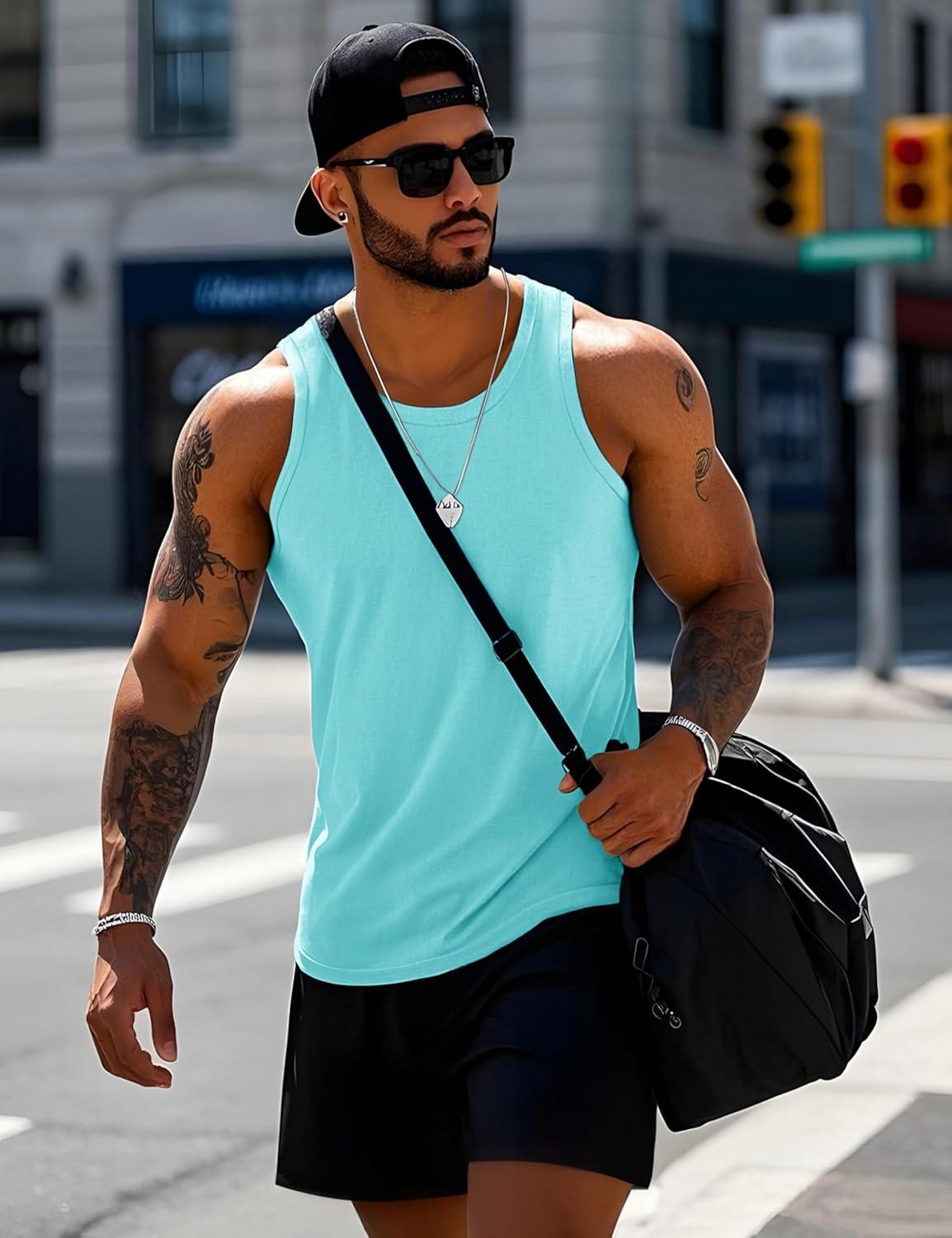 MAGCOMSEN Mens Workout Tank Tops Undershirt Cotton Muscle Athletic Sleeveless Shirts for Gym(#16-waterfall Blue)