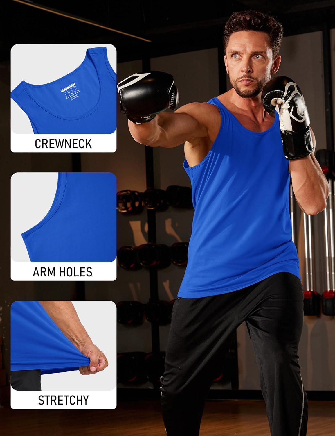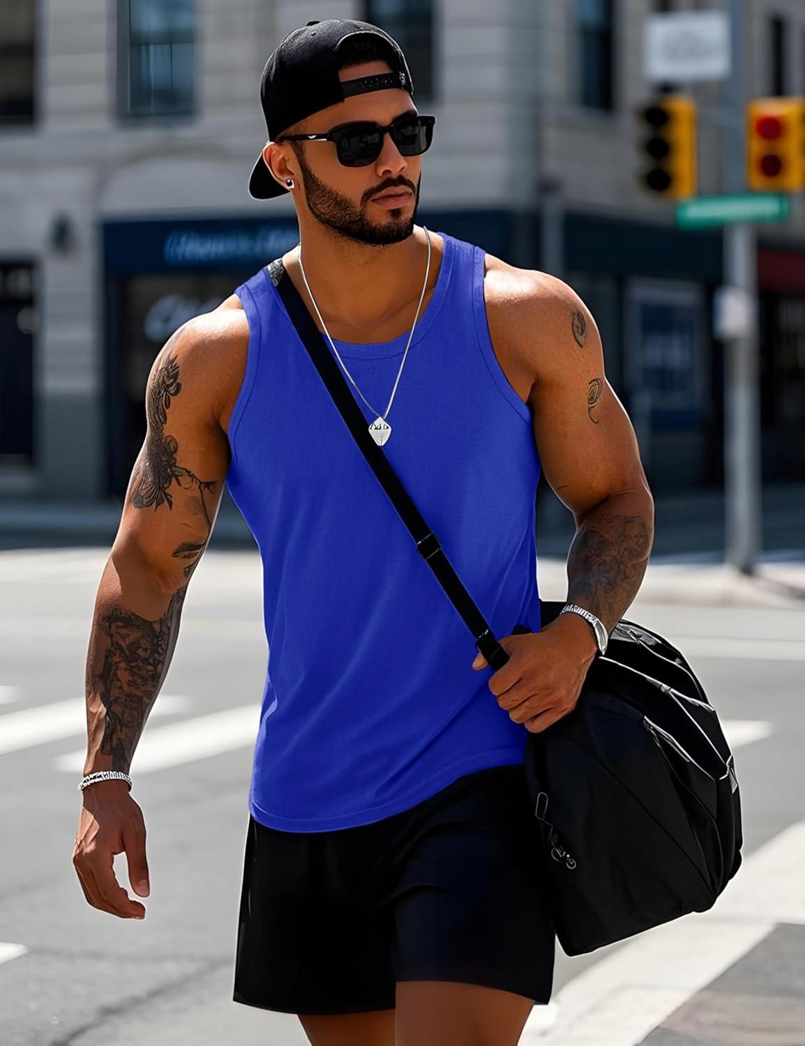 MAGCOMSEN Mens Workout Tank Tops Undershirt Cotton Muscle Athletic Sleeveless Shirts for Gym(#23-color Blue)