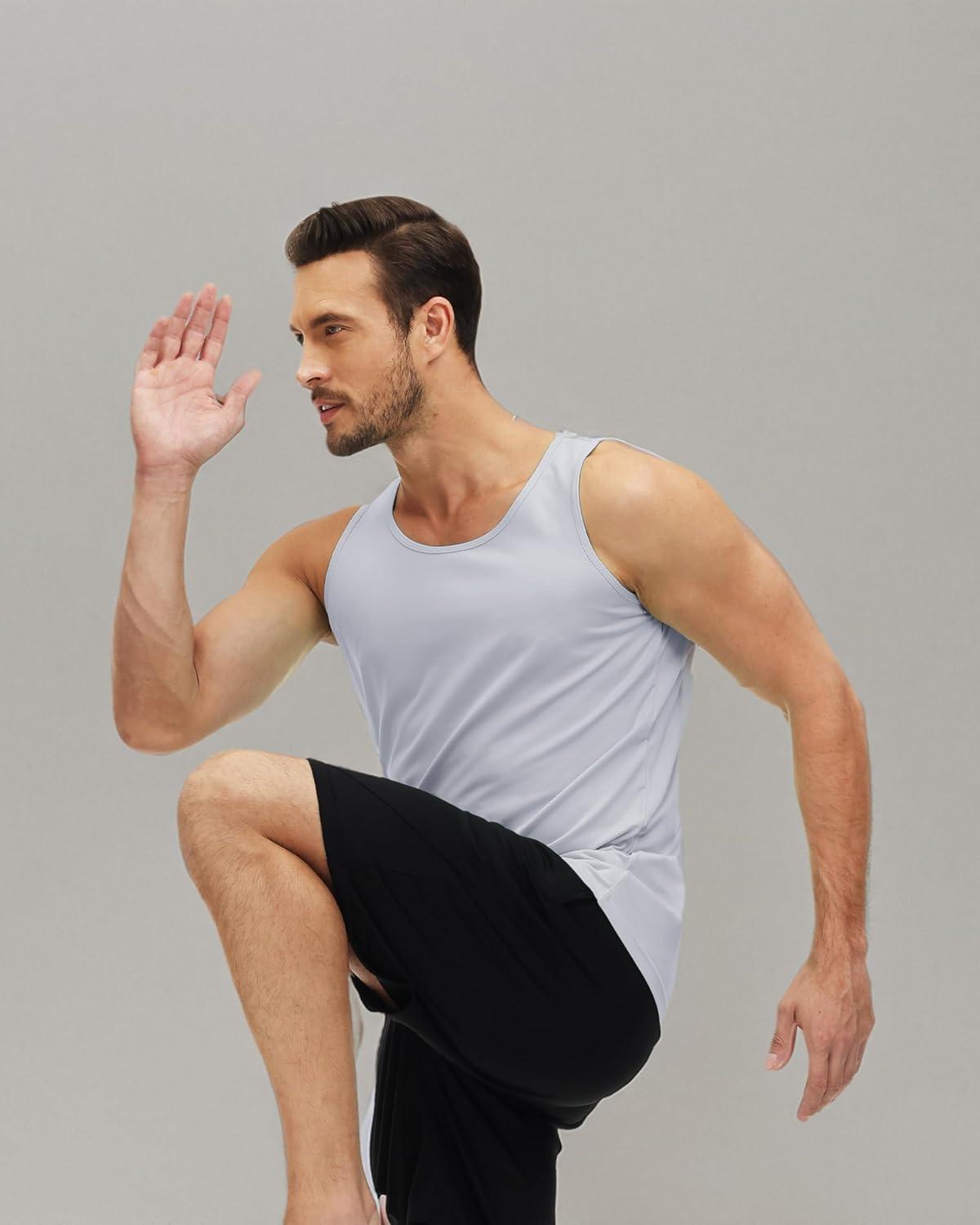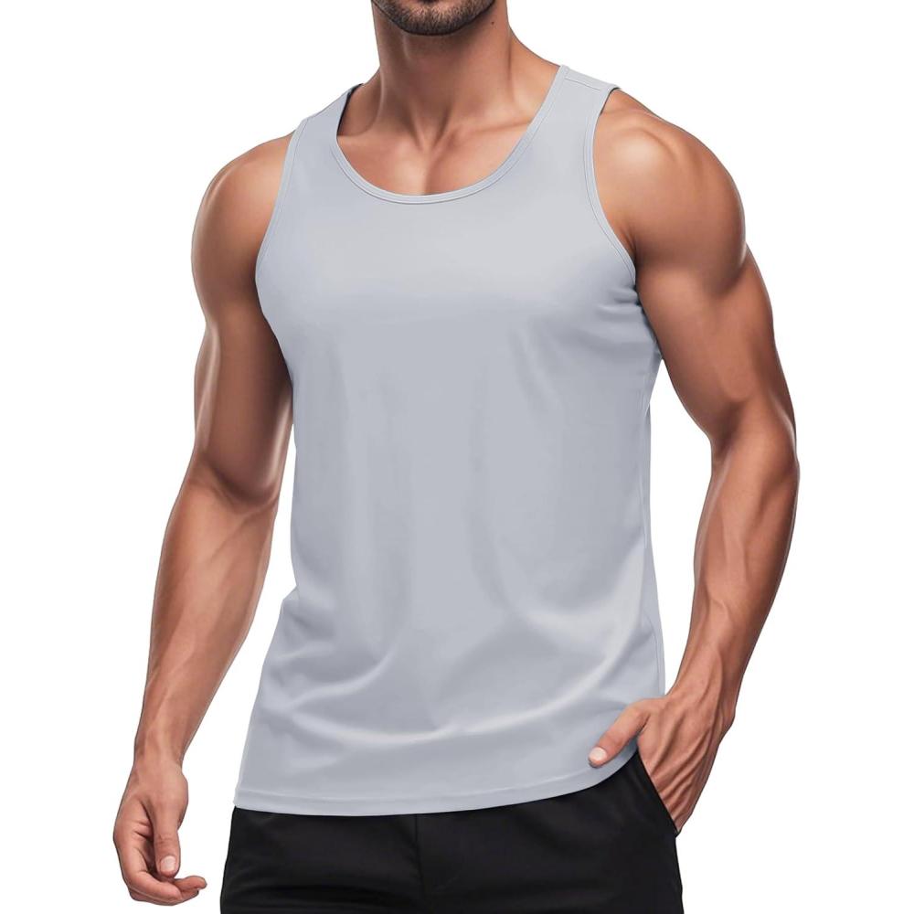 MAGCOMSEN Mens Workout Tank Tops Undershirt Cotton Muscle Athletic Sleeveless Shirts for Gym(Light Grey)