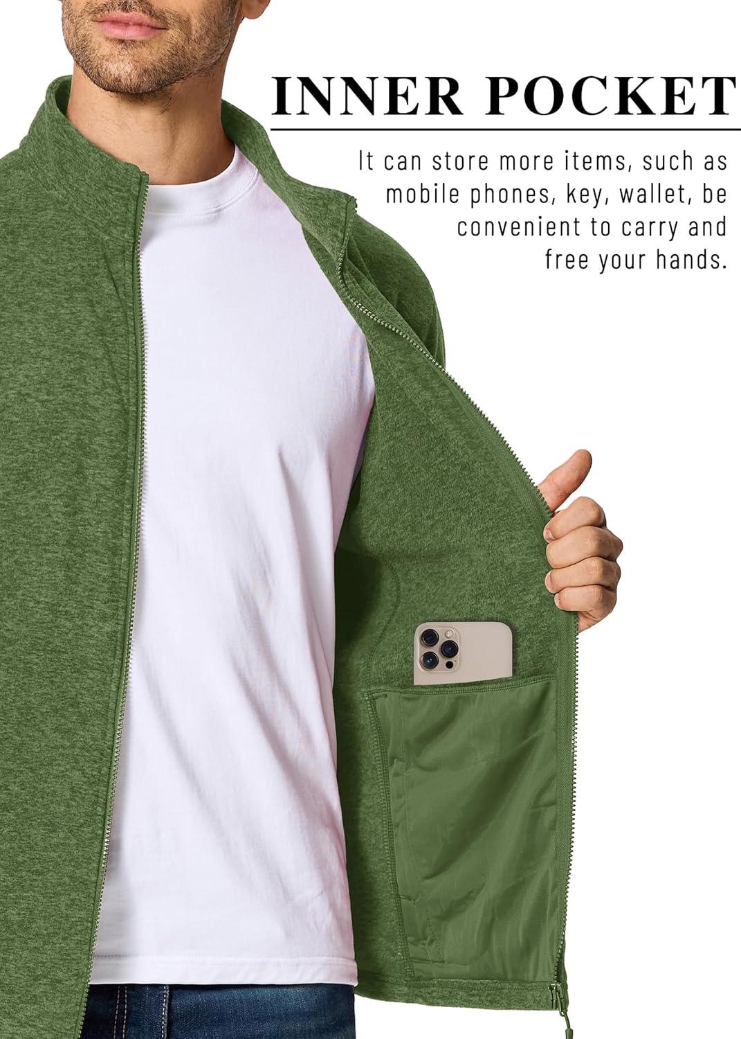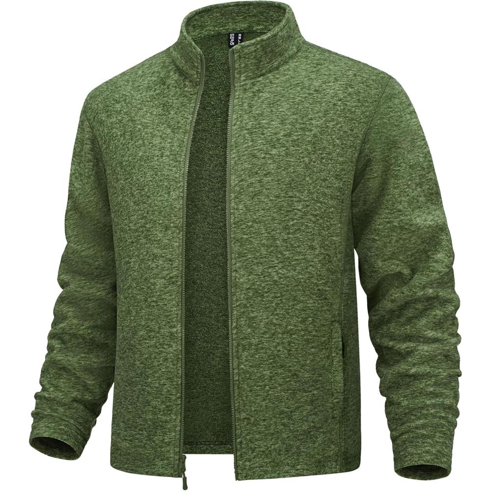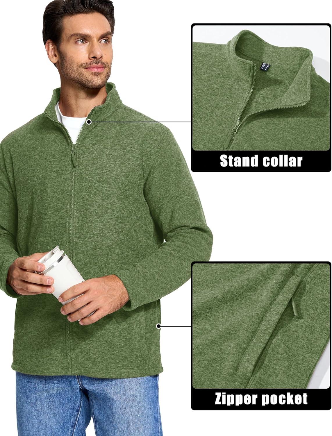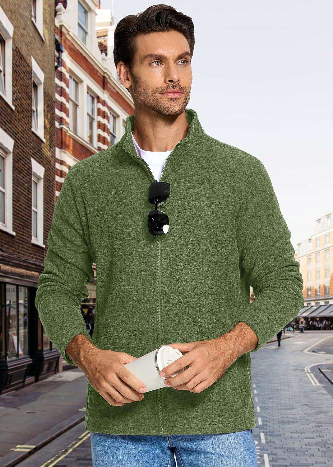 MAGCOMSEN Mens Zip Up Sweatshirt Casual Fleece Jacket with Zipper Pockets and Stand Collar(Army Green)